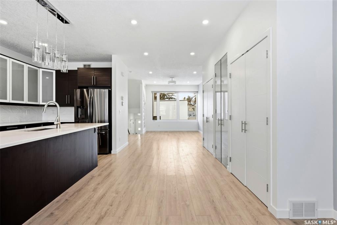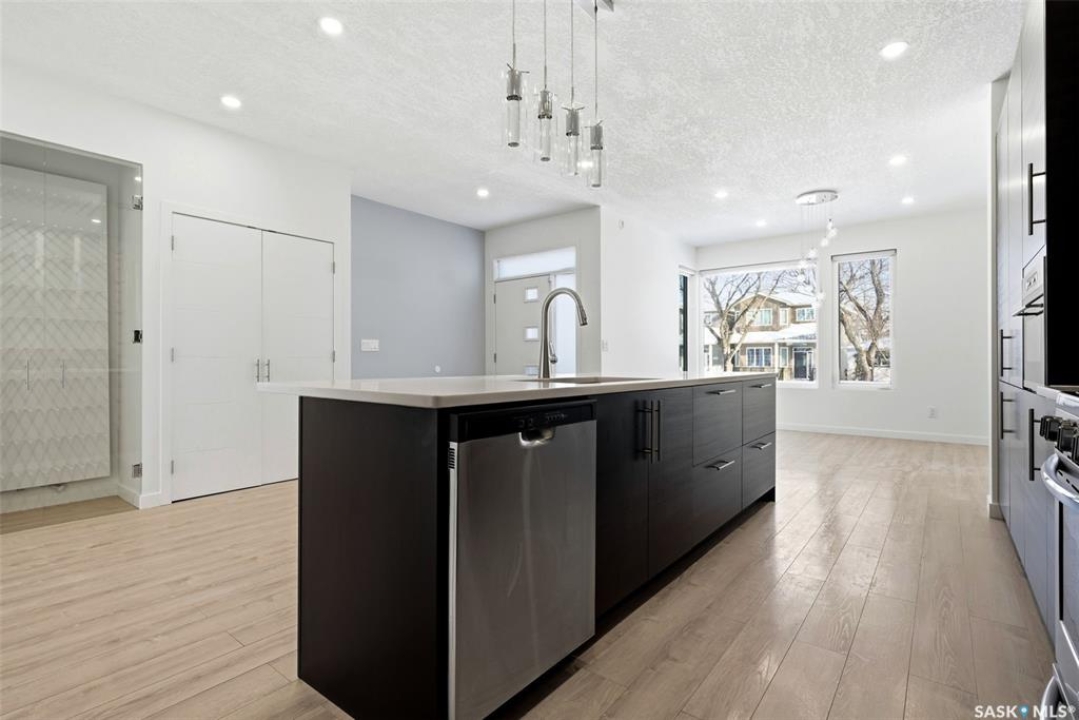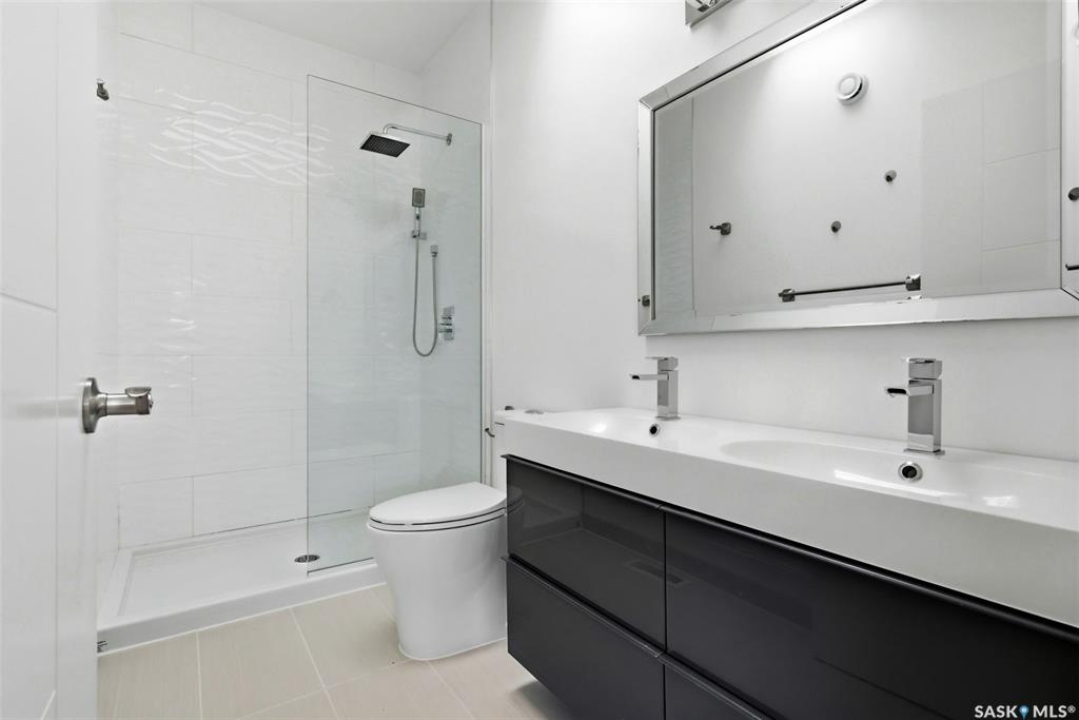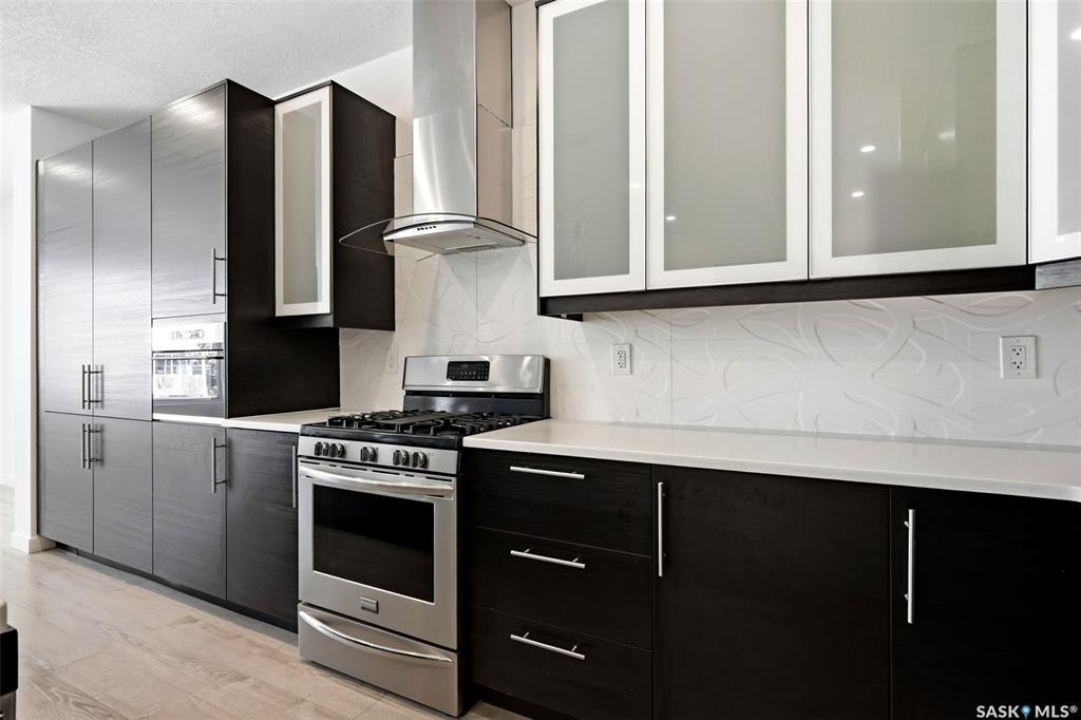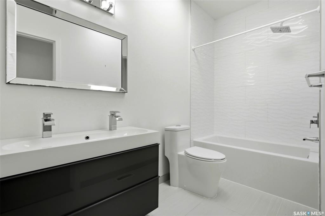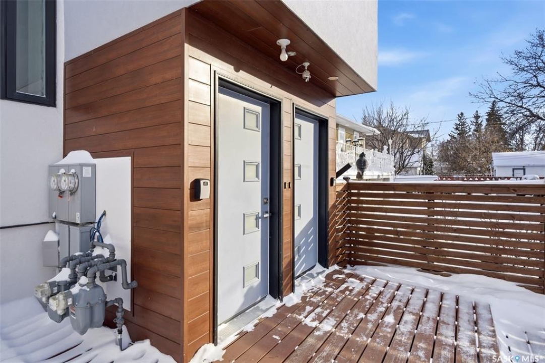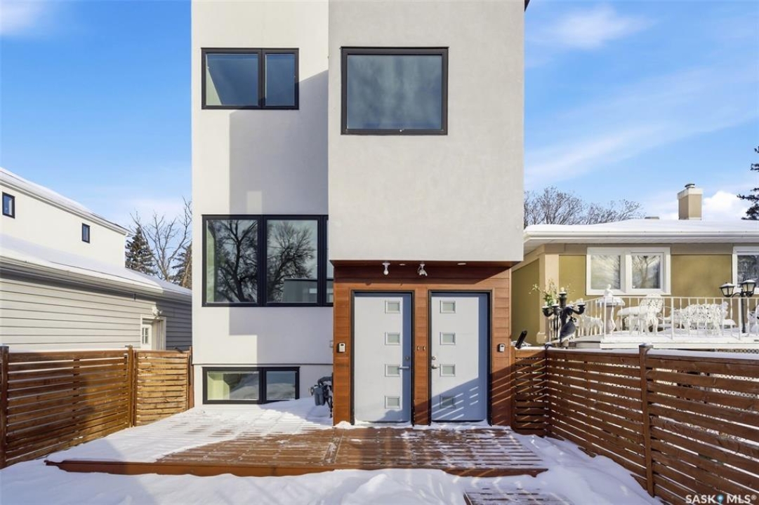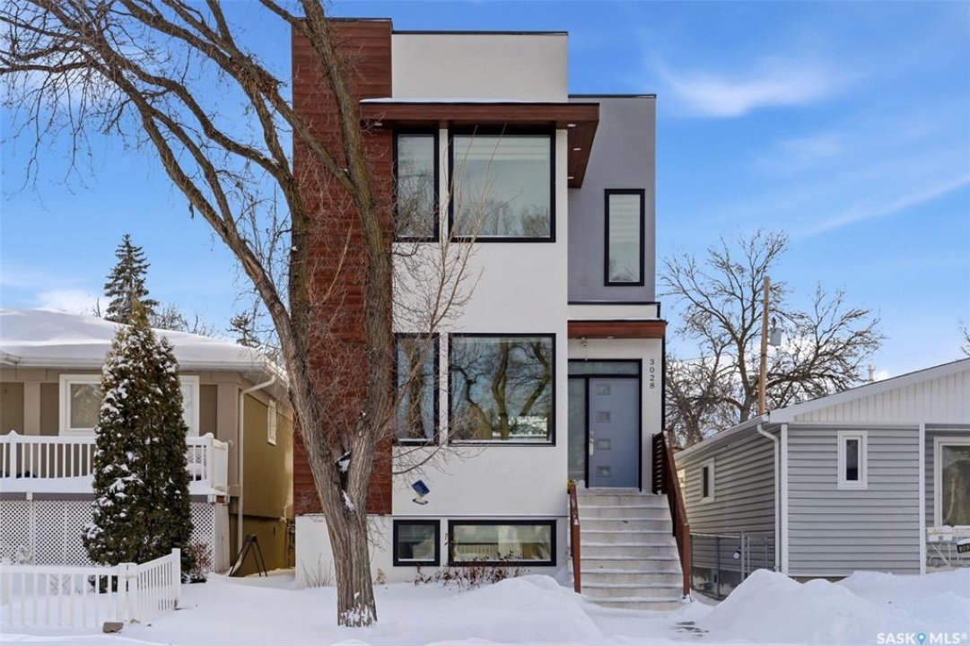 Architecturally striking and strategically located in the heart of Lakeview, this modern infill at 3028 Montague Street delivers the perfect blend of style, function, and income potential. Offering 1,854 sq. ft. above grade plus a fully developed basement, this home stands out with clean contemporary lines, impressive curb appeal, and a thoughtfully designed floor plan. The main level features 9' ceilings, wide-plank flooring, and an airy open-concept layout flooded with natural light. The designer kitchen is a true focal point, showcasing rich espresso cabinetry, quartz countertops, a statement island with eat-up seating, stainless steel appliances, a gas range, and built-in microwave—ideal for both everyday living and entertaining. Upstairs, you'll find 3 well-appointed bedrooms, including a spacious primary retreat with a sleek 4-piece ensuite, along with second-floor laundry and an additional full bath for added convenience. The fully finished lower level offers a self-contained regulation suite with separate entry, modern finishes, its own kitchen, living space, bedroom, bathroom, and in-suite laundry—an exceptional setup for mortgage support, multigenerational living, or premium rental income. Outside, the fenced yard and deck offer low-maintenance outdoor living, while the heated, insulated double detached garage adds year-round practicality. A rare opportunity to secure a modern, income-generating property in one of Regina's most established and sought-after neighbourhoods.