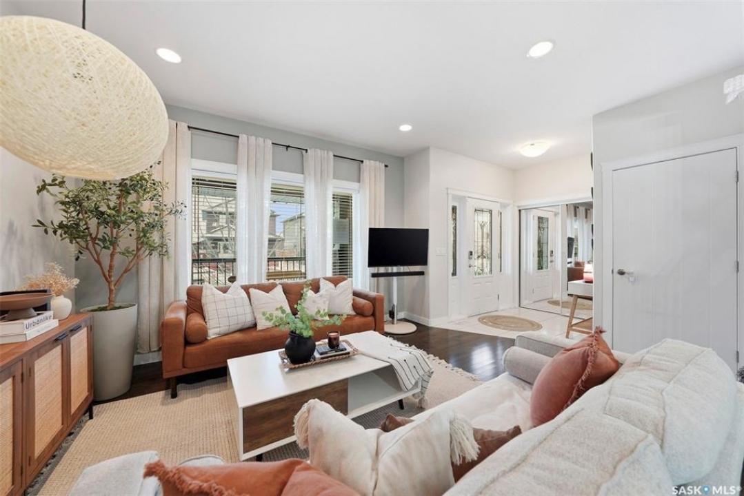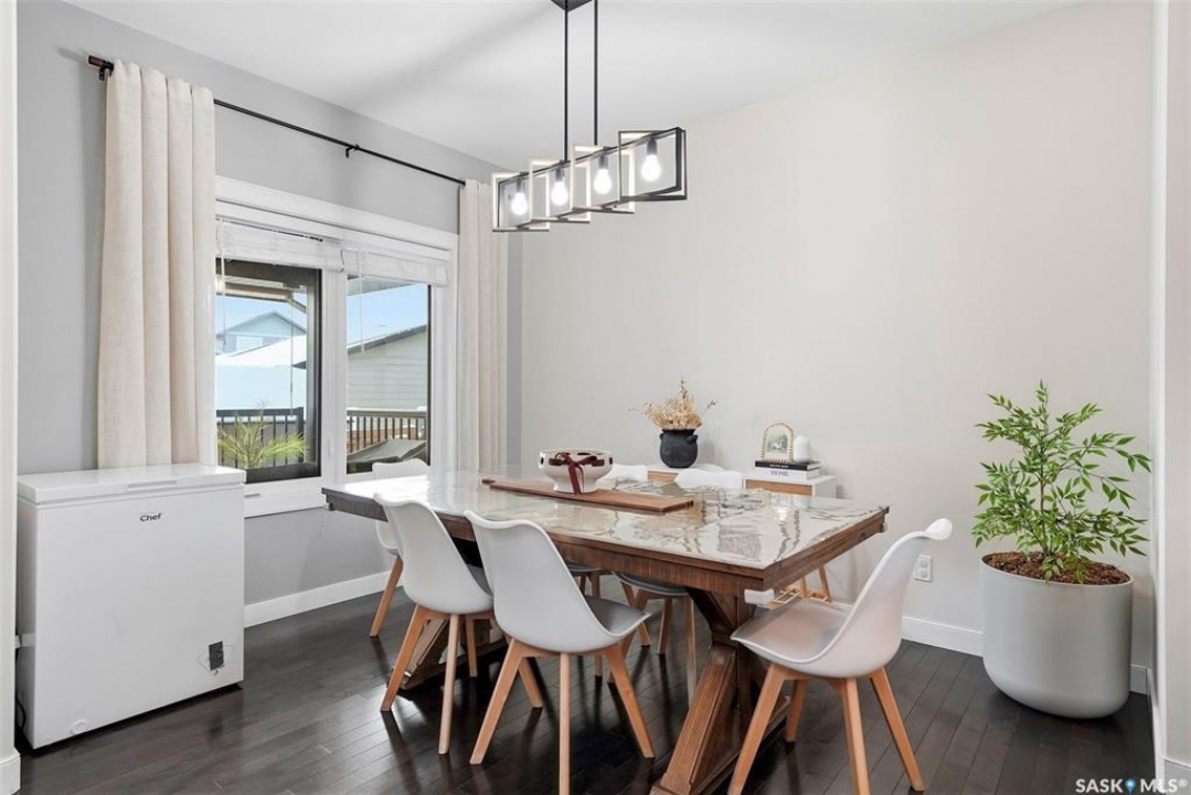 Welcome to this well-maintained 1,420 sq ft two-storey home in the growing community of Warman. Thoughtfully designed with comfort and functionality in mind, this property offers an ideal layout for families, first-time buyers, or anyone seeking a move-in-ready home in a fantastic location. The main floor features a bright open-concept layout, combining the living room, dining area, and kitchen into a warm, inviting space perfect for everyday living and entertaining. Upstairs, you'll find three good-sized bedrooms and 3pc ensuite bathrooms and a 4pc bathroom. The basement is fully developed with rough in for another bathroom in the storage area and currently operating as a licensed day care, offering flexibility for future use giving buyers the opportunity to customize the lower level to their needs. Also has another bedroom and a den. Main floor has a 2pc bathroom. For showings, weekday viewings are available after 5:15 PM, with flexible times on weekends. Outside, the backyard is ready for your future garage build, with ample space to create the outdoor setup you envision. Please note: play structure, shed, drapes, and curtain rods are not included in the sale. A newer washer and dryer add extra value and convenience. A fantastic opportunity to own a clean, well-cared-for home in a family-friendly community with room to grow and personalize. This one will not last long. Call your favorite realtor to schedule your viewing.