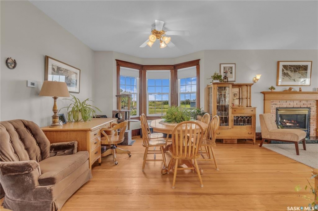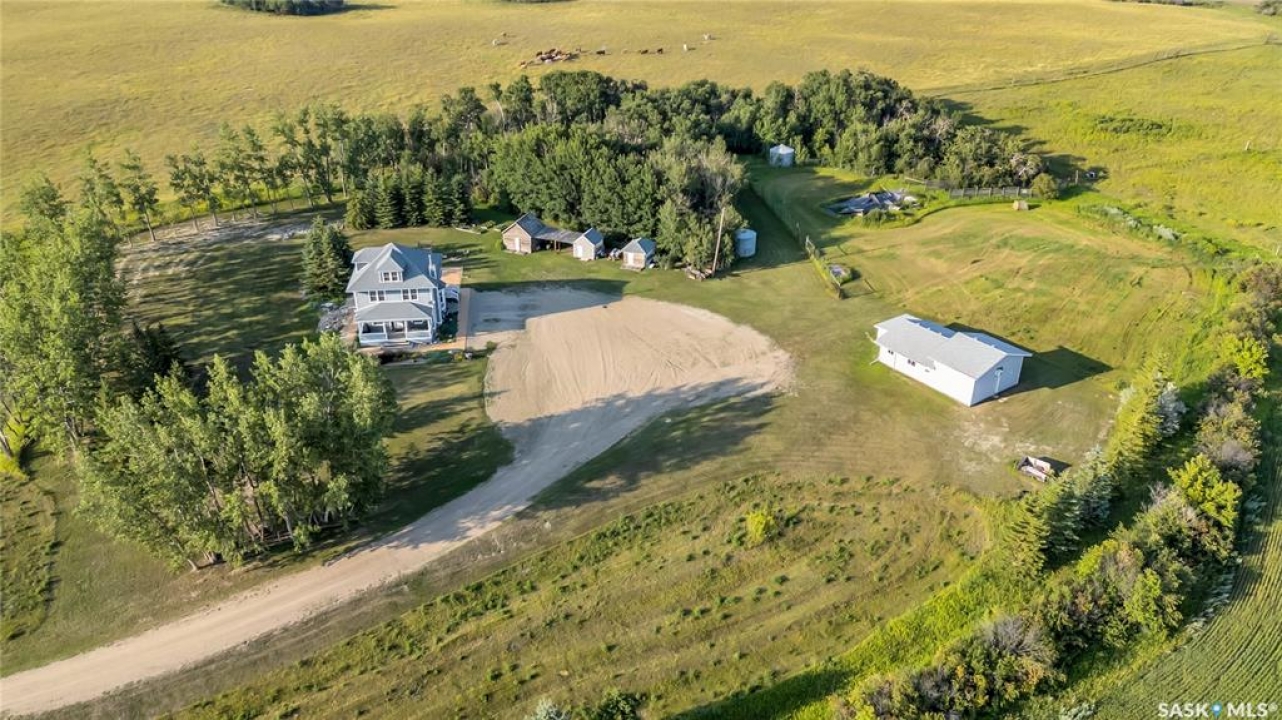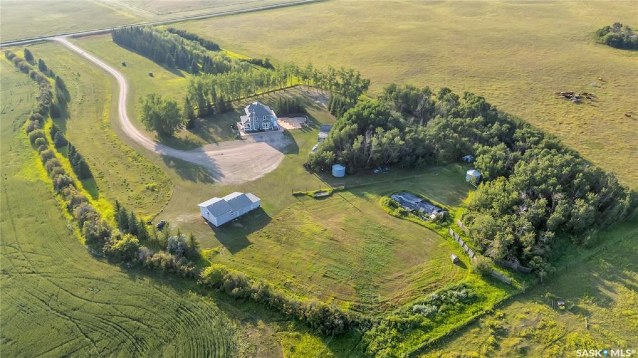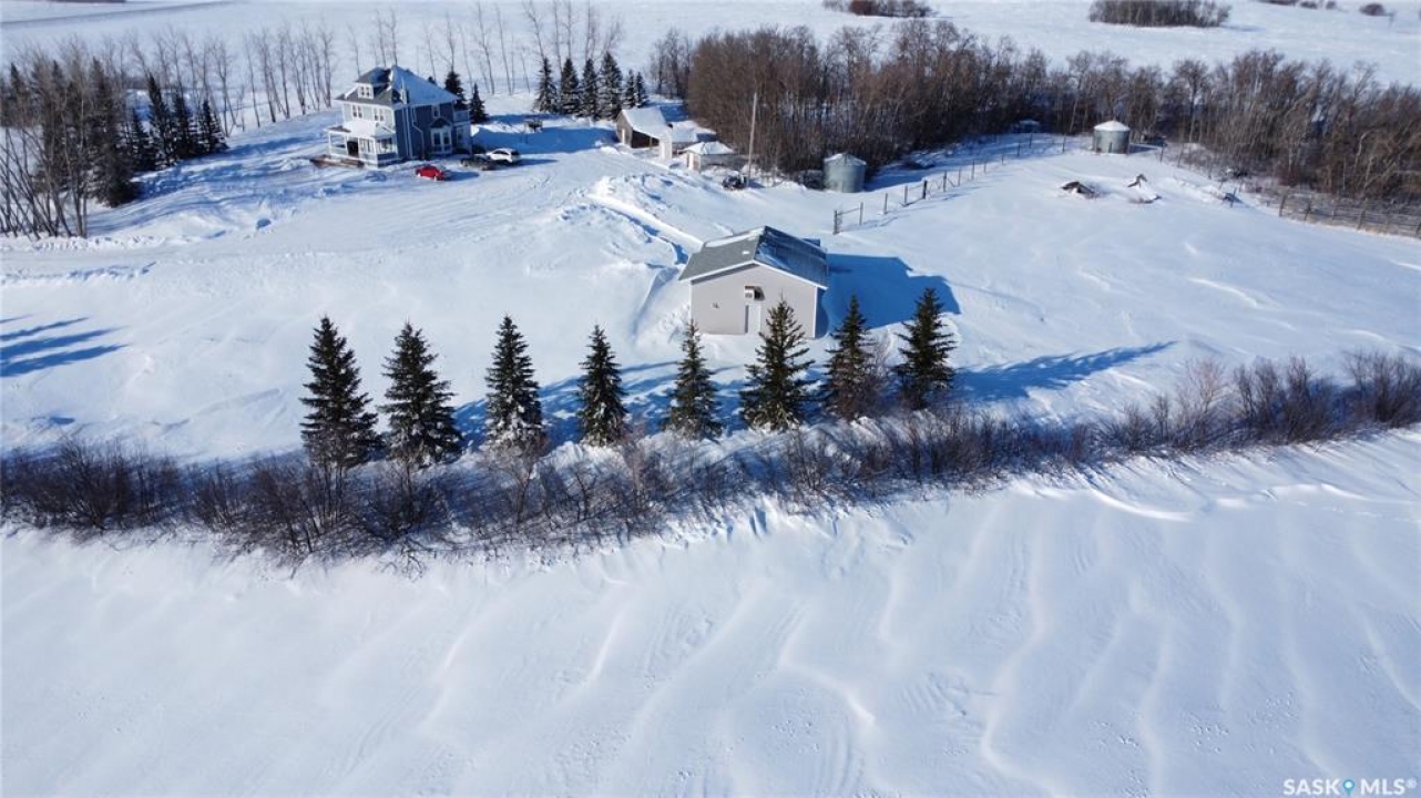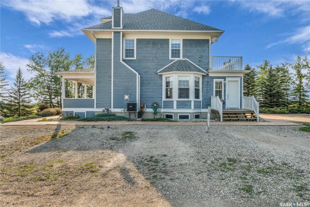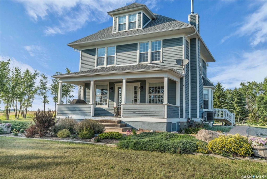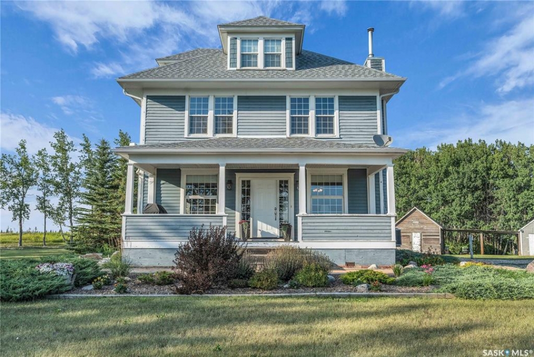 20 minutes from the city you will find this 1/4 section homestead. In 1995 this yard site was established by moving in a 2 and a half storey character home and putting it on a new concrete full basement. This home features turn of the century character with modern upgrades. Large working kitchen and center island, dining area, livingroom with natural gas fireplace and family room. The South facing covered verandah is a great place to sit and look out over the rest of the land. The second floor has master suite with 3 piece ensuite and access to the second storey balcony, 2 other large bedrooms, 3 piece main bath and laundry area. The third level is fully insulated and open space awaiting your development ideas. Properties like this don't come along often, don't miss your opportunity to develop your dream! School bus to Balgonie just 6.5 miles away, also very close to Pilot Butte 8.5 miles and less than 20 minutes to Regina Costco 15.5 miles.