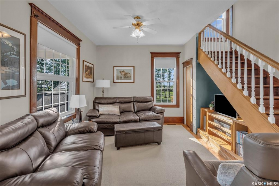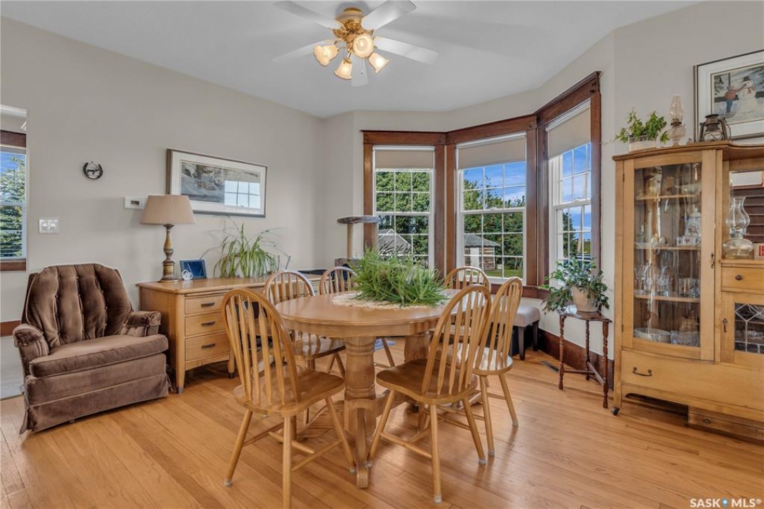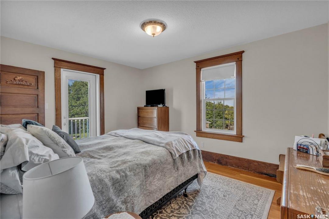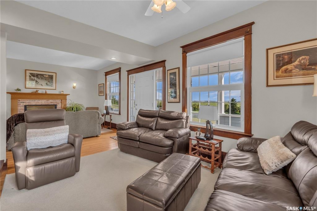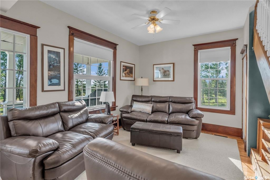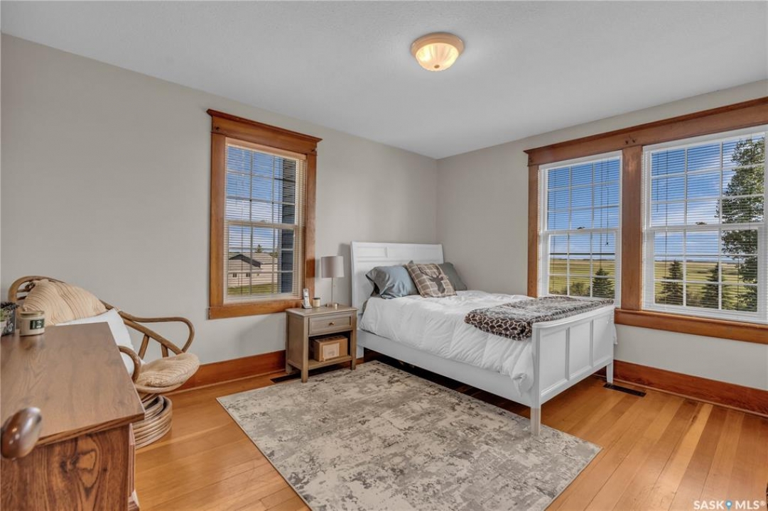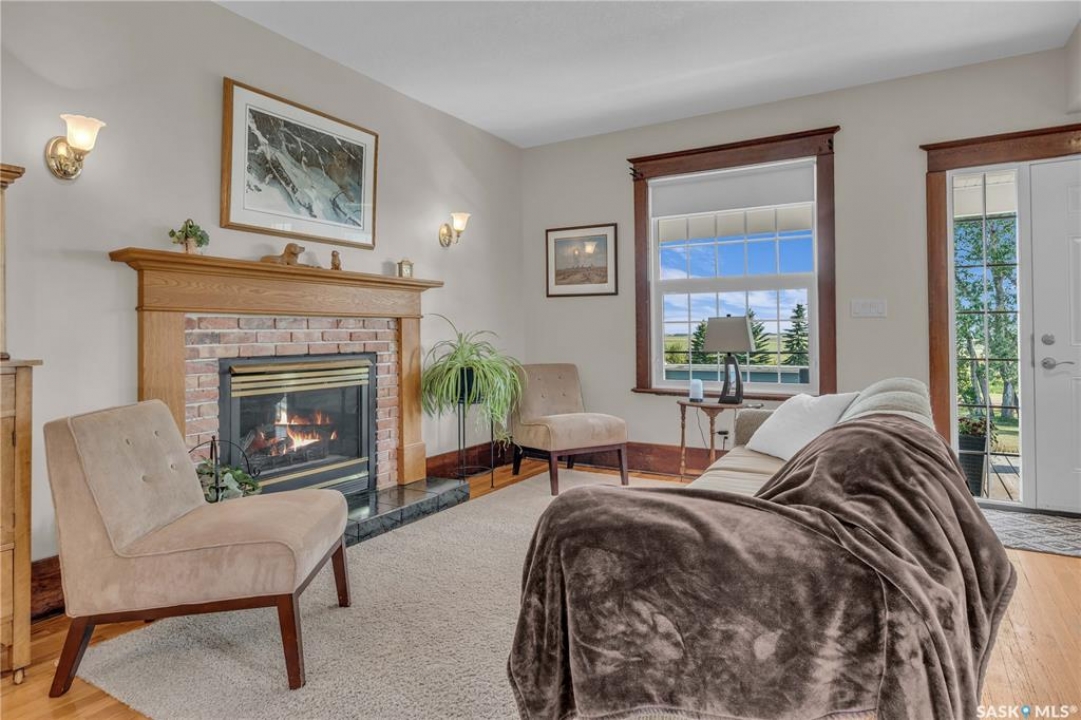 20 minutes from the city you will find this 1/4 section homestead. In 1995 this yard site was established by moving in a 2 and a half storey character home and putting it on a new concrete full basement. This home features turn of the century character with modern upgrades. Large working kitchen and center island, dining area, livingroom with natural gas fireplace and family room. The South facing covered verandah is a great place to sit and look out over the rest of the land. The second floor has master suite with 3 piece ensuite and access to the second storey balcony, 2 other large bedrooms, 3 piece main bath and laundry area. The third level is fully insulated and open space awaiting your development ideas. Properties like this don't come along often, don't miss your opportunity to develop your dream! School bus to Balgonie just 6.5 miles away, also very close to Pilot Butte 8.5 miles and less than 20 minutes to Regina Costco 15.5 miles.