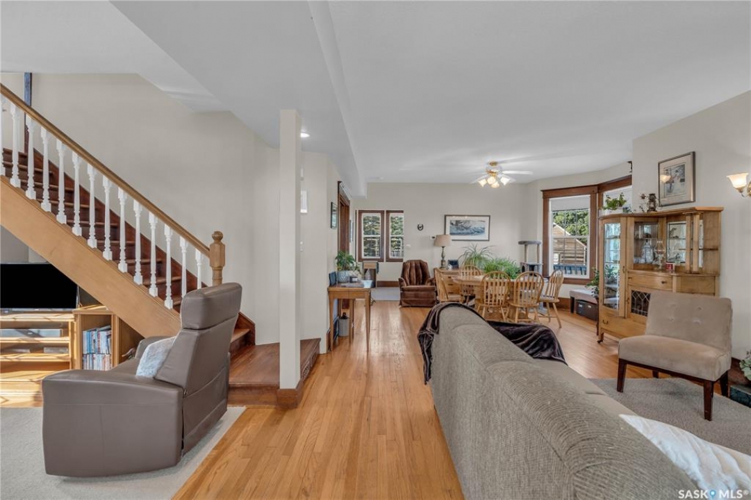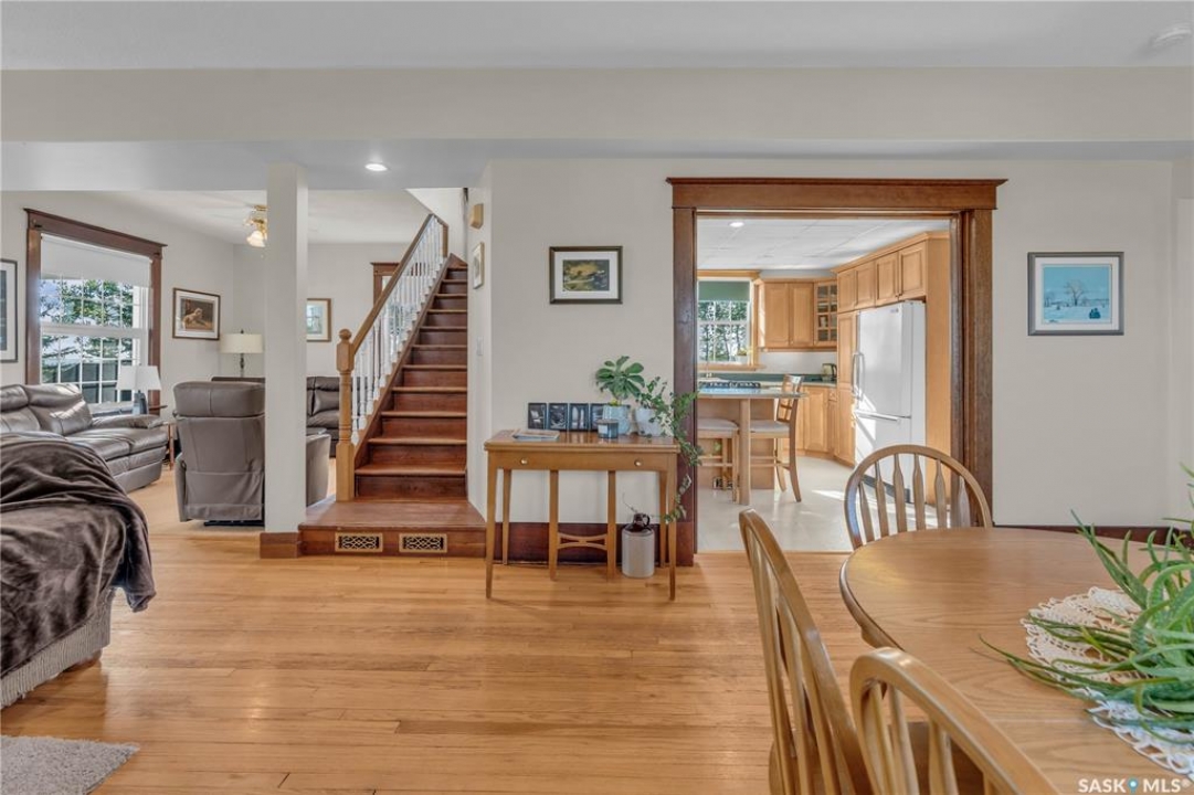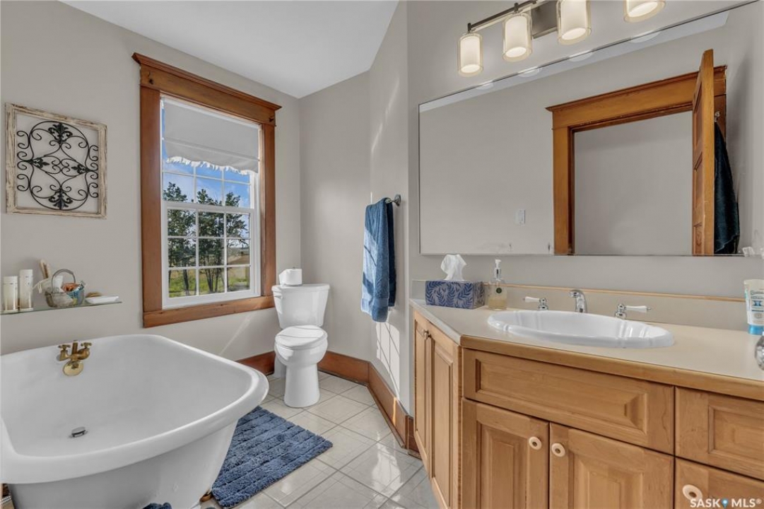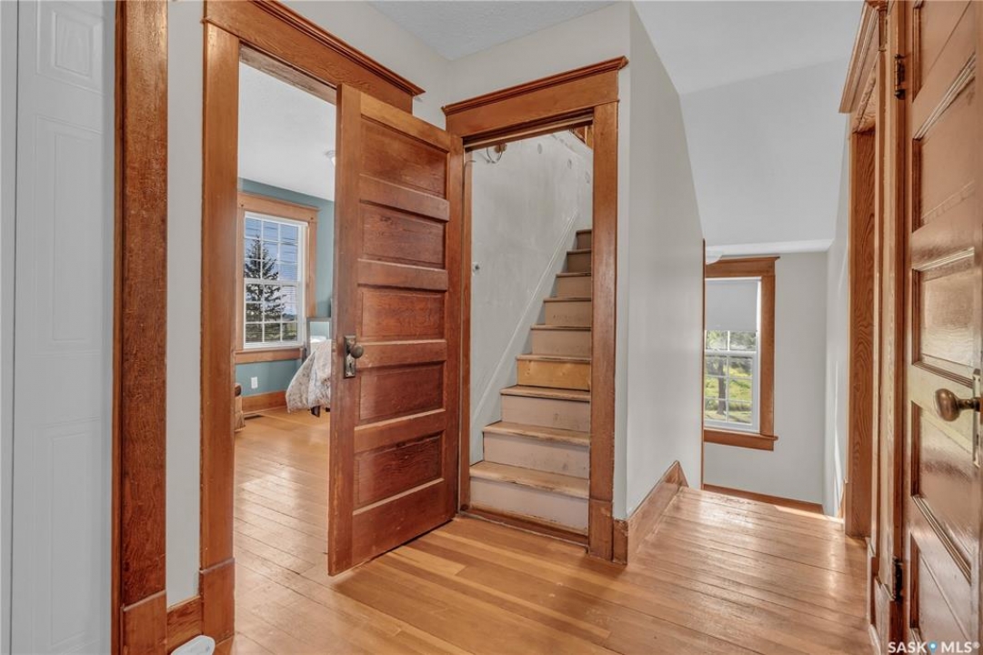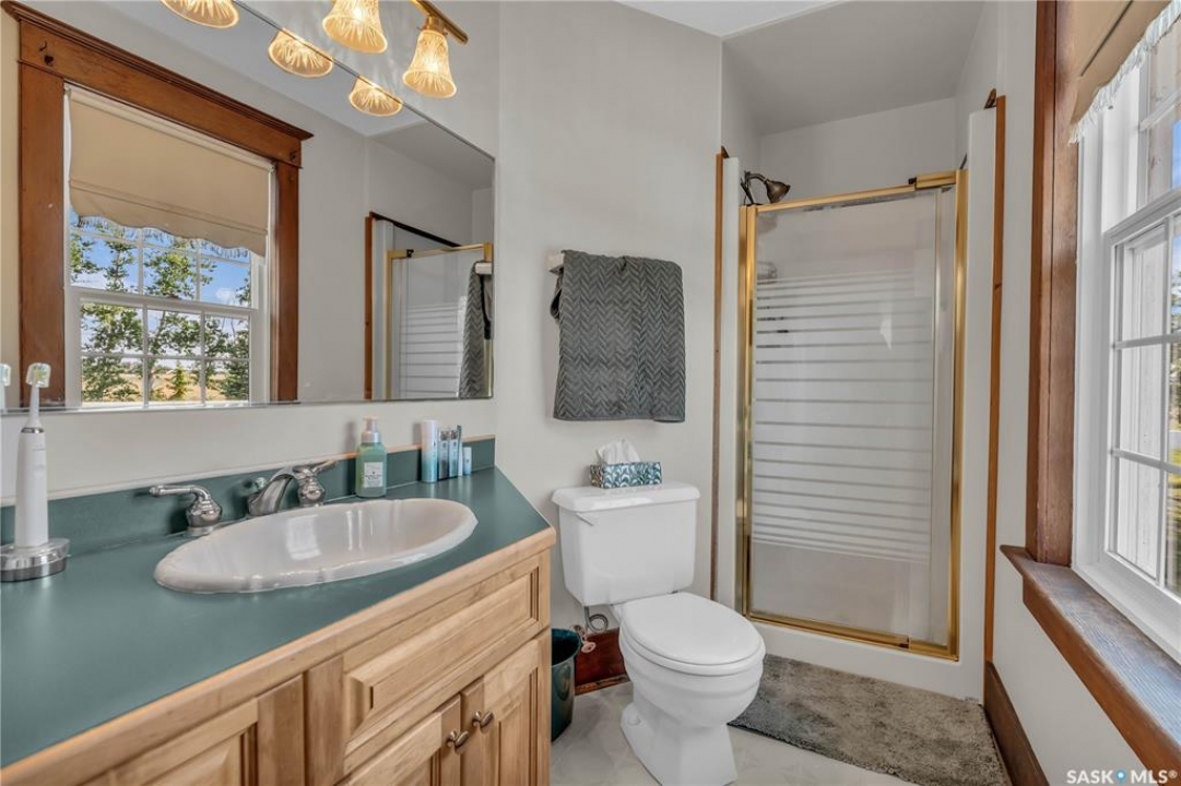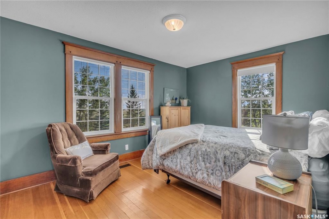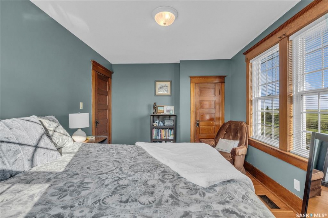 20 minutes from the city you will find this 1/4 section homestead. In 1995 this yard site was established by moving in a 2 and a half storey character home and putting it on a new concrete full basement. This home features turn of the century character with modern upgrades. Large working kitchen and center island, dining area, livingroom with natural gas fireplace and family room. The South facing covered verandah is a great place to sit and look out over the rest of the land. The second floor has master suite with 3 piece ensuite and access to the second storey balcony, 2 other large bedrooms, 3 piece main bath and laundry area. The third level is fully insulated and open space awaiting your development ideas. Properties like this don't come along often, don't miss your opportunity to develop your dream! School bus to Balgonie just 6.5 miles away, also very close to Pilot Butte 8.5 miles and less than 20 minutes to Regina Costco 15.5 miles.