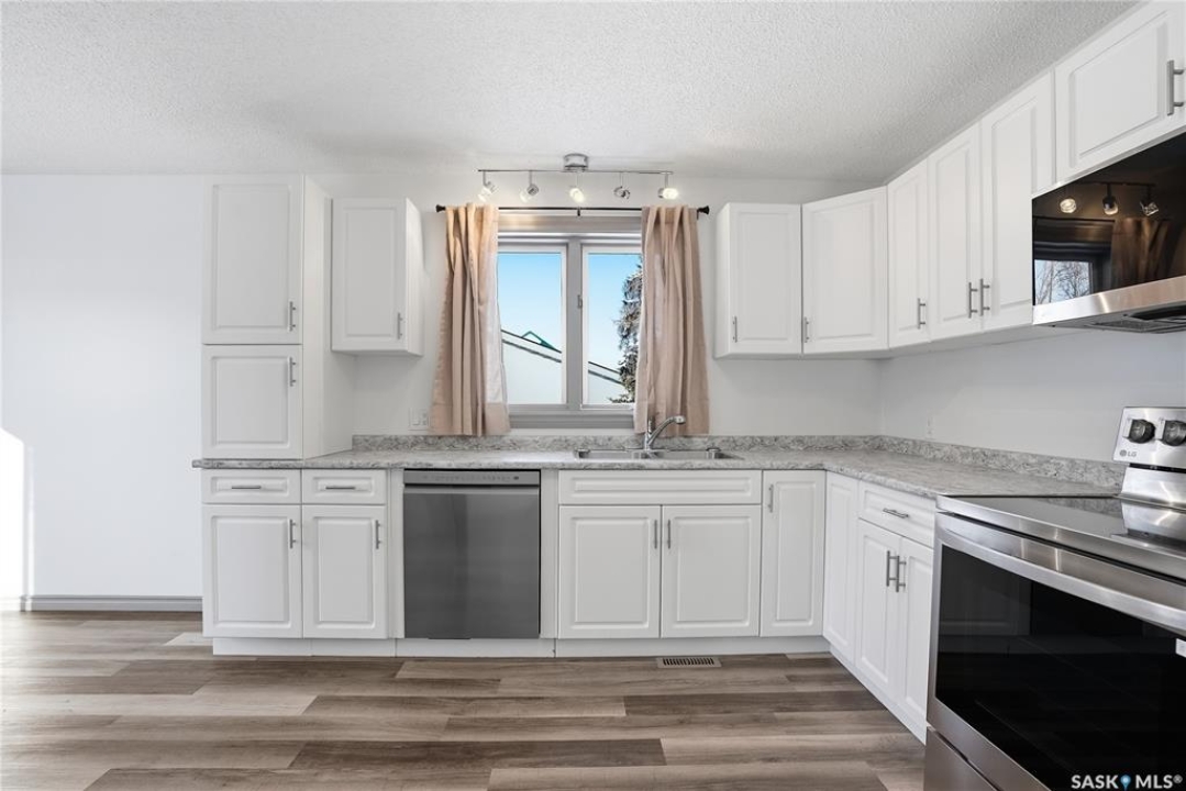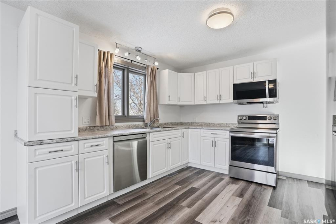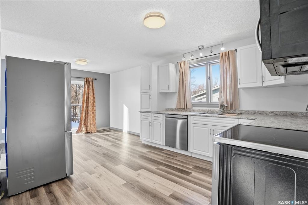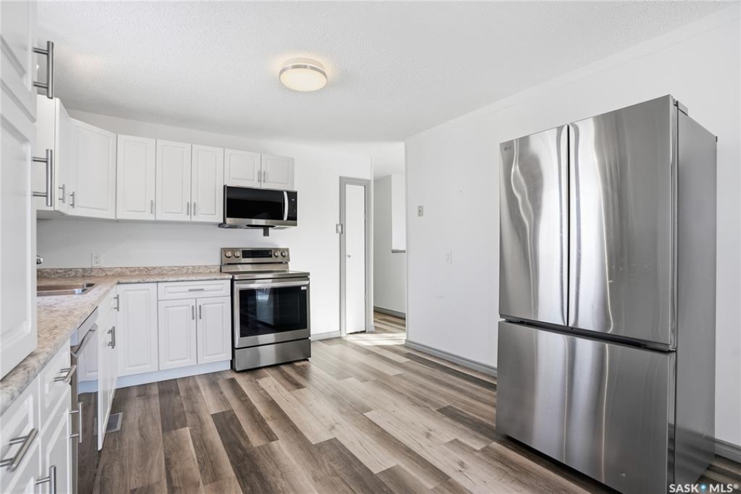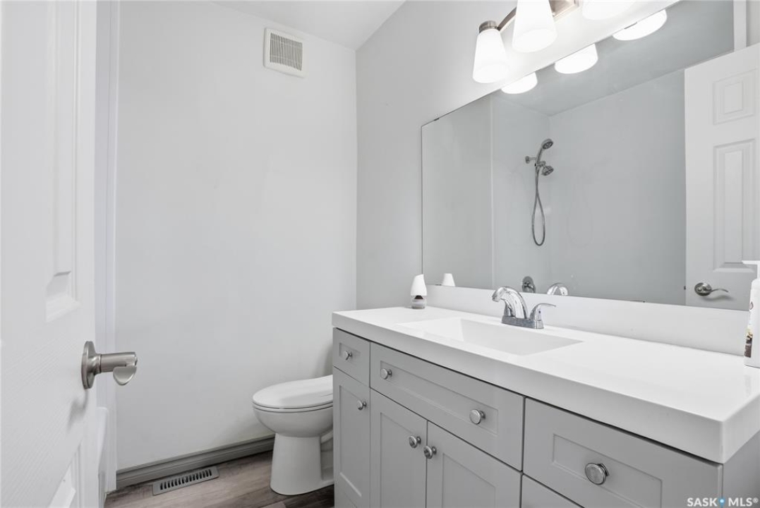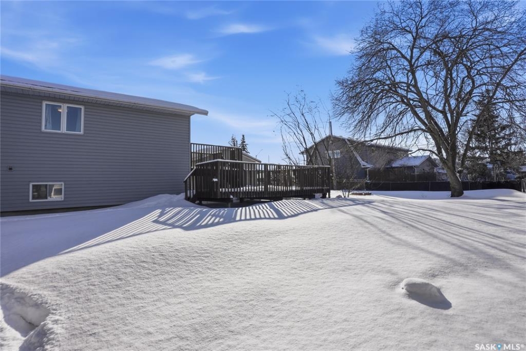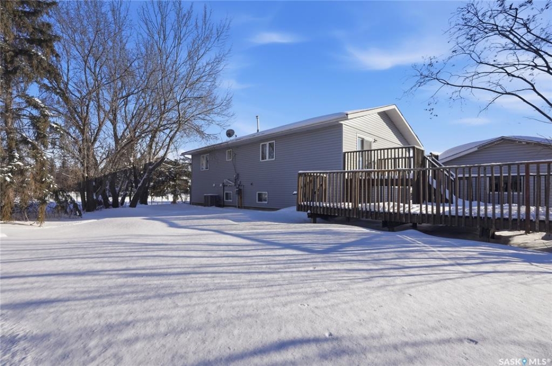 Space with excellent location! Welcome to 413-415 1st Street located in the growing, family-friendly town of Dalmeny, which is 12 minutes Northwest of Saskatoon. This beautiful 1174 sq.ft Bi-level style home with an oversized single detached garage is situated on a double corner lot with walking distance to the Dalmeny High school. There have been many updates including; New flooring, New paint, an updated kitchen, updated bathrooms, New furnace, New water heater, New central air conditioning installed and all newer appliances. The main floor is bright, open and spacious, the living room is front facing and the kitchen has plenty of cupboards with all new appliances installed. There is an updated 4-piece bathroom, 3 good sized bedrooms with the primary bedroom featuring a 2-piece ensuite bathroom that has the option to add a shower. The main floor also has a large dining area that walks out on to a deck overlooking plenty of green space – perfect for backyard entertaining. The lower level is finished with a spacious family room, bonus area, a 3-piece bathroom, 2 additional bedrooms and the laundry/utility room. The seller will be paying out the rental contracts for the new furnace, water heater and central air conditioning that were installed. This perfect family home comes complete with all appliances, central a/c, washer, dryer and all of the window coverings. (The tax total is for both lots combined), With all of this space and excellent location, Don't wait! Call to view!