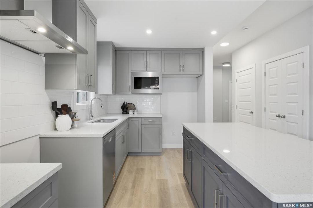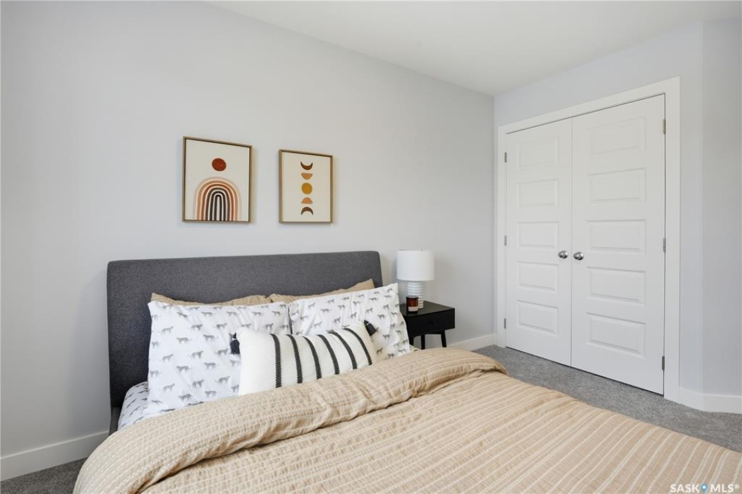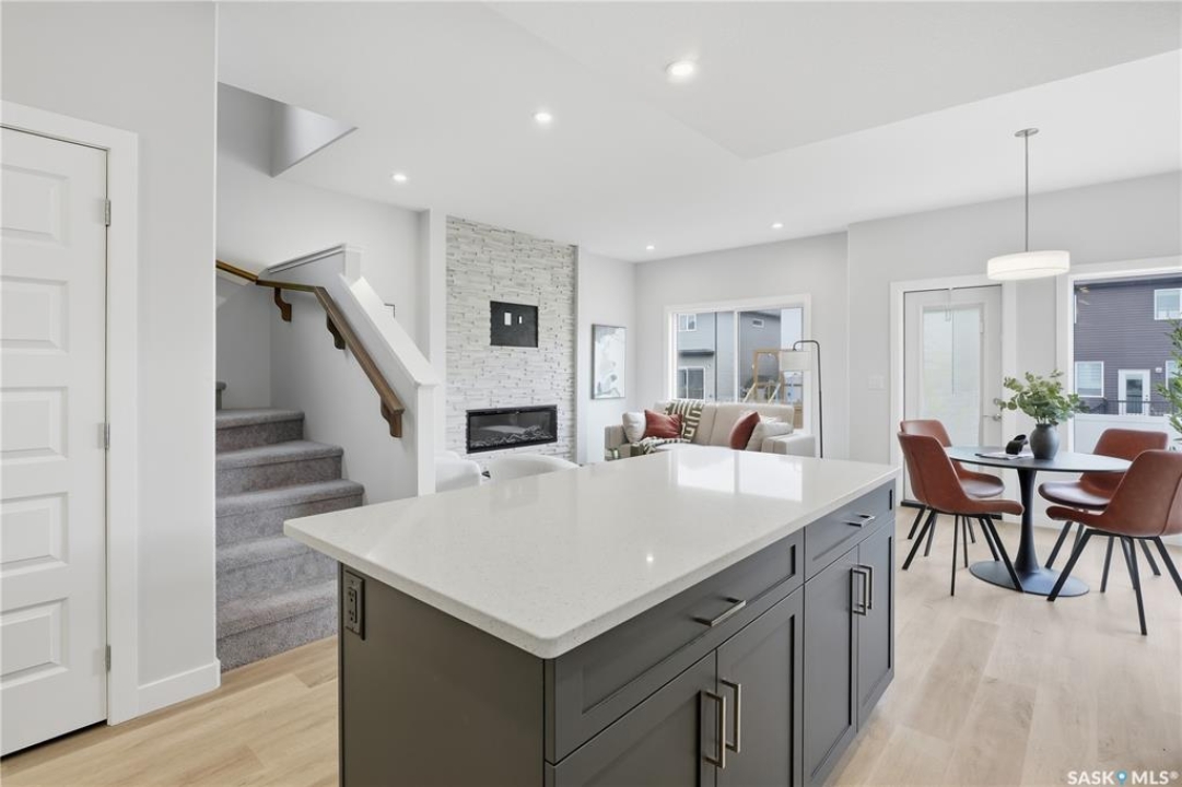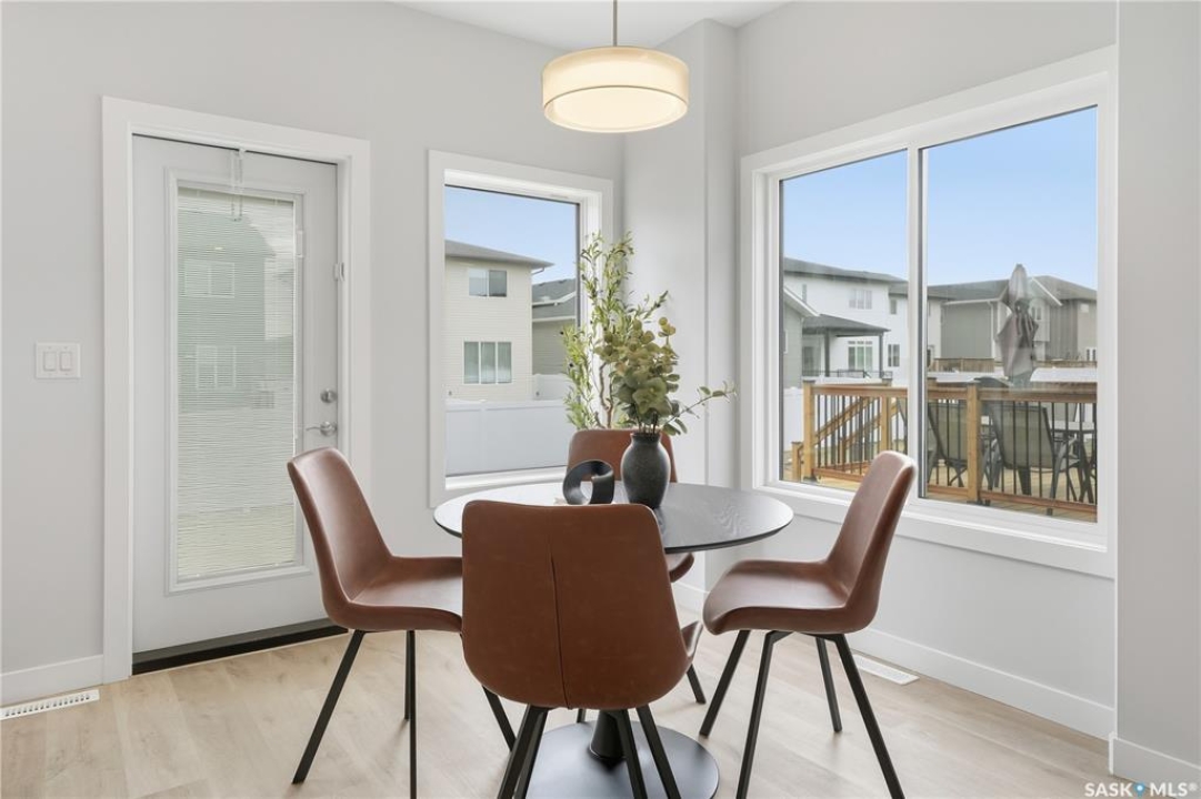 Welcome to the Wasserberg Townhome! Ehrenburg Homes latest offering in the vibrant community of Eastbrook. This one of kind new build offers spacious family living with contemporary design. Lovely street appeal with charming from verandah. Spacious entry leads to large living room with picture window views of Maka Park. Kitchen featuring, centre island, 2 pantry's! and abundance of stone countertops and custom tiled backsplash flows into the oversized dining room with plenty of space to accommodate large family gatherings. 2pc powder room and large rear entry lead to the massive 21.4x25.9 double attached rear garage with back alley access. 2nd level features massive primary suite with walk-in closet and full 4pc ensuite. Large bonus room and 3 additional bedrooms are genrously sized. 2nd floor laundry and main 4pc bath. This end unit Townhome also offers side entrance for future suite development. Exterior walls are framed and insulated with roughed in plumbing. Superior construction foundation has a 4” rebar reinforced slab and is built on piles. Exterior features front landscaping, sidewalk, and underground sprinklers. Interior photos from previous build layout and colors may vary. Call for more information!