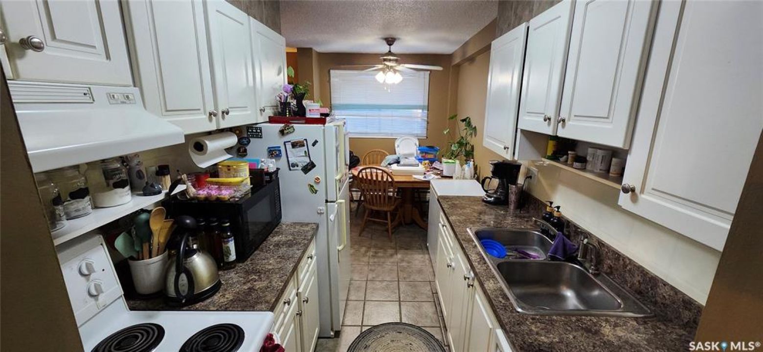 Two bedroom ground floor condo in the Maple Ridge complex in convenient River Heights. This 850 sq ft condo backs Canarama Mall with all necessary amenities & has a bus stop across the street. This is a concrete building ---solid and quiet. Updated white kitchen cabinets & a huge walk in pantry storage area. All hard surface flooring --- luxury vinyl plank in all living areas and ceramic tile in the kitchen and bath. Shared laundry across the hall for $2/load. SWIMMING POOL --- This well maintained condo complex features a large outdoor pool area for summer fun!
