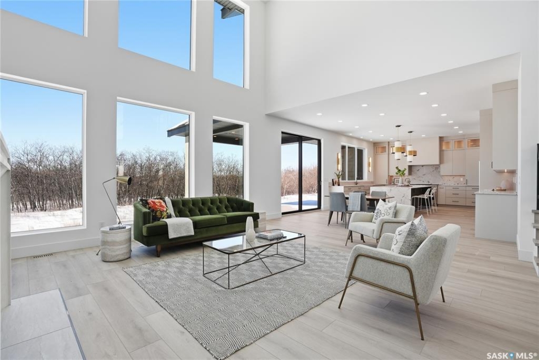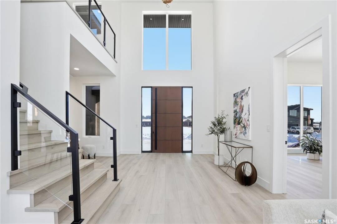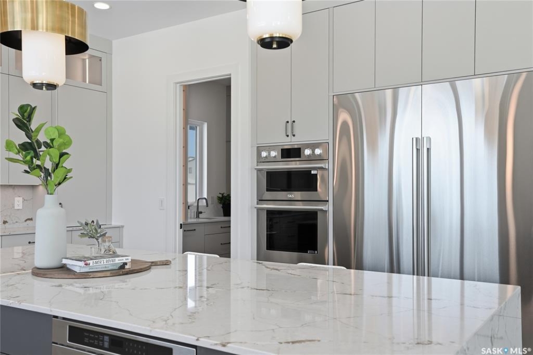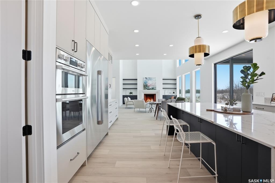 Exceptional luxury in Greenbryre Estates- 3,474 sq' D & S Homes Inc NEW 2-storey with a fully developed walkout lower level- a rare offering of refined craftsmanship, design and finish. This home will surpass all expectations. Enter into a spacious two-storey foyer where a striking modern chandelier sets the tone, leading into the expansive great room framed by massive two-storey windows, a limestone fireplace, and custom millwork. The connecting dining and kitchen span the rear of the home, overlooking the scenic lot. The statement kitchen anchors the main level, showcasing a $100,000 appliance package, quartz countertops, Brizo fixtures, exquisite lighting, and custom cabinetry. A fully appointed butler's pantry adds a second commercial-grade refrigerator, more cabinetry and pullouts, illuminated shelving, and lrg quartz surfaces. The connected boot room millwork has full-height cabinetry and direct access to the attached 4 car garage. A powder room and spacious den/library with builtins complete the main floor. Illuminated treads with glass and metal railing lead to the 2nd level, with 3 IMPRESSIVE SUITES, each with their own ensuite. The primary suite is remarkable, offering a private balcony, an extraordinary dressing room, and a spa-inspired 5pc bath with luxury shower and automated bidet. A coffee/wine bar lounge includes a $10,000 Gaggenau built-in espresso unit, as well 2nd flor has a laundry room and a loft. The walkout level is designed for entertaining, featuring a marble-clad linear fireplace, games area, and a lounge-inspired bar with appliances, custom millwork, and curated lighting. An additional bedroom and 4 pc bath complete the space. An in-floor-heated attached 4 car 1596 sq' garage, concrete driveway, and walkout patio are in place. Final ext stucco coat may be selected. Beyond the typical, this is refined design and scale — over 5000 sq ‘ of living space; a residence that must be experienced to be fully appreciated.