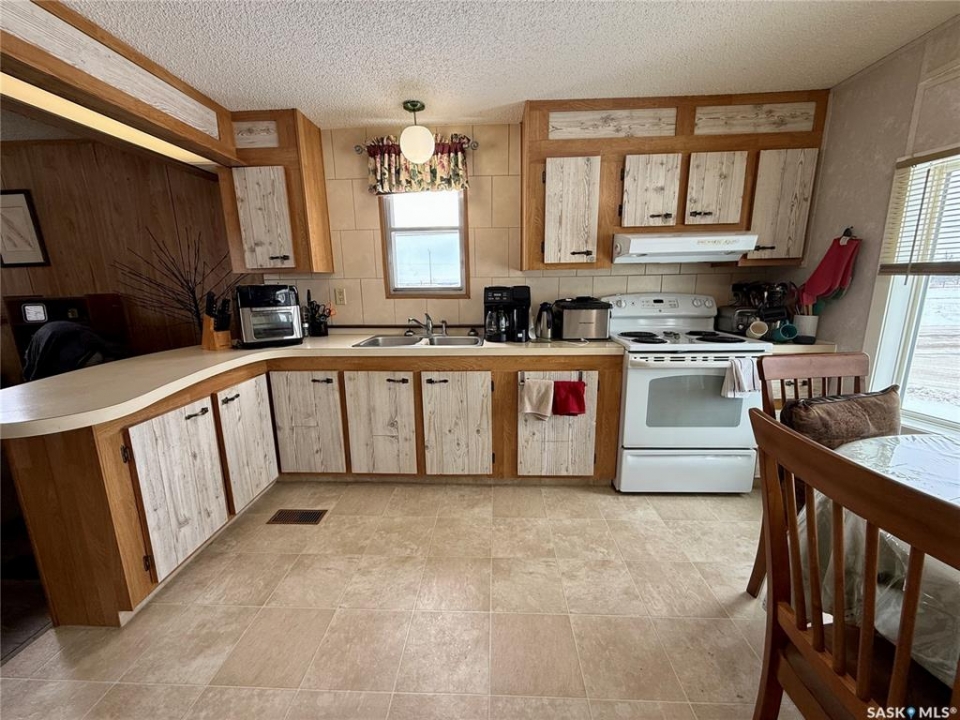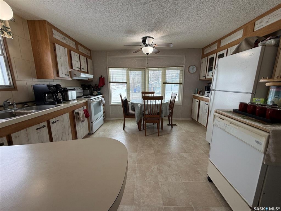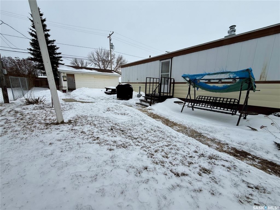 Welcome to this well-kept, one-owner mobile home located on a leased lot in the sought-after town of Battleford. Situated on a corner lot with beautiful sunset views, this property offers comfortable living in a fantastic location. Featuring 3 bedrooms and a spacious 3-piece bathroom with shower, the layout is functional and inviting. The large eat-in kitchen offers plenty of room for family meals and includes a convenient portable dishwasher. From both the kitchen and living room windows, you'll enjoy stunning evening sunsets and plenty of natural light. Recent upgrades include a new hot water tank, new furnace, new flooring, and newly installed triple-pane front windows that brighten the space and improve energy efficiency. Outside, the home features a fully fenced yard and a detached single-car garage, adding privacy and practicality. This one-owner home presents a solid opportunity in a desirable community and is ready for its next owner to make it their own.