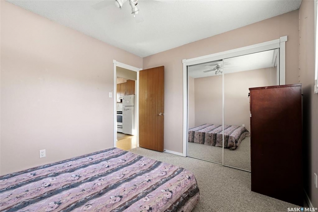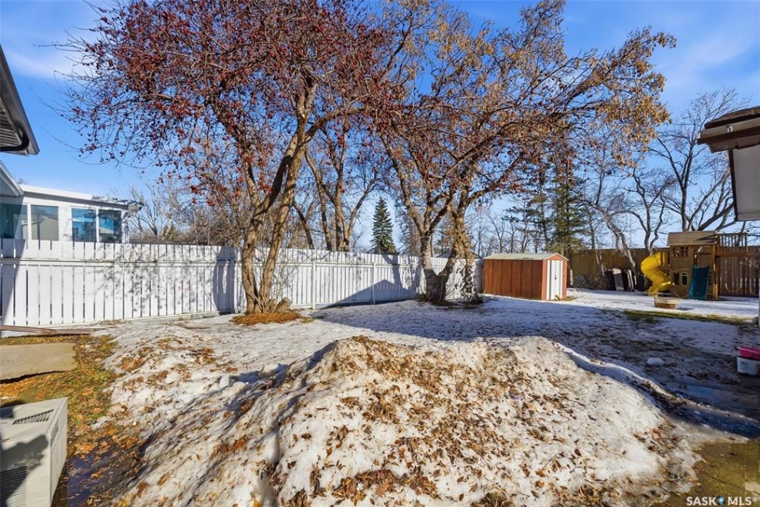 This versatile home offers excellent potential as a mortgage helper, featuring a separate basement entrance and rough-in plumbing for a kitchen. Ideal for families, first-time buyers, or investors, the finished basement has been professionally taken back to the concrete walls and fully spray-foam insulated for enhanced comfort and efficiency. Many major updates have already been completed—this home is ready for your personal touch with some cosmetic renovations on the main floor. A covered front deck welcomes you into the living room featuring a large window that fills the space with natural light. The galley-style kitchen offers ample cupboard space and opens seamlessly to the dining room, creating a practical layout for everyday living. The main floor includes 3 generously sized bedrooms and a full 4-piece family bathroom. The fully upgraded basement expands your living space with a large rec room, a spacious bedroom, a den ideal for a home office, and a 3-piece bathroom with a walk-in shower. An area with rough-in plumbing and electrical is already in place for a future kitchen—offering excellent suite potential with the separate basement entrance. The basement upgrade includes egress windows, spray foam on all 4 walls, flooring, walls, bathroom, electrical panel upgrade and plumbing upgrade all in 2022. Outside the huge yard is fenced, has room for a garden and includes a play structure, shed and double detached insulated garage. Other upgrades include: 2012 main bathroom tile surround bathtub, toilet and sink. 2016 Roof, soffit, facia and eaves replaced. 2018 triple pane windows throughout the house and entrance doors replaced. The furnace was replaced in 2009 and motor was replaced in the last 10 years. Great family home in a family friendly neighborhood close to parks, the University, Sask Polytechnic, schools and all south end amenities.