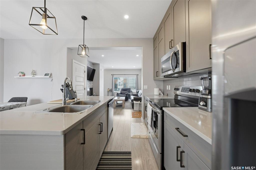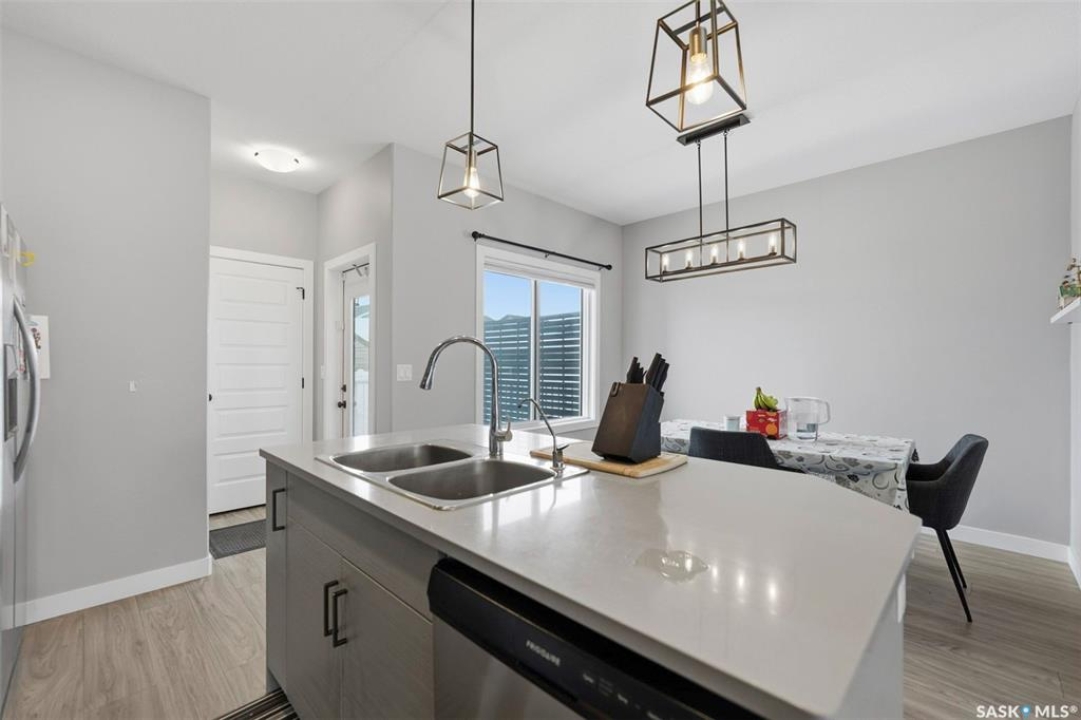 Step into elevated everyday living at 608 Brighton Gate, a stunning two-storey semi-detached home in the vibrant and highly sought-after Brighton neighbourhood of Saskatoon. Offering 3 bedrooms, 3 bathrooms, and 1,363 sq. ft. of beautifully maintained living space, this home blends modern design with exceptional functionality. The main floor showcases a stylish kitchen featuring quartz countertops, custom cabinetry, stainless steel appliances, and a spacious island,perfect for cooking, gathering, and entertaining. The open-concept layout flows effortlessly into the bright dining and living areas, creating a warm and welcoming atmosphere. Upstairs, retreat to a spacious primary suite complete with a walk-in closet and spa-inspired ensuite. Two additional bedrooms, a well-appointed 3-piece bathroom, and convenient second-floor laundry complete the upper level. Enjoy unbeatable convenience with public transit within walking distance and a school bus stop just steps from the corner. You're also only a short stroll from Brighton Marketplace, Landmark Cinemas, and Motion Fitness—bringing shopping, dining, and entertainment right to your doorstep. The home also offers a legal basement suite option with potential eligibility for government construction grants an excellent opportunity for additional income. Step outside to a fully landscaped backyard featuring a generous deck, brick patio, lush lawn with underground sprinklers, and an insulated, drywalled double detached garage. Move-in ready and impeccably cared for, book your private showing today and experience all that this Brighton gem has to offer.