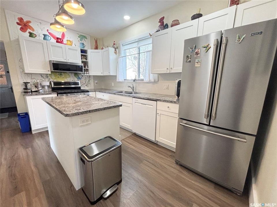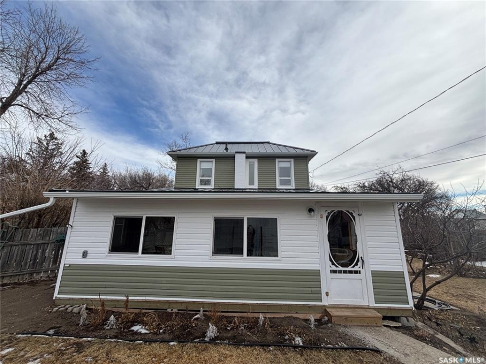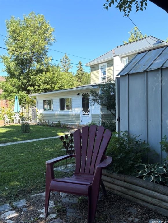 Welcome to this beautifully updated 2-storey character home in Maple Creek, SK, where timeless charm meets modern comfort. From the moment you arrive, you'll appreciate the care and upgrades throughout. The home features a brand-new kitchen designed for both function and style, complete with a cozy gas stove—perfect for home chefs and entertainers alike. Just off the main living space, a newly updated 3 season sunroom provides the perfect spot to enjoy your morning coffee or unwind with evening light pouring in. Upstairs, you'll find a spacious primary bedroom offering comfort and privacy, along with a charming reading nook—an ideal retreat for quiet moments. The home offers 2 bedrooms and 2 bathrooms, thoughtfully laid out for comfortable everyday living. On the main floor, a large, bright office creates the perfect work-from-home environment or creative craft space. Central air conditioning ensures year-round comfort, while the new metal roof provides long-term durability and peace of mind. Situated on an impressive 75-foot lot, the expansive yard is truly a gardener's dream. With a dedicated garden area and abundant outdoor space, there's plenty of room to grow, entertain, or simply enjoy the beauty of your surroundings. This Maple Creek gem combines character, updates, and outdoor space in one exceptional package. Don't miss your opportunity to own a move-in ready home with personality and room to breathe.