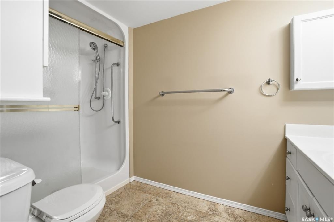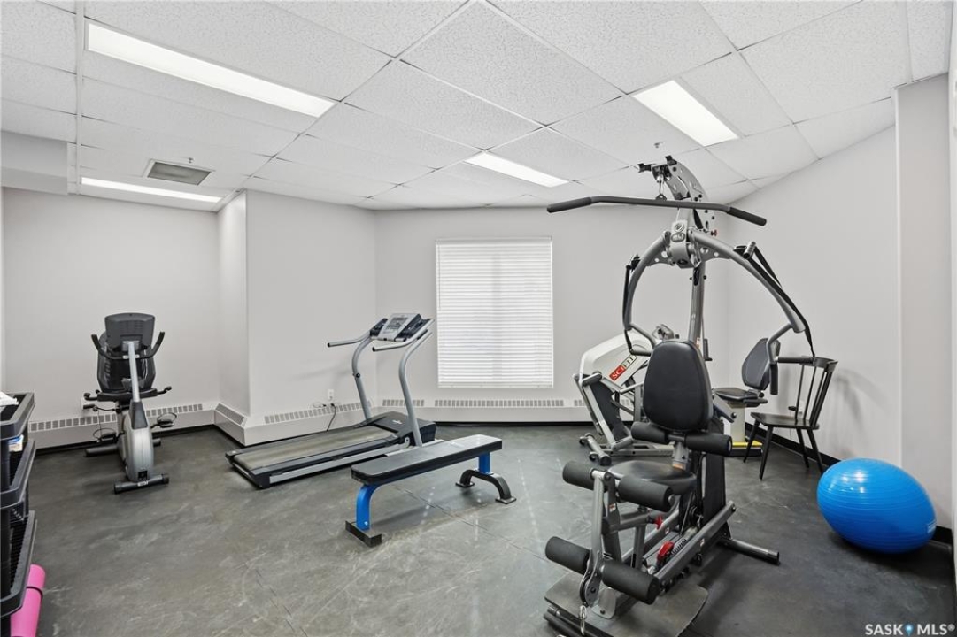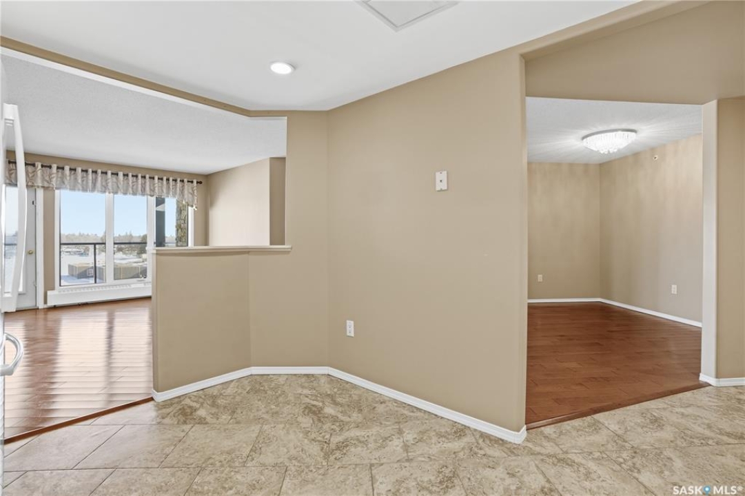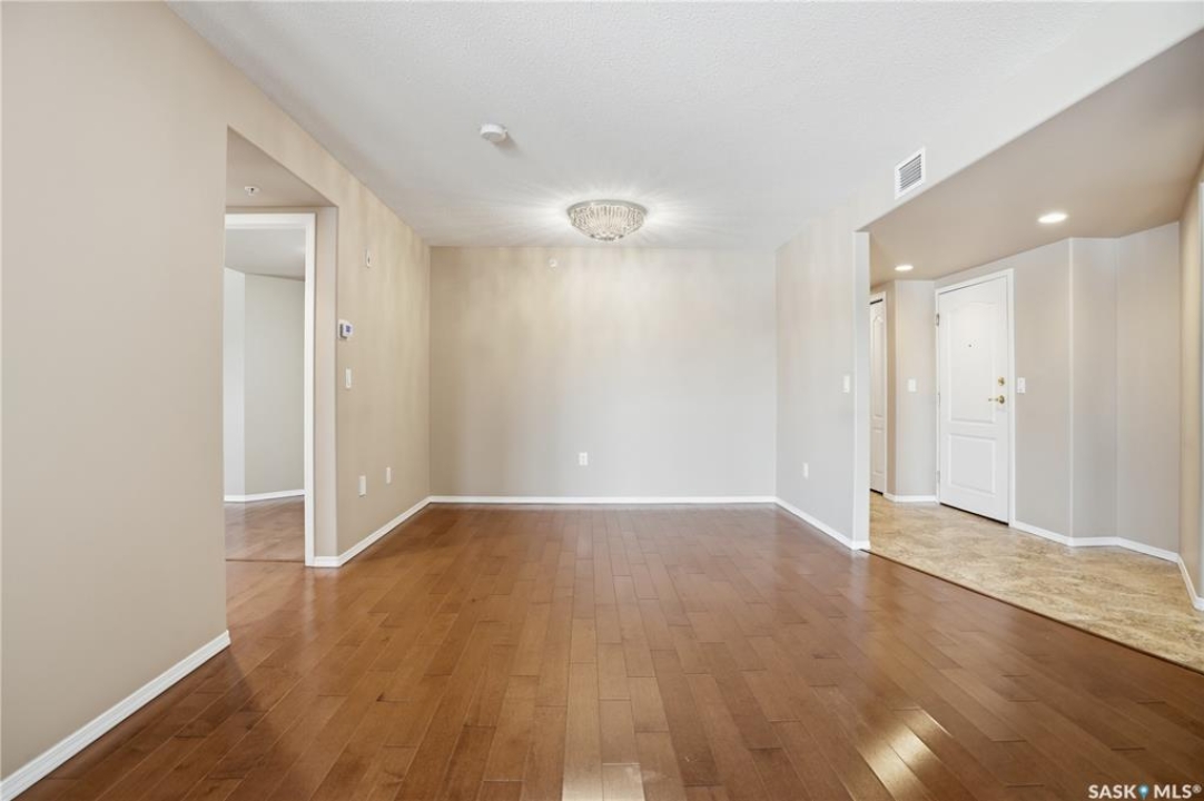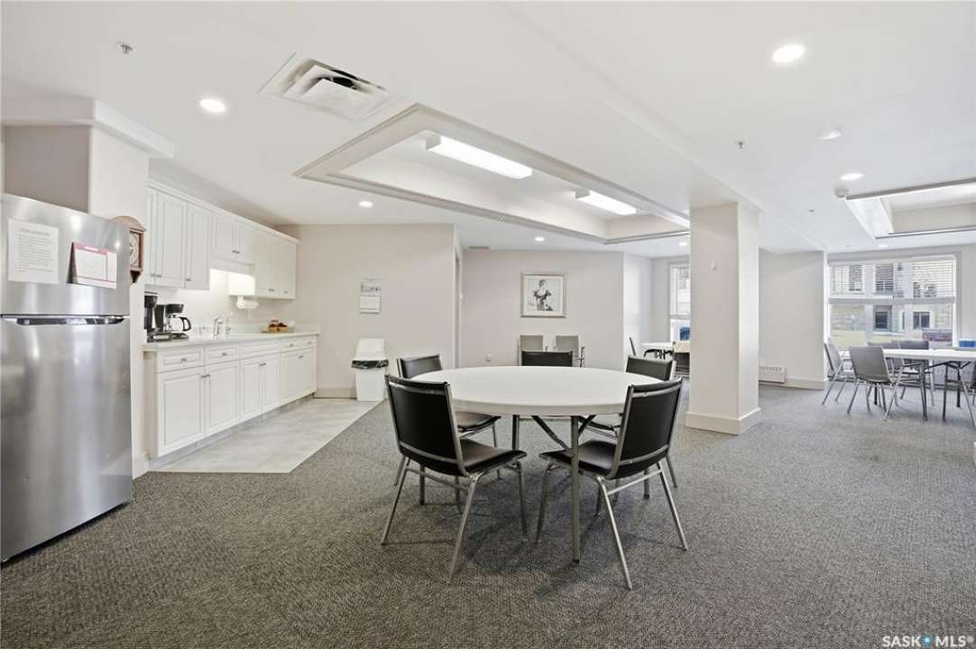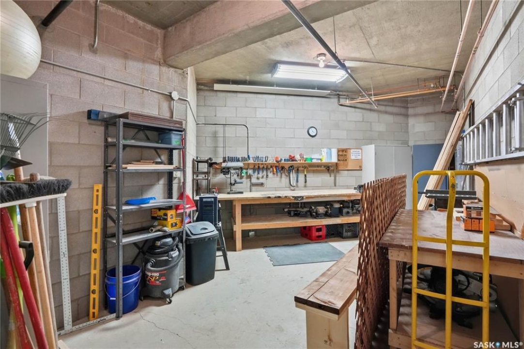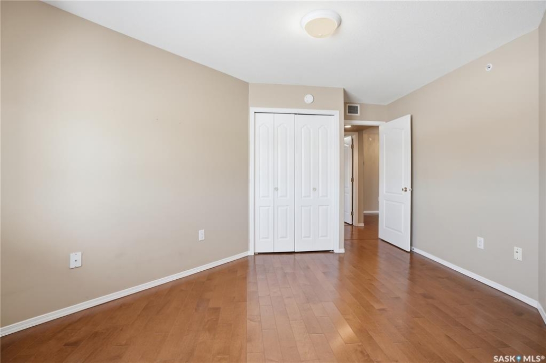 Pristine top floor condo in Marian Park is a show stopper. One of the larger floor plans in the complex at 1326 sq/ft, this 2 bedroom and 2 bathroom condo is move-in ready. Spacious entrance with Duraceramic tiled flooring flows through to the kitchen. Loads of natural light with the east facing balcony overlooking the open space. Bright white kitchen with upgraded appliances including microwave hood fan and Bosch dishwasher, quartz countertops, under cabinet lighting and pot lights. Gleaming engineered hardwood flooring throughout the living room, dining area and two generous bedrooms. The primary bedroom features an oversized walk-in closet and full 3 piece ensuite with tiled flooring. In-suite laundry is conveniently located on the opposite side of the bedrooms and near the main full bathroom. Enjoy your morning sunrise on the large east facing balcony which has natural gas bbq hook up. One underground heated parking stall with additional 60 sq/ft storage locker. Exceptional building with amenities room, exercise area and workshop for those who love to work on smaller projects! Exceptional south Regina location is close to bus stops, grocery stores, shopping, restaurants and a short commute to the airport. Condo fees include heat, water/sewer, reserve fund, common area maintenance and insurance, snow removal, garbage. Don't miss out on this great opportunity before it's too late.