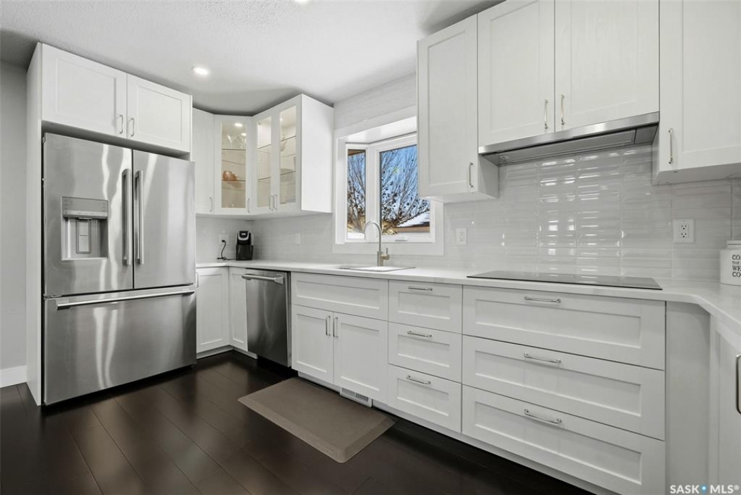 Welcome to 149 Krauss Street, a spacious and well-kept bungalow in Regina's family-friendly Mount Royal neighbourhood. This is a fantastic opportunity for buyers who value both space and lifestyle, with easy access to beautiful walking paths, open green space, and the water feature/creek area that makes this park such a standout in the neighbourhood. Whether you enjoy morning walks, biking, or simply being close to nature, this location offers a peaceful setting while still being close to schools, shopping, and everyday amenities. Inside, the home offers a bright and functional layout with hardwood flooring through the main living areas, a practical kitchen, convenient main floor laundry, and 2 bedrooms on the main level, including a spacious primary bedroom with a 3-piece ensuite, plus a full 4-piece bathroom. The fully finished basement provides excellent additional living space with a large family/recreation room, 2 more bedrooms, and a 3-piece bathroom—ideal for a growing family, guests, or flexible home office/gym use. Outside, the fully fenced backyard is perfect for relaxing or entertaining, featuring mature trees and shrubs, patio space, a storage shed, and a charming gazebo/sunroom-style structure for seasonal enjoyment. Complete with a double attached garage and ample driveway parking, this move-in ready bungalow combines comfort, space, and an unbeatable park-side location.