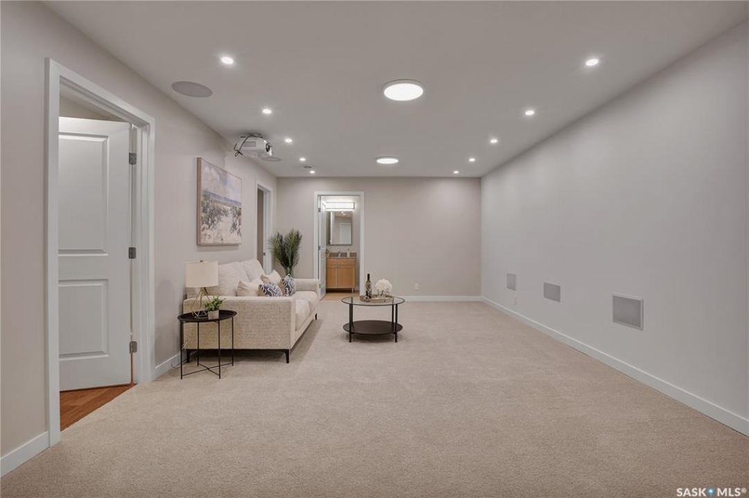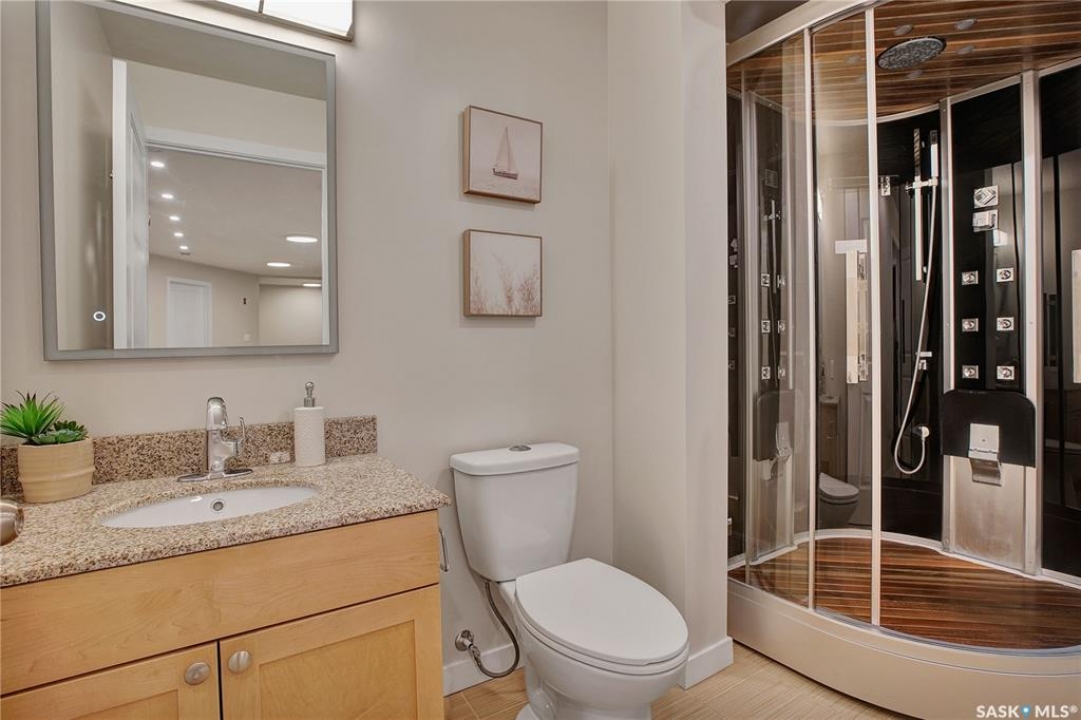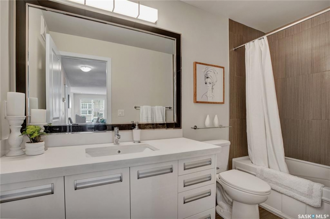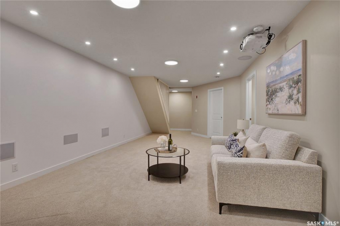 Check it this sought after main floor, bungalow style condo at the Ginger Lofts on Patrick Crescent in Willowgrove! This pristine condo offer ~ 1800 square feet of developed space with the developed basement. The main floor features an open concept living room and kitchen area with bamboo hardwood floors & quartz countertops & stainless steel appliances ( fridge is newer). There are two good sized bedrooms with brand new carpet. On this main level you will find a laundry room and 4 piece bathroom . Now to the basement...!! You will be wowed with this wonderful space. It features two dens ( with closets), a large games room and 3 piece bathroom with an awesome steam shower. The games room has a home theatre ( with a de-coupled common wall, sound dampening insulation and green glue acoustic dampening sealant). It also includes an Epson 4K HDR 10+ home theatre projector with high quality built in speakers. The ceiling tiles have two types of pot lights to create the desired ambiance! The entire condo has recently been repainted ! The location for this condo is lovely as it faces the interior and has a courtyard in the front. You will note that there is ample visitor parking close to this unit. This complex is pet friendly with board approval. This Willowgrove location is close to shopping and amenities in Willowgrove, University Heights ad Brighton & easy access to the U of S. Given this condo's excellent condition, size, basement and development , it will make a wonderful new home for one lucky family!! Be sure to call your favourite Saskatoon Real Estate Agent today to set up your personal viewing.