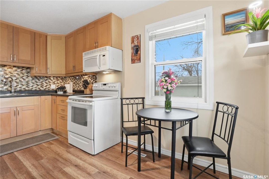 Welcome to 800 Royal Street — a solid and well-maintained 3-bedroom, 1-bathroom bungalow offering 800 sq ft of functional living space on an impressive 6,250 sq ft corner lot. This home features a bright and comfortable layout with a spacious living room, practical kitchen and dining area, and three well-sized bedrooms, making it an excellent option for first-time buyers, downsizers, or investors. Outside, the massive corner lot provides plenty of yard space, extra parking potential, and added privacy, while the standout feature is the heated double detached garage, perfect for Saskatchewan winters, storage, or workshop space. Numerous updates throughout the years provide peace of mind and added value. Features include updated windows (2010), shingles (2014), retextured ceilings and fresh paint, new dishwasher (Dec 2026), new dryer (Dec 2026), new fridge (2023), new ceiling fans in the main bedroom and living room (Dec 2026), reinforced fence posts with cement (Aug 2024), graded patio bricks around the house in the backyard (Sept 2024), new water heater installed by Heaths (Nov 2025), new blinds in the living room, spare bedroom and kitchen (Oct 2025), and replaced window latches (Jan 2026).