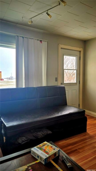 Location! Location! Location! Great starter or investment home. This 780 sq foot bungalow is located on a quiet street on the north side of Oxbow, just across the street from the Community Centre (formerly Oxbow Prairie Heights school). Walking distance from the hospital, the new k-12 school, swimming pool, dog park, rink, and children's parks. This home features a Detached garage (18'x24'), Energy Efficient Furnace, 2025 water heater and Softener, 2022 interior doors. Full appliance package includes: Fridge, Stove, Washer and Dryer, The Lot is a lovely 60'wide x 110'side and is wrapped in mature trees for shade and wind break. Tons of parking as the crushed rock double driveway runs the full length back to the detached garage. Priced to sell!