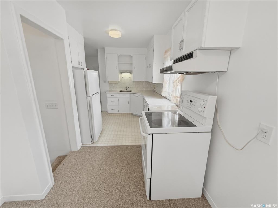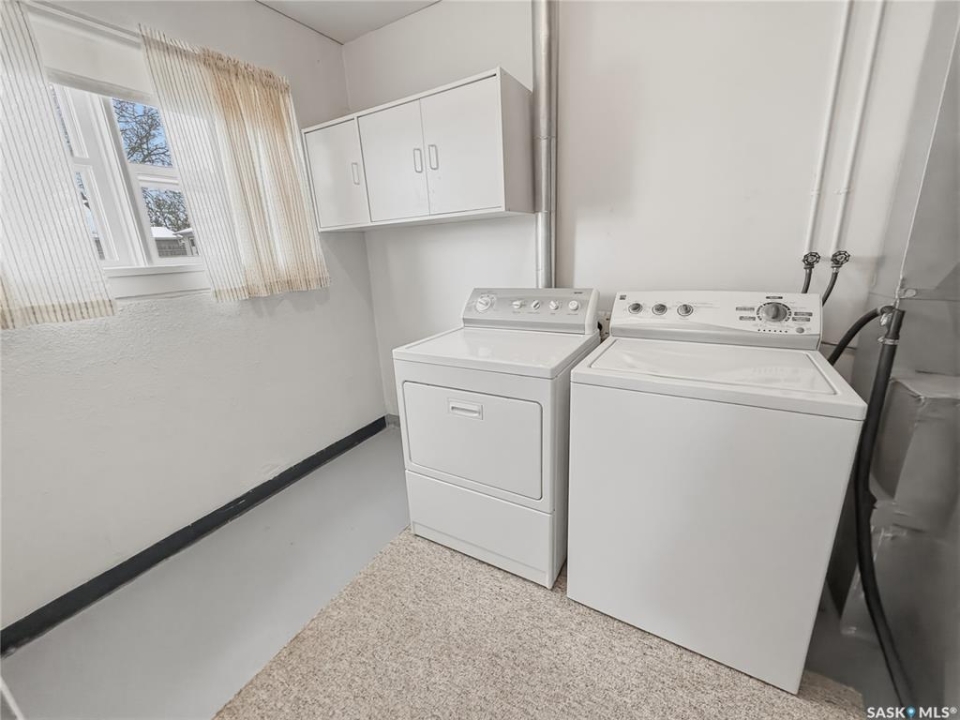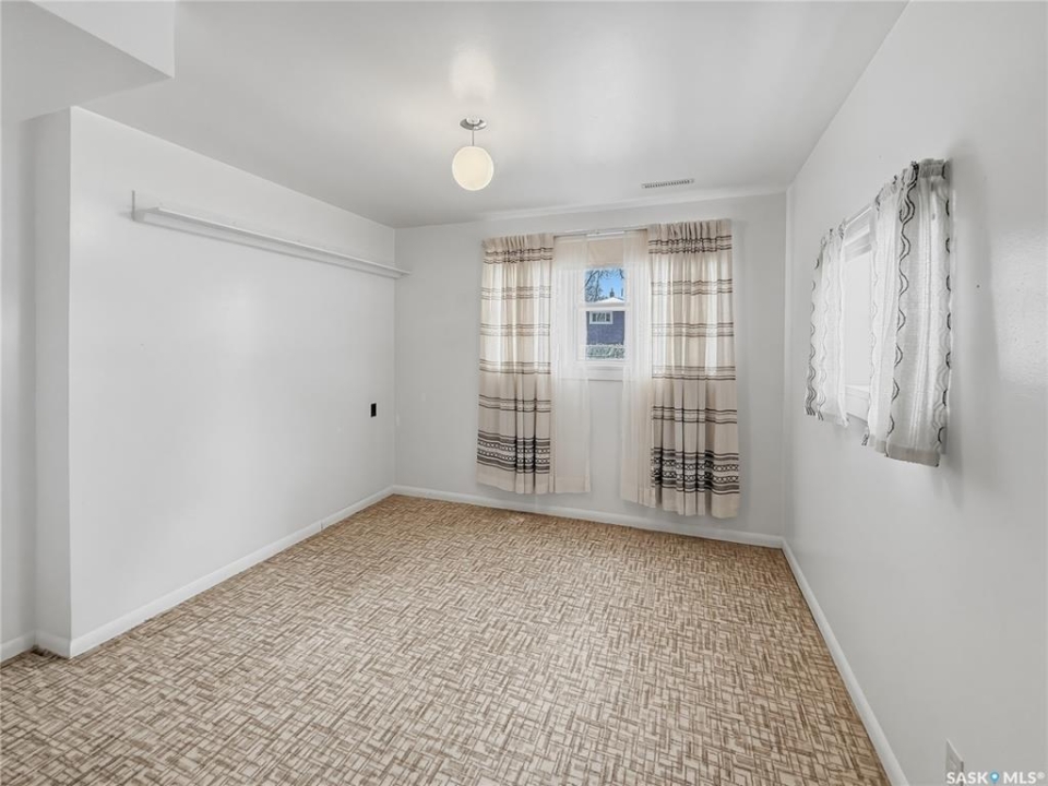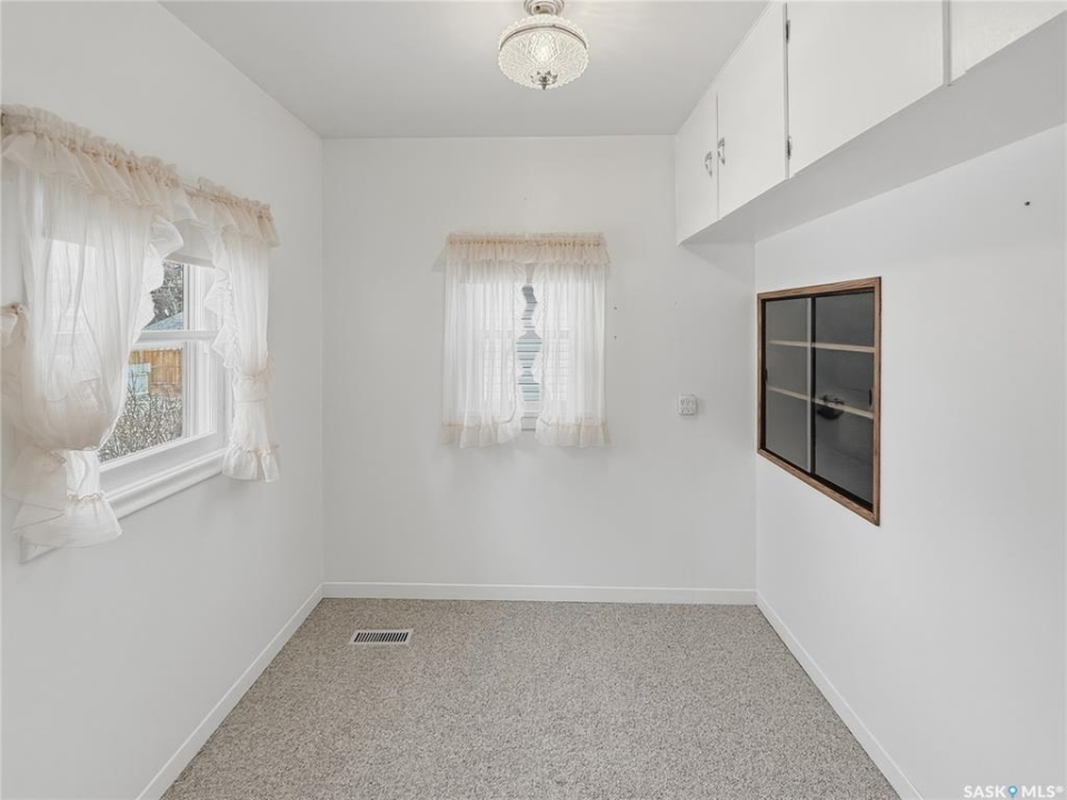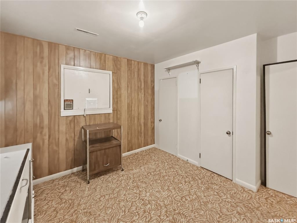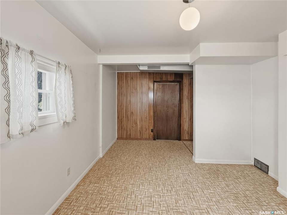 Solid 1959 raised bungalow offering practical space, natural light, and excellent potential for first-time buyers or investors. The main floor features a front porch entry, functional kitchen and dining area with new carpet, a comfortable living room with an east-facing window, two bedrooms, and a four-piece bathroom. The lower level benefits from large windows that bring in plenty of natural light and includes a spacious family room, an additional bedroom, a second bathroom, laundry and utility area, plus a separate storage room. Recent updates include a replaced plumbing stack, main floor tub drain, newer garburator, and carpet in the dining room. Previous improvements include a 100-amp electrical panel with metal mast, updated furnace, and hot water heater (replaced in 2020). Additional exterior storage is available under the porch and front steps. Situated on a corner lot with off-street parking at both the front and rear, the property also offers a powered shed ideal for tools and yard equipment. Convenient southeast location within easy walking distance to Pioneer Co-op grocery store, gas station, and liquor store. Affordable payments make this a great entry-level home or revenue property opportunity.