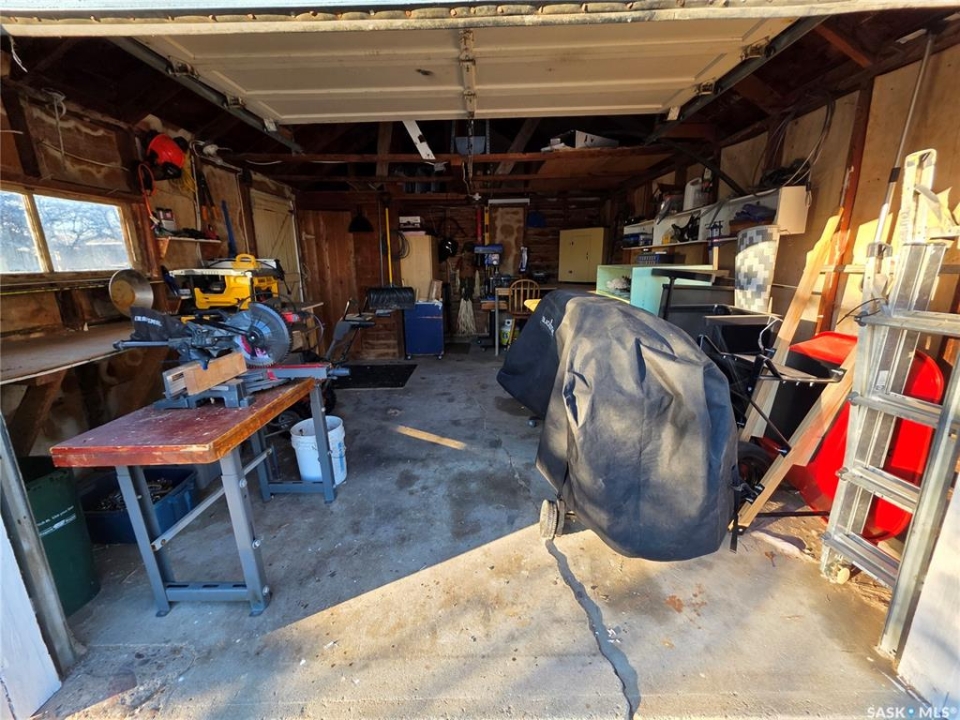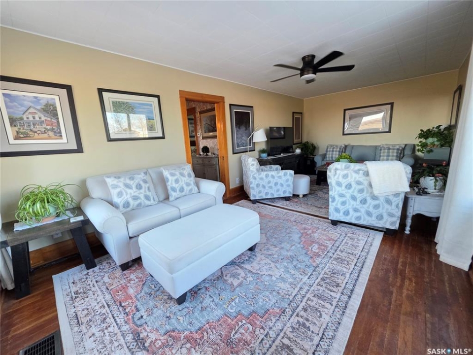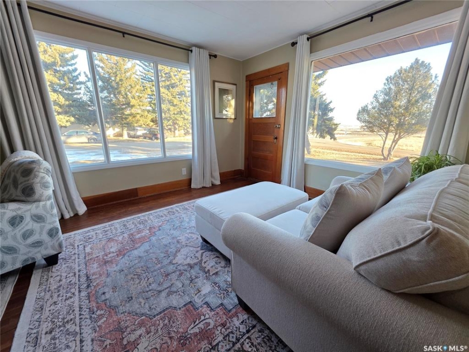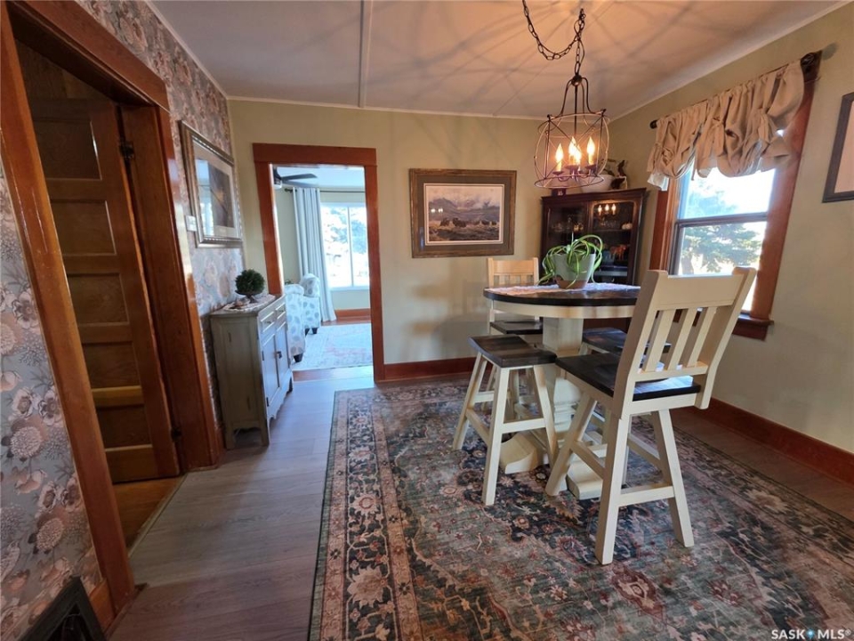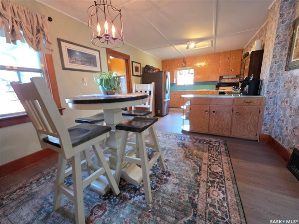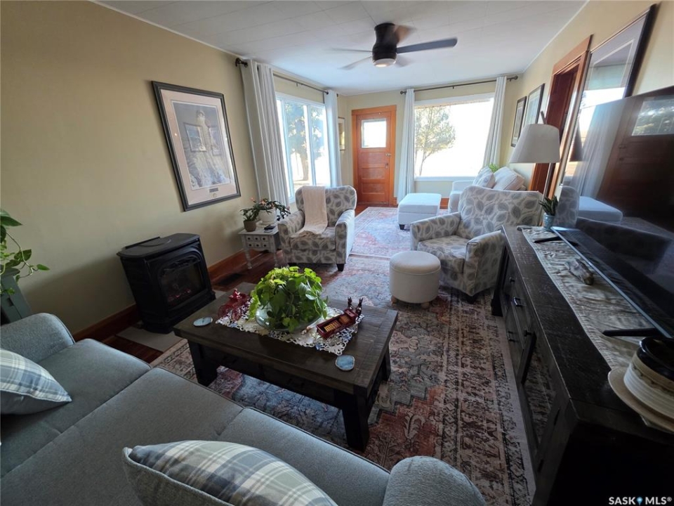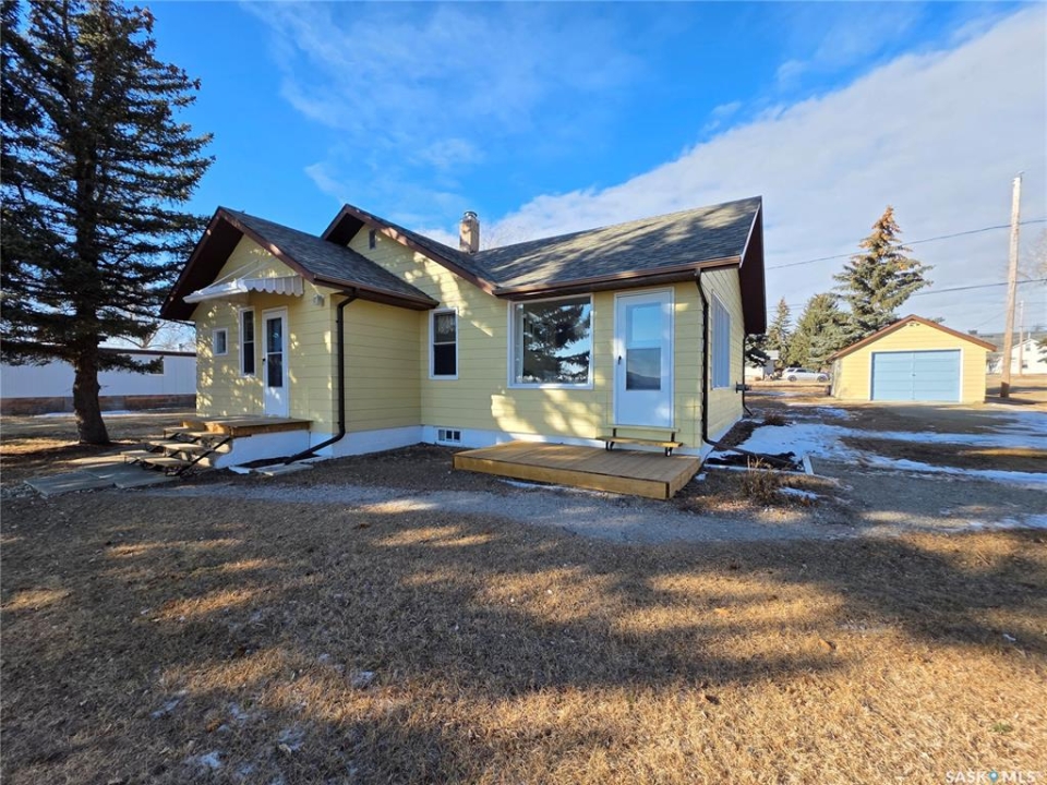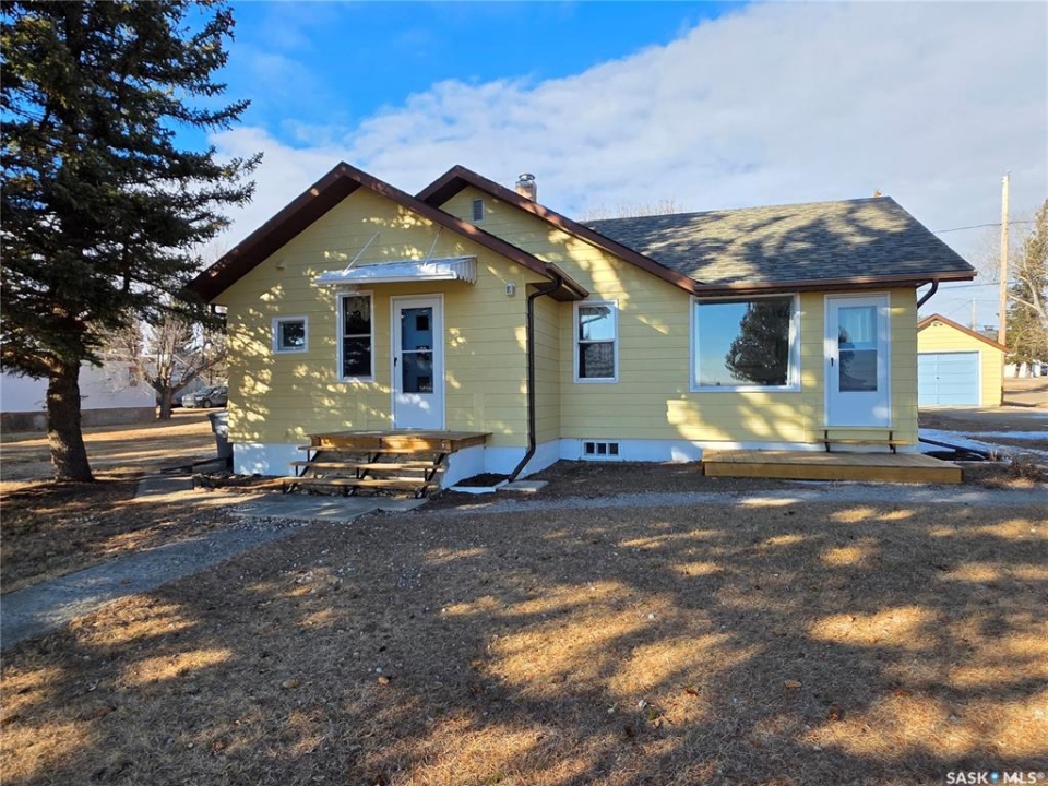 There's something special about small-town living, and this gem at 314 Railway Avenue in Neville comes with wide-open prairie views and a home that's been thoughtfully refreshed where it counts. This freshly painted, newly shingled house and garage sit proudly on a large, 100x115-foot lot overlooking the sweeping Saskatchewan landscape, giving you uninterrupted sunsets, endless skies, and the kind of peace you simply can't manufacture in the city. There's room here for a garden, a firepit, a trampoline, or all three, and still space left over. Inside, you'll find a comfortable blend of updates and character: durable laminate flooring and stylish wallpaper accents add a modern touch, while the original wood floors, solid wood cupboards, and that retro bathroom bring warmth and a sense of nostalgia that's hard to replicate. The open kitchen and dining layout keeps everyone connected, whether you're hosting a holiday supper or just keeping an eye on homework at the table. The huge, well-lit living room is a standout feature, anchored by a cozy gas fireplace and wrapped in natural light, making it an inviting hub in every season. Two bedrooms offer practical, easy living, while the basement expands your options with a generous workout area, laundry setup, a convenient 2-piece bathroom, and a separate shower room that adds everyday functionality. If you've been craving elbow room, prairie views, and a home with genuine personality—not cookie-cutter, not overdone—this Neville property delivers affordable comfort, character, and space to breathe.