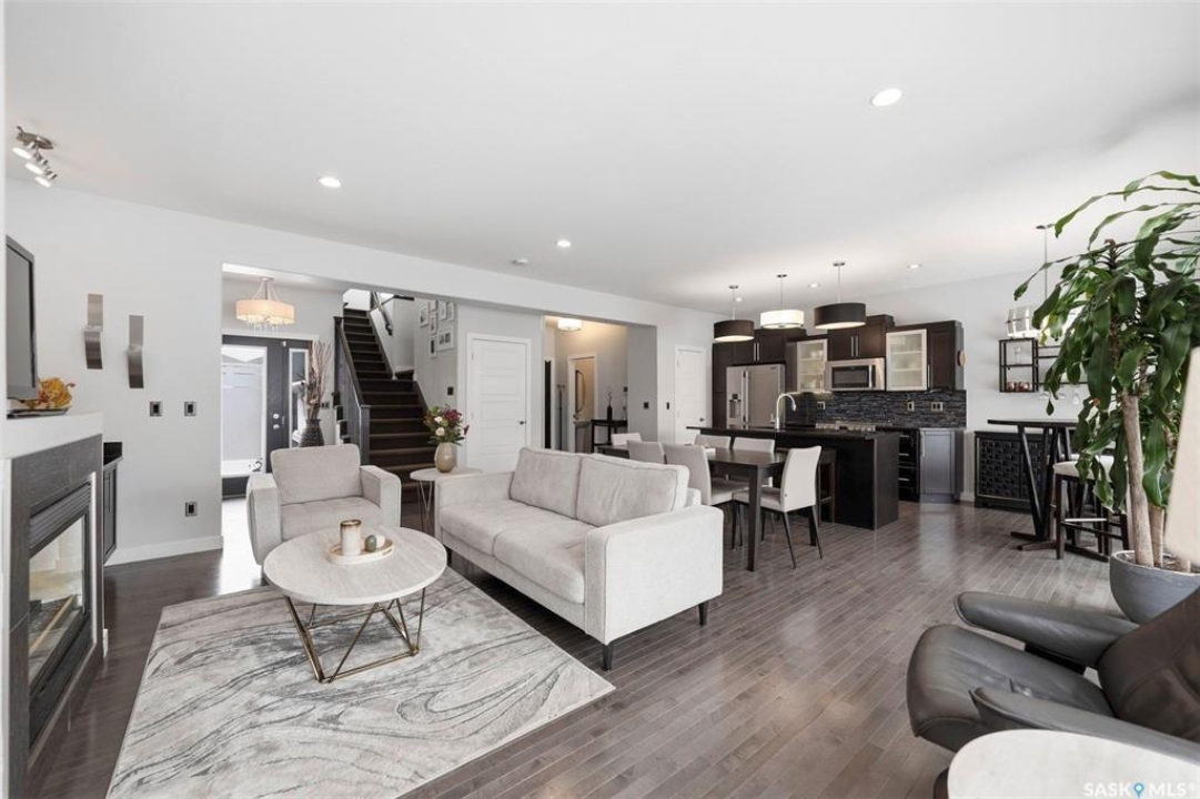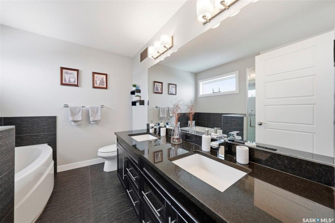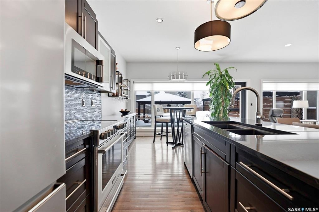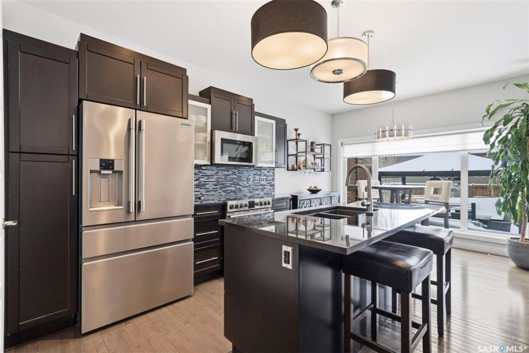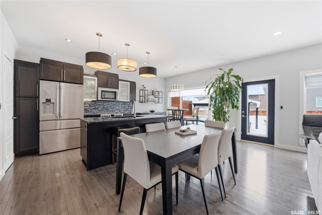 Welcome to 707 Sauer Crescent in the beautiful Evergreen community. This 3 + 2 bedroom home is perfect for families. It is located within walking distance of elementary and high schools and is adjacent to a park and walking path. Situated on a large, professionally landscaped lot, the property features a fenced backyard with an above-ground pool. It is an entertainer's dream, complete with subtle lighting, spacious decks, a pergola and a built in BBQ where you can enjoy summer nights in style. Entering through the front door, you are welcomed into an open kitchen and living room with large windows overlooking the backyard. The kitchen boasts dark, rich cabinets and comes complete with stainless steel appliances, granite countertops, and direct access to the dining area. A gas fireplace and hardwood floors make the living space warm and inviting. Also on the main floor is a two-piece bathroom combined with the laundry area. Upstairs, you will find a family room with built-in cabinets. The large primary bedroom features a massive walk-in closet (5.3 x 11.8) and a five-piece ensuite with a separate tub and shower. There are two additional bedrooms on the second floor, along with a four-piece bathroom. The fully developed basement offers a cozy family room. This lower level also includes a four-piece bathroom and two additional bedrooms (or one bedroom and a den), both with windows. Additional features of the home include central air conditioning, underground sprinklers, and direct entry to the heated and insulated 24 x 24 garage. The home is located just one house away from walking paths and half a block from a park.