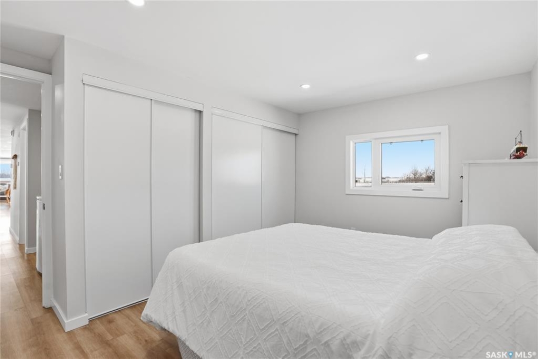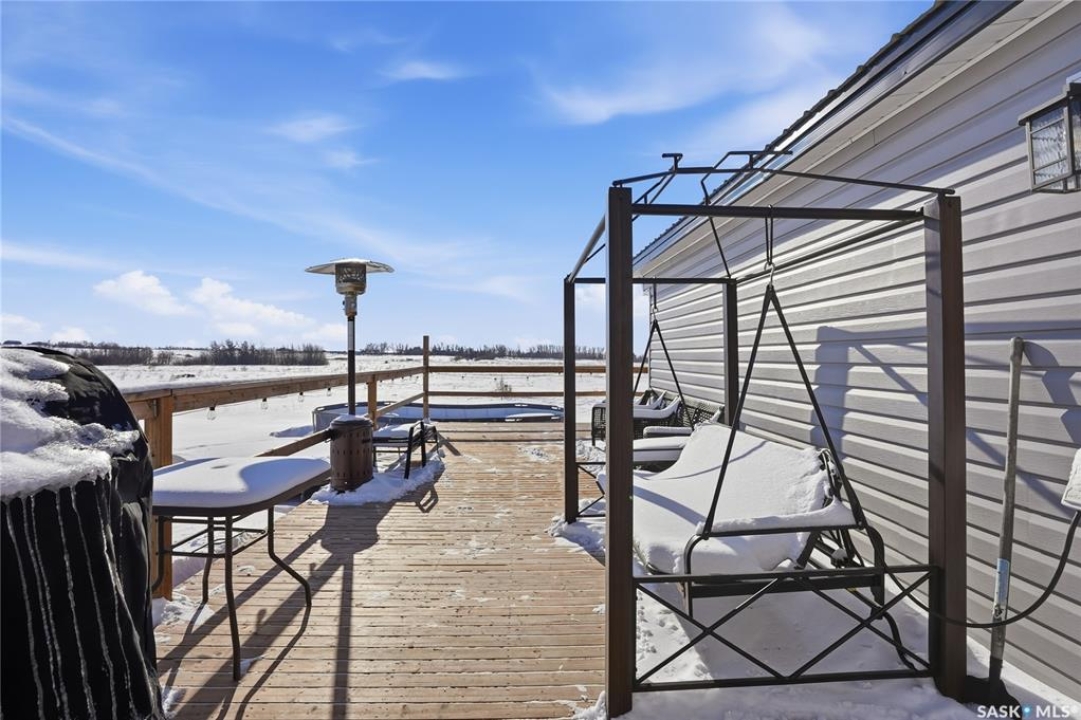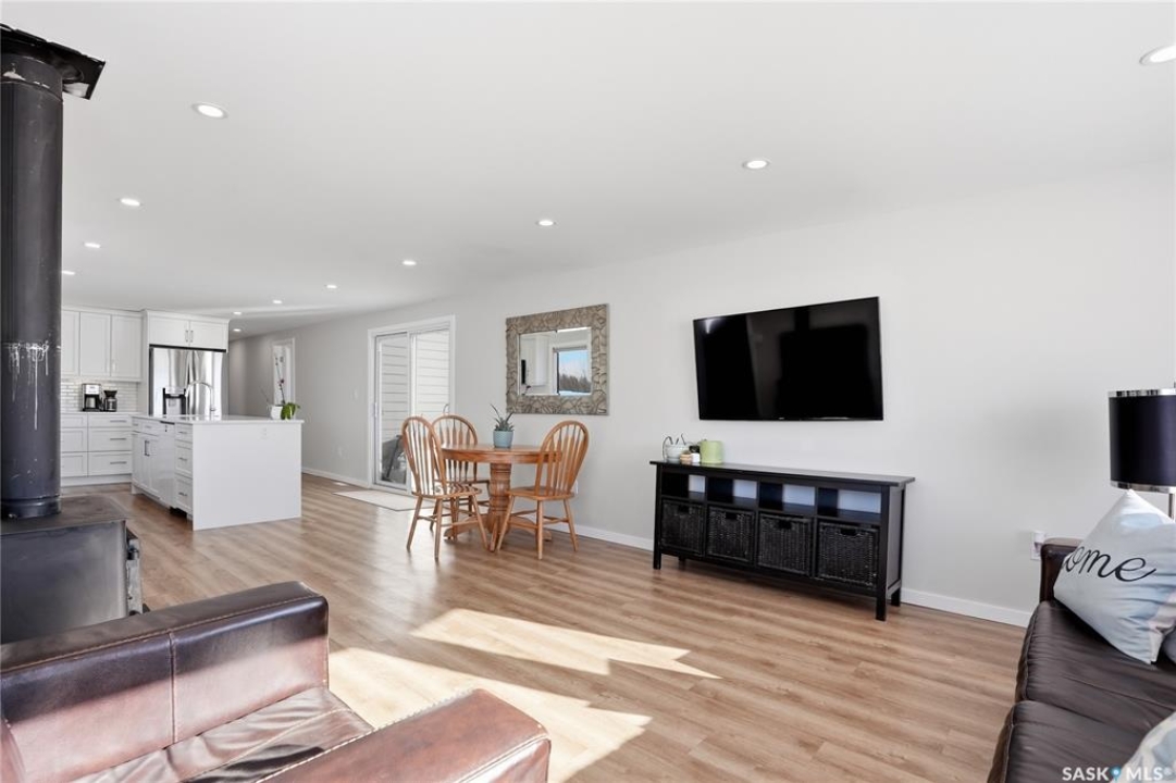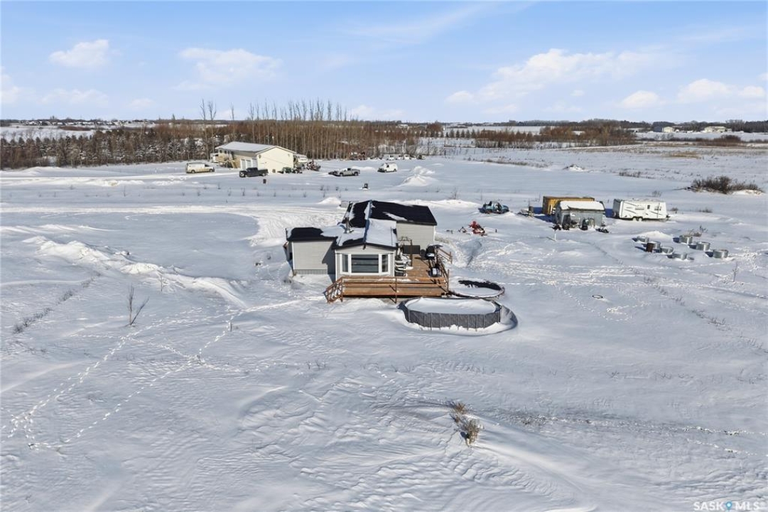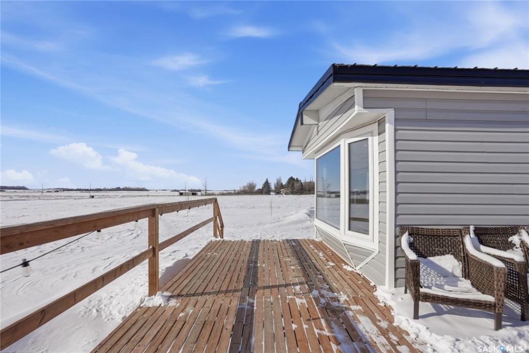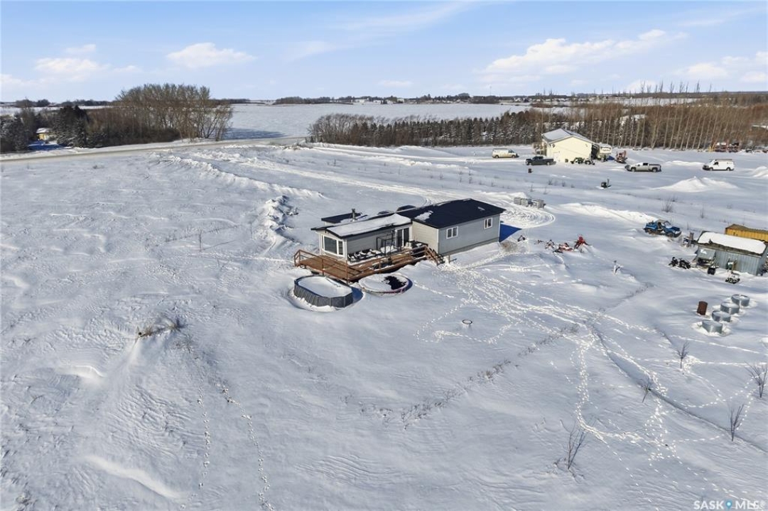Welcome to 9 Waz Road. This gem of an acreage is one you will not want to miss. Totally renovated mobile home located on 12 acres of owned land. Just 10mins outside of Saskatoon. Affordable out of town living with tons of future possibilities and options. Walk in and instantly love the modern country vibe. You are first greeted with a large mudroom with ample space for organization and storage. Continue through and you will love the open concept main area. Bright, clean and very functional kitchen with oversized island, stainless appliances, custom backsplash and quartz countertops. Cozy up with wood burning fireplace finishing off the front living room nicely. You will appreciate the extra width in this home as there were two additions added. Spacious primary bedroom with full ensuite. Three additional bedrooms and another full bath. Large laundry area and luxury vinyl plank throughout. Over 1400 sq. ft on one level. Many big ticket renovations done in 2022 include windows, doors, vinyl siding, shingles, soffit, fascia, furnace, on-demand hot water, electrical, plumbing, flooring, kitchen – virtually everything. Heated crawl space with metal skirting (dug in deeper) and spray foam insulation. Brand new septic also done in 2022 ($32K value). new central air conditioning and generator (2024). Amazing opportunity to get into acreage living now and enjoy your very own space. Conveniently located just outside Clavet with an easy short drive on gravel. CSA approved and reasonable home insurance ($4,000/ year).