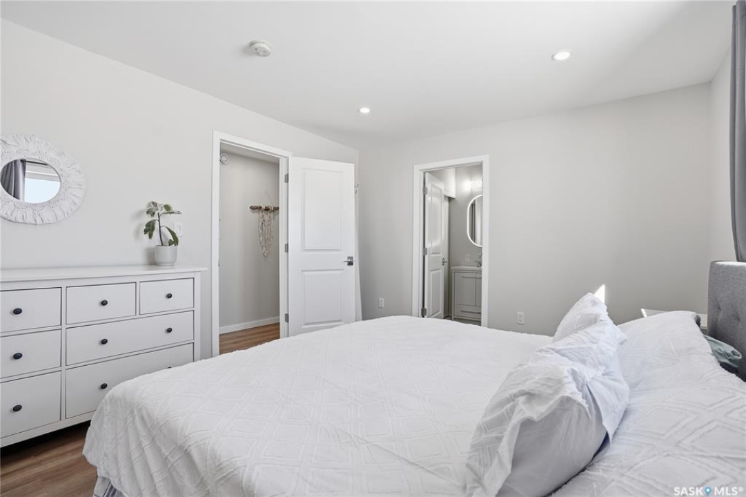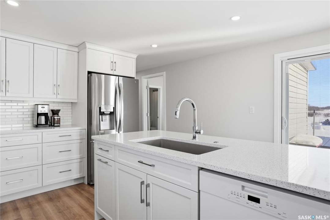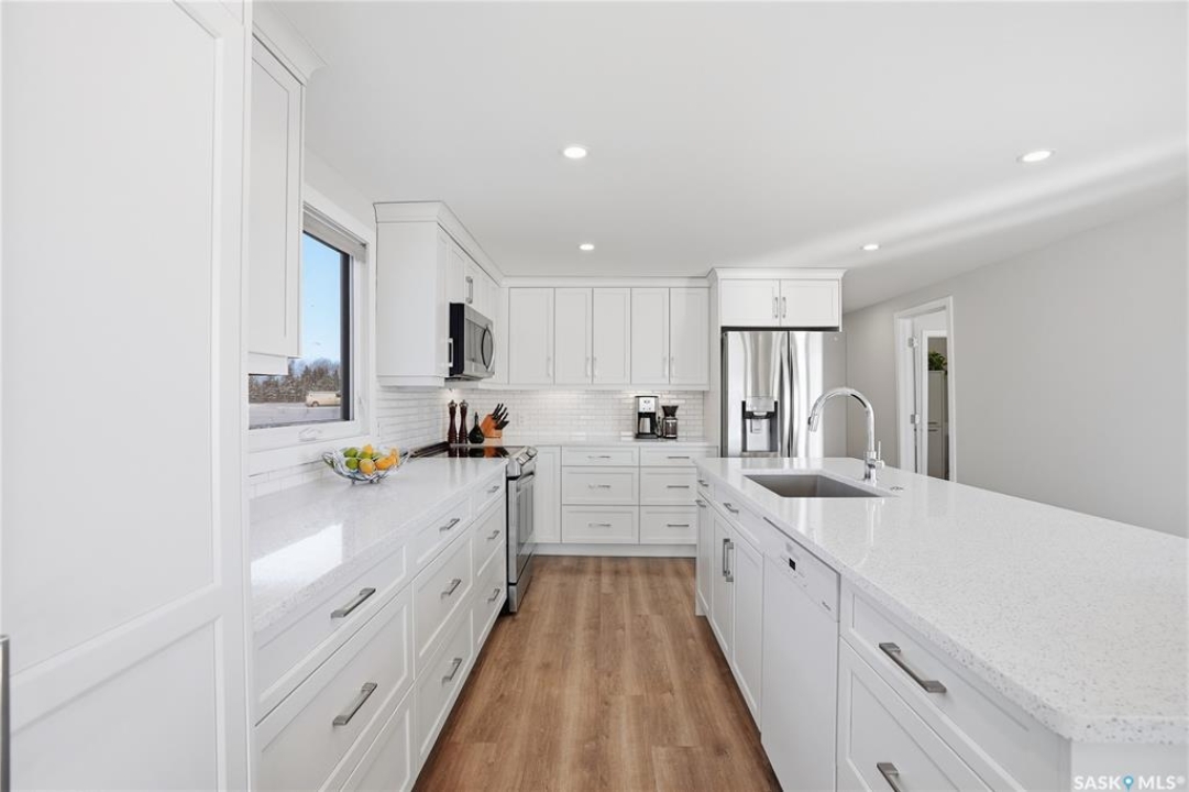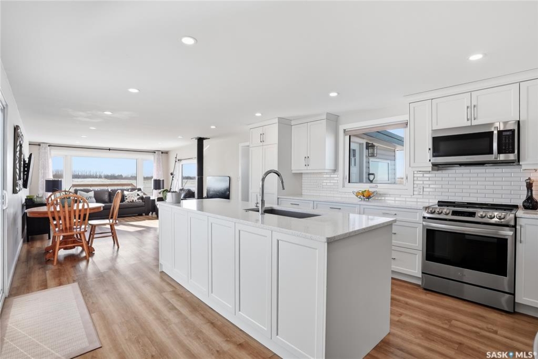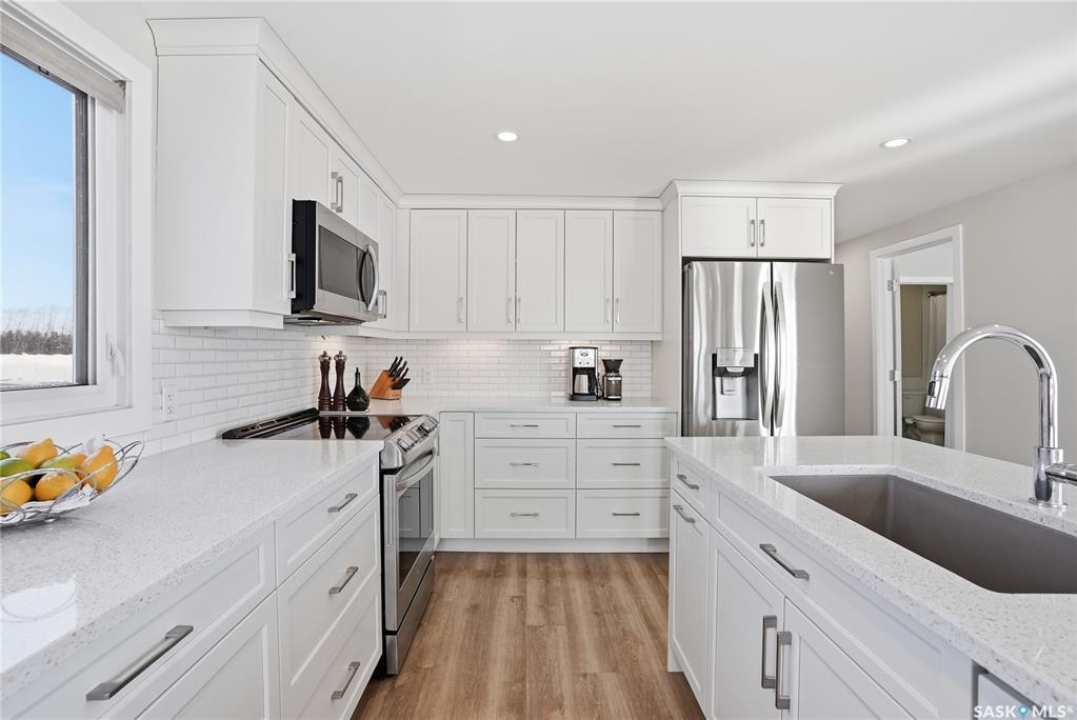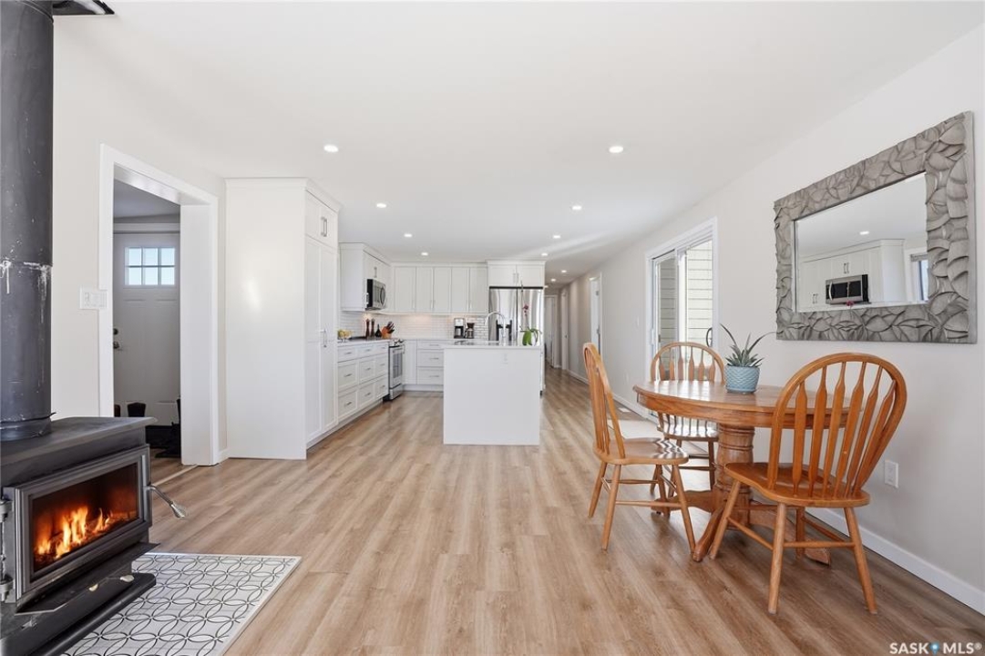 Welcome to 9 Waz Road. This gem of an acreage is one you will not want to miss. Totally renovated mobile home located on 12 acres of owned land. Just 10mins outside of Saskatoon. Affordable out of town living with tons of future possibilities and options. Walk in and instantly love the modern country vibe. You are first greeted with a large mudroom with ample space for organization and storage. Continue through and you will love the open concept main area. Bright, clean and very functional kitchen with oversized island, stainless appliances, custom backsplash and quartz countertops. Cozy up with wood burning fireplace finishing off the front living room nicely. You will appreciate the extra width in this home as there were two additions added. Spacious primary bedroom with full ensuite. Three additional bedrooms and another full bath. Large laundry area and luxury vinyl plank throughout. Over 1400 sq. ft on one level. Many big ticket renovations done in 2022 include windows, doors, vinyl siding, shingles, soffit, fascia, furnace, on-demand hot water, electrical, plumbing, flooring, kitchen – virtually everything. Heated crawl space with metal skirting (dug in deeper) and spray foam insulation. Brand new septic also done in 2022 ($32K value). new central air conditioning and generator (2024). Amazing opportunity to get into acreage living now and enjoy your very own space. Conveniently located just outside Clavet with an easy short drive on gravel. CSA approved and reasonable home insurance ($4,000/ year).