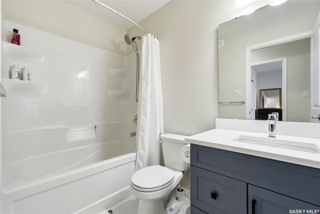 Welcome to 4330 Kinloch Bay E in The Towns—an impressive 2-storey home offering modern style, a functional family-friendly layout, and a huge fully fenced backyard. Built in 2021, this well-kept home features 1,609 sq. ft. above grade with 3 bedrooms, 3 bathrooms, and a bright second-floor bonus room. The main floor showcases an open-concept design with durable vinyl plank flooring, a stunning living room feature wall with electric fireplace, and a beautiful kitchen finished with quartz counters, two-tone cabinetry, tile backsplash, stainless steel appliances, gas range, and a large island perfect for everyday living and entertaining. The dining area overlooks the backyard and offers direct access outside. You'll also appreciate main floor laundry and a convenient 2-piece bath. Upstairs, the spacious primary suite includes a 3-piece ensuite, while two additional bedrooms and a full 4-piece bath complete the level. The full basement is unfinished and ready for your future development, with a separate entry for added flexibility. Additional features include central A/C, on-demand hot water, sump pump, double attached garage, exposed aggregate double driveway, and parking for 4 vehicles. Situated on a generous 8,380 sq. ft. lot, this home offers excellent outdoor space and room to grow in a sought-after east Regina neighbourhood.