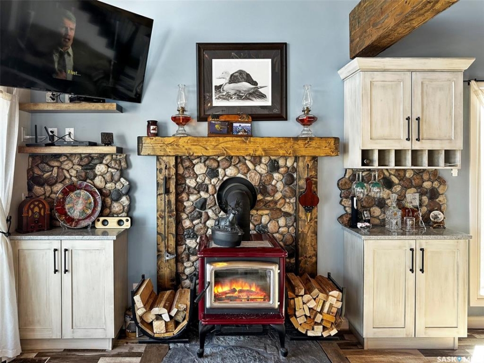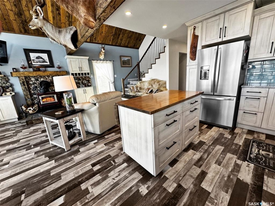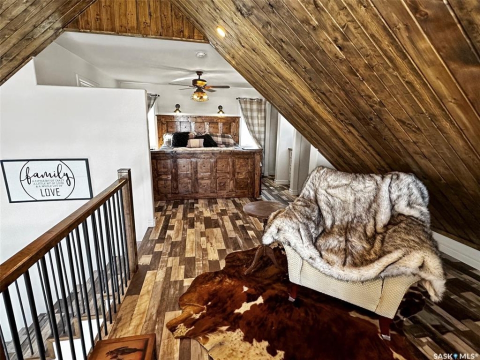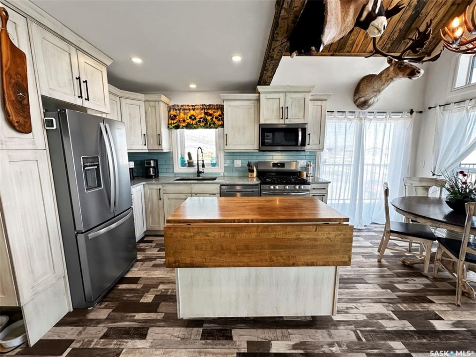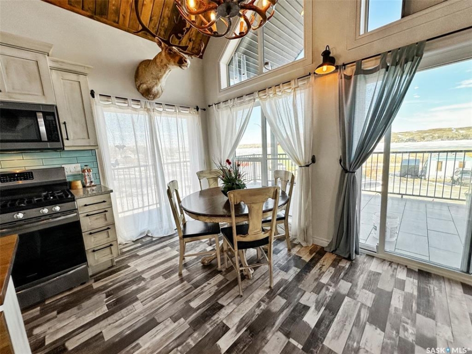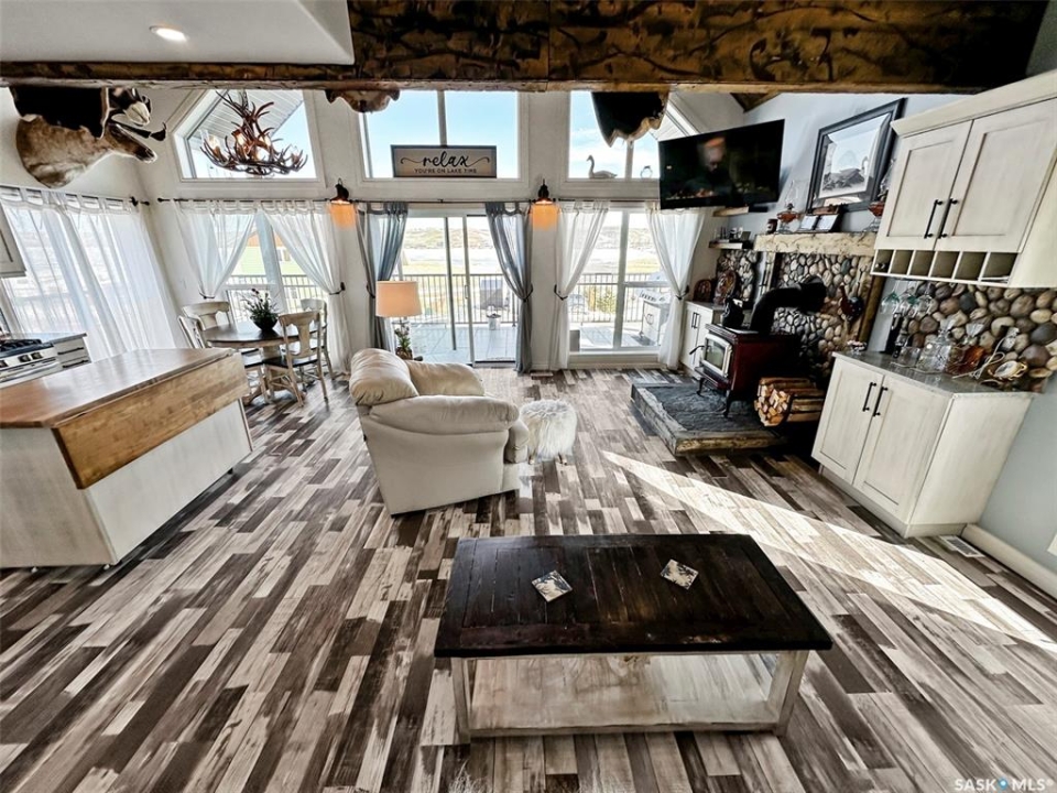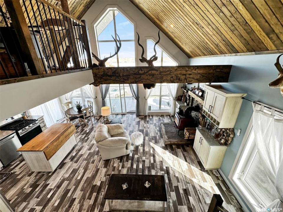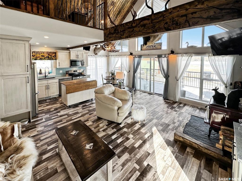 Escape to your own lakeside sanctuary at Lac Pelletier's southwest side w this 4-season ENERGY EFFICIENT A-frame home (ICE panel construction). Built in 2021, this rustic reverse walkout A-frame bungalow won't disappoint! The open concept main floor, adorned w vaulted pine ceilings, has an abundance of windows framing stunning lake views. Vinyl plank flooring throughout for durability. Enjoy the covered deck to the east for peaceful relaxation, while the deck along the north side offers an open-air experience with views of the river hills directly behind the home. Cozy up by the wood-burning fireplace w stone accents, flanked by cabinets including a bar & wine rack. The modern kitchen is a chef's dream, featuring a full stainless steel appliance package, gas range, & a convenient sit-up island. This space seamlessly flows into the loft above, creating a harmonious living environment. The main floor also includes a bedroom, a 4-piece main bath, & a welcoming porch for added convenience. Ascend the open stairwell to the loft area, offering a relaxing space that can dble as an office. The lower walkout level houses a spacious mudroom/laundry area w stacking washer/dryer, a sink, & a modern mechanical room. The dble garage is heated & features a man cave on the south side, while the home is equipped w a high-efficiency furnace, air exchanger, a 2000-gallon septic tank, & connection to the central water line. Majority of furnishings will be included. Embrace the lake life lifestyle w access to the Regional Park's amenities, including a restaurant, 9-hole golf course, licensed clubhouse, mini-golf, boating, fishing, & swimming. This deeded second row property offers a tranquil escape just south of Swift Current, Saskatchewan, at Lac Pelletier Regional Park. Located only 31 km south on Highway #4 and 12 km west on Highway #343, this is your opportunity to own a piece of lakeside paradise!