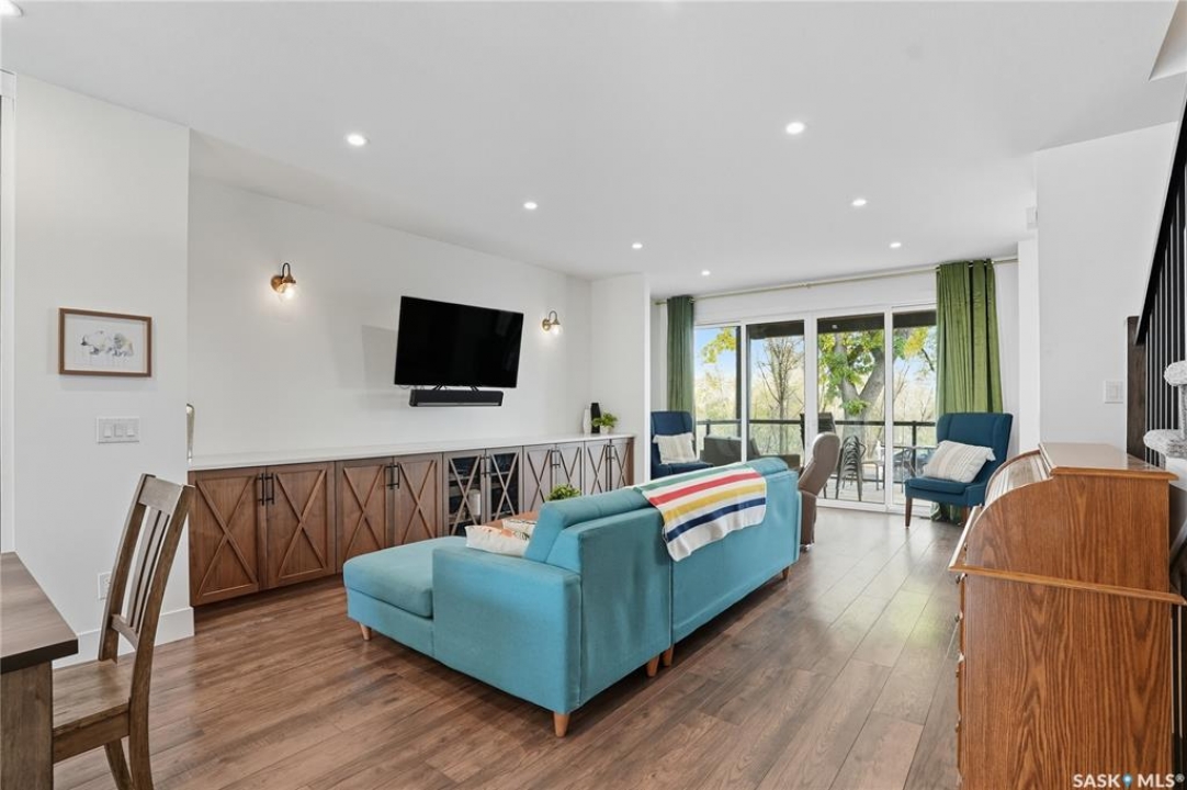 Located on prestigious Spadina Crescent East, this stunning riverfront home is perfect for those looking for a family-friendly home in a sought-after neighbourhood. The main floor boasts hardwood flooring throughout with views from the oversized windows in the living room which opens seamlessly to the dining area and designer kitchen - complete with quartz countertops, an abundance of cabinet space, high-end appliances and island with seating. A convenient 2-piece powder room and mud room completes this level. The second floor features three generously sized bedrooms, including the primary suite with a private balcony offering gorgeous river views, spacious walk-in closet and ensuite complete with dual sinks, custom-tiled shower and separate water closet. Convenient second-floor laundry room adds to the home's functionality. The basement has been thoughtfully finished with a large family room, and an additional bedroom and full bath - perfect for teenagers or overnight guests. Outside you will enjoy river views from your front verandah or BBQing in your private backyard. The incredible oversized 2 car garage comes with electric vehicle plug, 15ft peak and a 3pc bath! Located close to schools, City Hospital, parks and downtown, don't miss your opportunity to own a newer home in one of Saskatoon's most desirable locations!