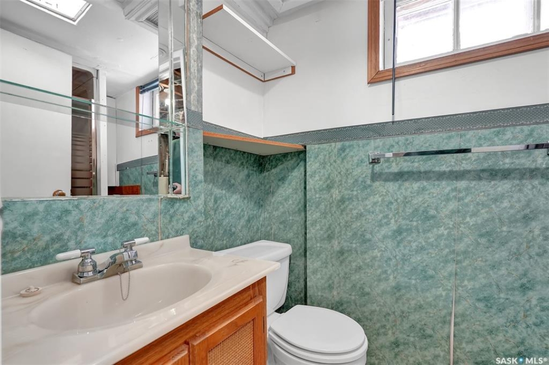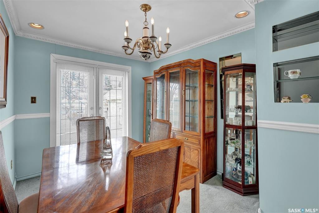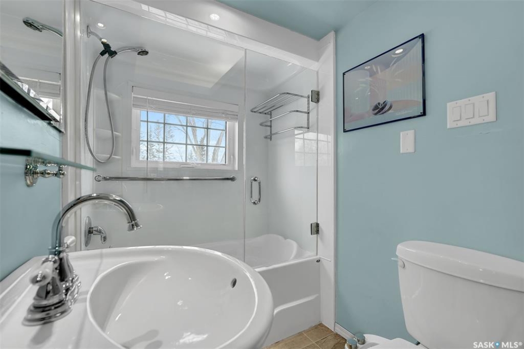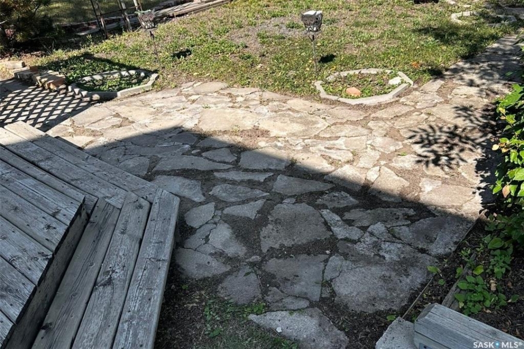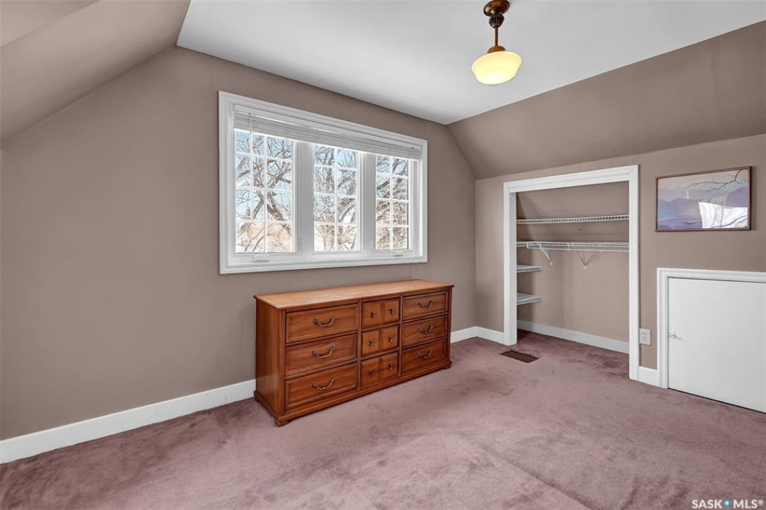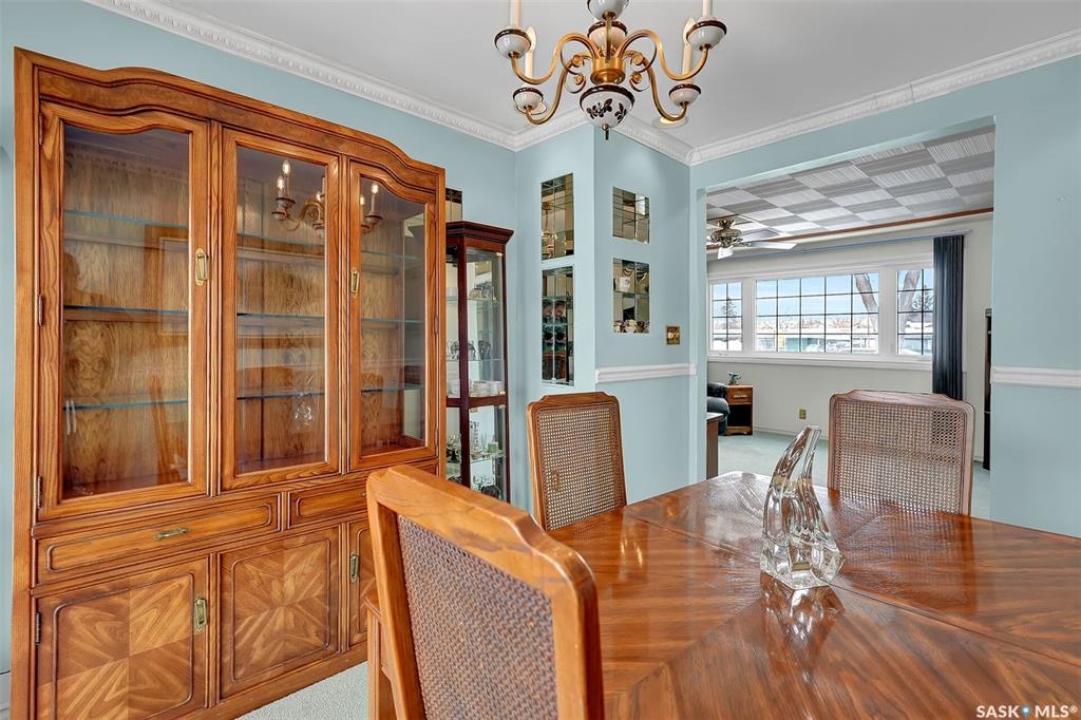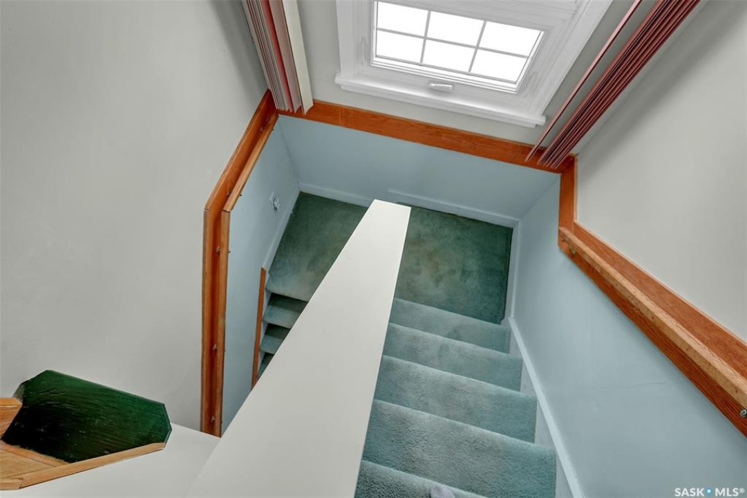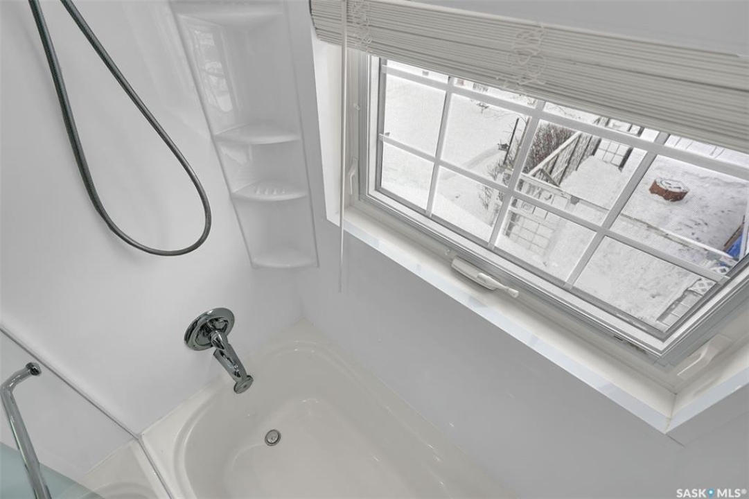 Welcome to this charming one-and-a-half-storey home set on a double-sized corner lot with access from both Broad Street & 6th Avenue North. This 1945 classic blends character, light & versatility—offering a layout that can adapt to many lifestyles. The exterior has been base-coated & ready to personalize. Inside you are greeted by a spacious front entry that opens into the bright living room & lovely sightline toward the kitchen. Natural light pours into this home from every direction thanks to updated windows throughout (excluding the kitchen). The living room features a picture window & flows seamlessly to the L-shaped dining area, where garden doors lead outside. Hardwood under carpet. The U-shaped kitchen provides excellent cabinet & counter space, along with a garden window overlooking the backyard—perfect for plants or simply enjoying the view. A cozy nook off the kitchen serves perfectly as a small eating area or workspace. Upstairs, a generous landing window brightens the staircase. The crisp renovated main bathroom includes a glass tub door & convenient access to a walk-in cedar closet with built-in shelving and storage space. The two upstairs bedrooms are both very good sizes, each featuring two windows, built-in desks tucked into the dormer spaces, ample closet storage & access to additional attic storage—classic character. A French door leads to the back entry and the enclosed back porch with drywalled walls and electrical plug.. The basement stairs are wide and comfortable leading to bright open space ready for your personal touch. There is a functional 3-piece bath & laundry area. The yard is expansive with a deck, walking path, decorative dividers with glass inserts, mature trees, fire-pit area, single garage & plenty of parking. Sidewalk on 6th Ave N was made accessible to back yard. Located close to public transit, schools, shopping, and everyday amenities, this is a home that welcomes you —and invites you to make it your own.