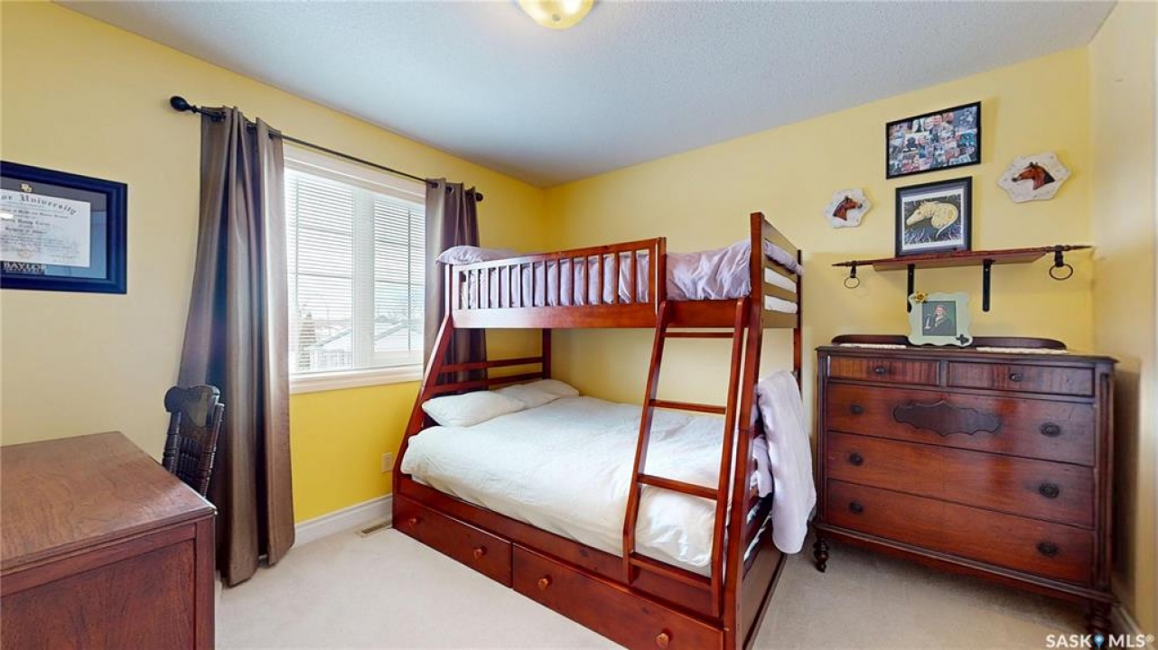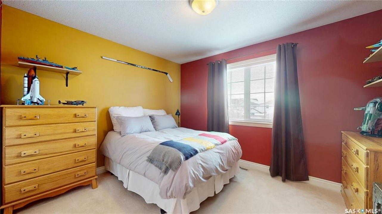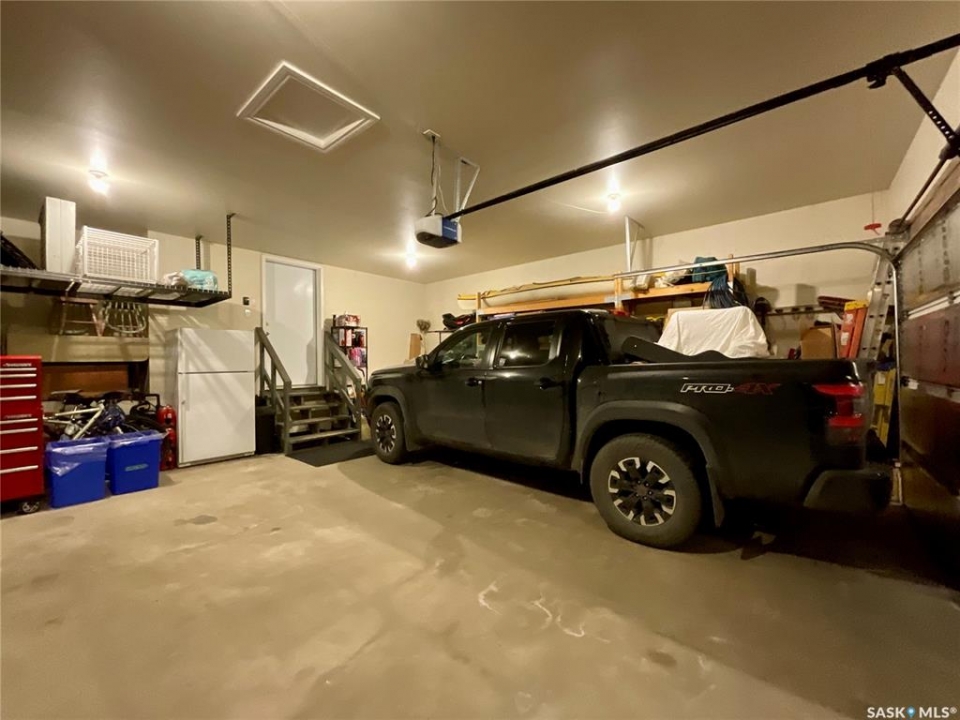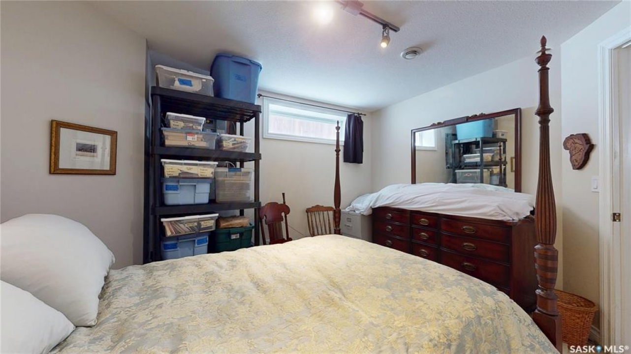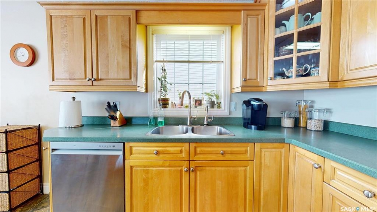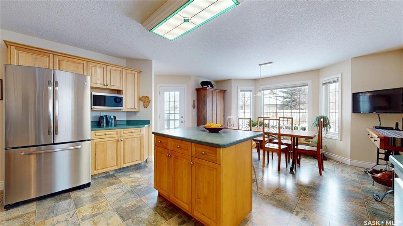 Welcome home to this beautifully maintained 1,739 sq. ft. two-storey split in the highly sought-after neighbourhood of Wascana View. Ideally located and thoughtfully designed, this home offers spacious living areas and a stunning backyard retreat. Step inside to a grand living room highlighted by soaring two-storey vaulted ceilings, large windows overlooking the yard, and a cozy gas fireplace creating a bright, inviting space perfect for both relaxing and entertaining. The kitchen features warm maple cabinetry, an island, ample counter space, and updated appliances. It flows seamlessly into the dining area, where a charming bay window and direct access to the backyard make everyday meals and gatherings effortless. The half bath and laundry complete the main floor. Upstairs, you'll find three generously sized bedrooms and two full bathrooms. The spacious primary suite features a walk-in closet and a private en-suite with a separate shower and jetted tub. The lower level adds valuable living space with a large family room, the fourth bedroom, abundant storage, and a room already roughed in for a future full bathroom, providing flexibility for growing families or guests. Outside, the beautifully landscaped backyard is truly a standout feature. Mature trees, shrubs, flowers, a garden area, a fire pit, and a deck combine to create a private outdoor oasis perfect for relaxing or entertaining. Completing the home is an oversized 24x24 double attached garage, fully insulated for year-round comfort. Lovingly cared for over the years, including a new roof installed in 2018. This is a wonderful home, ready for its next proud owners!