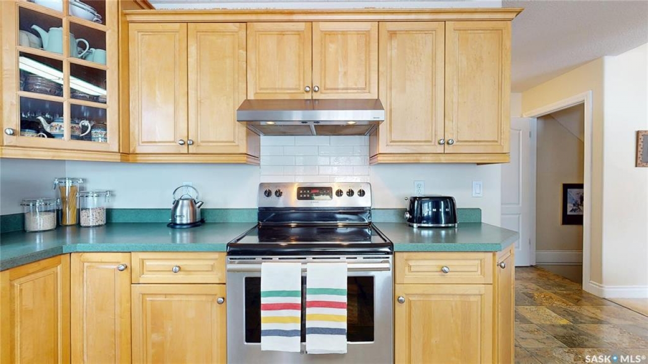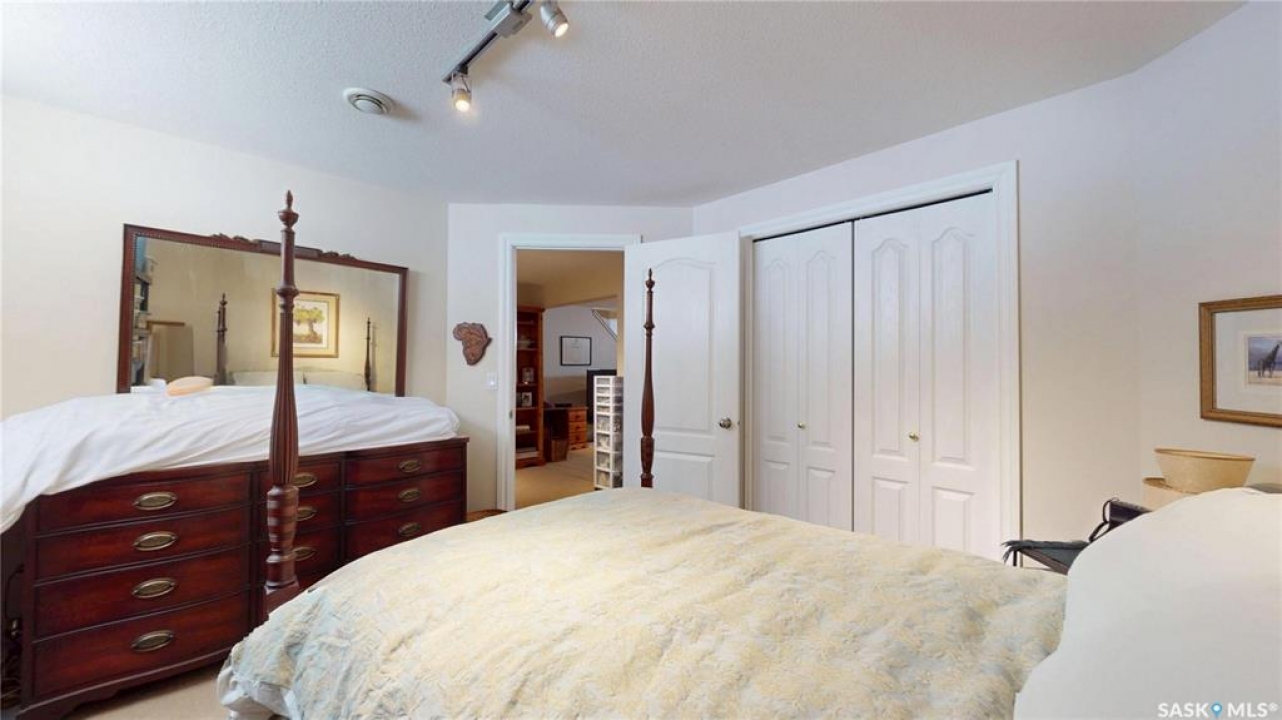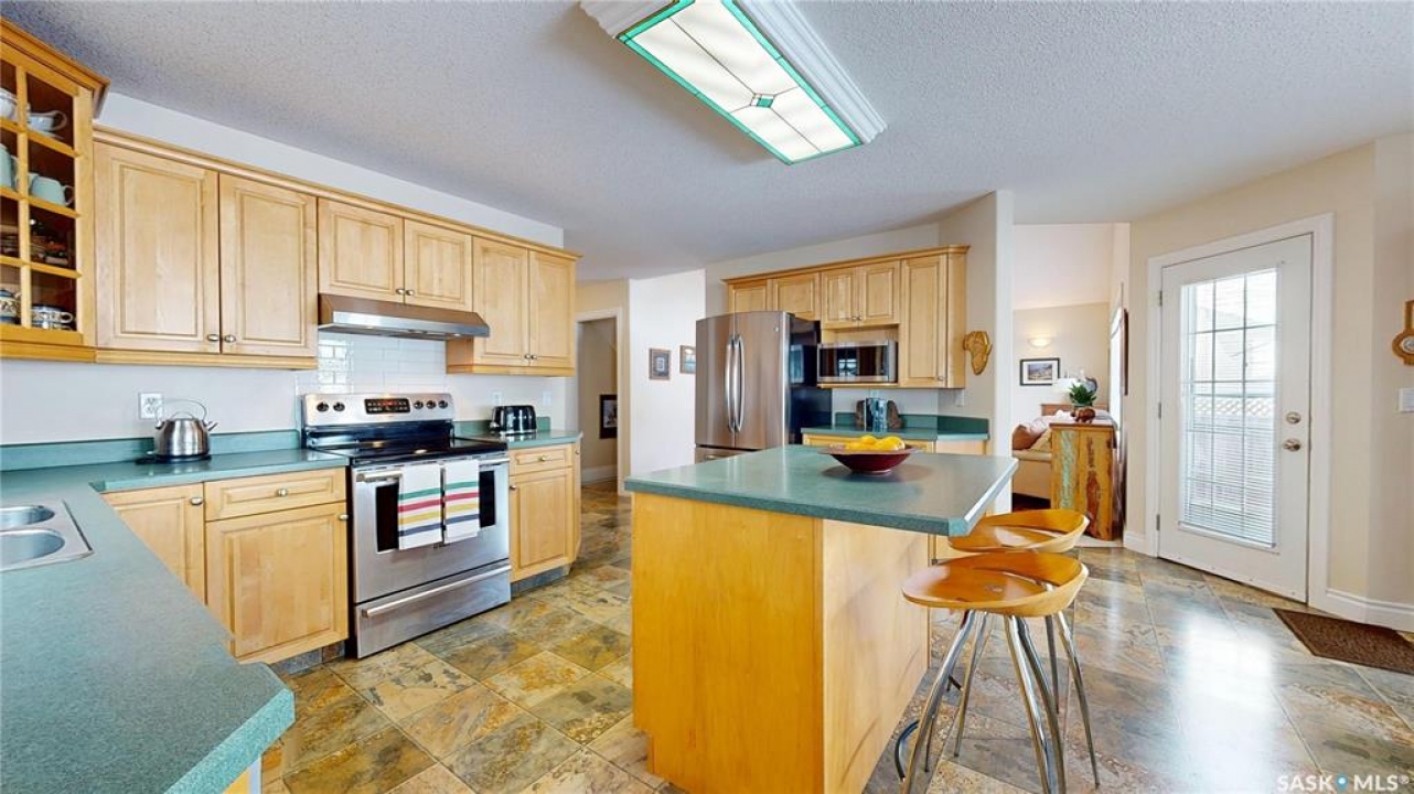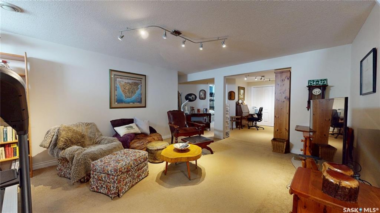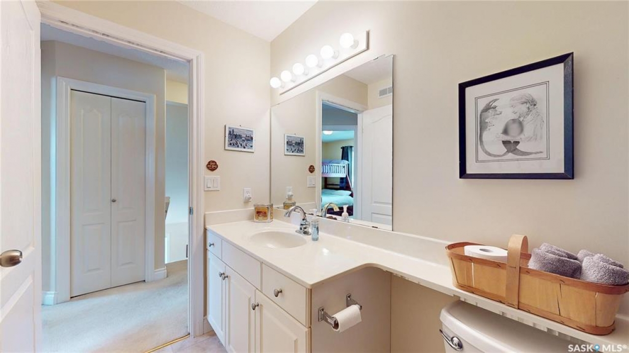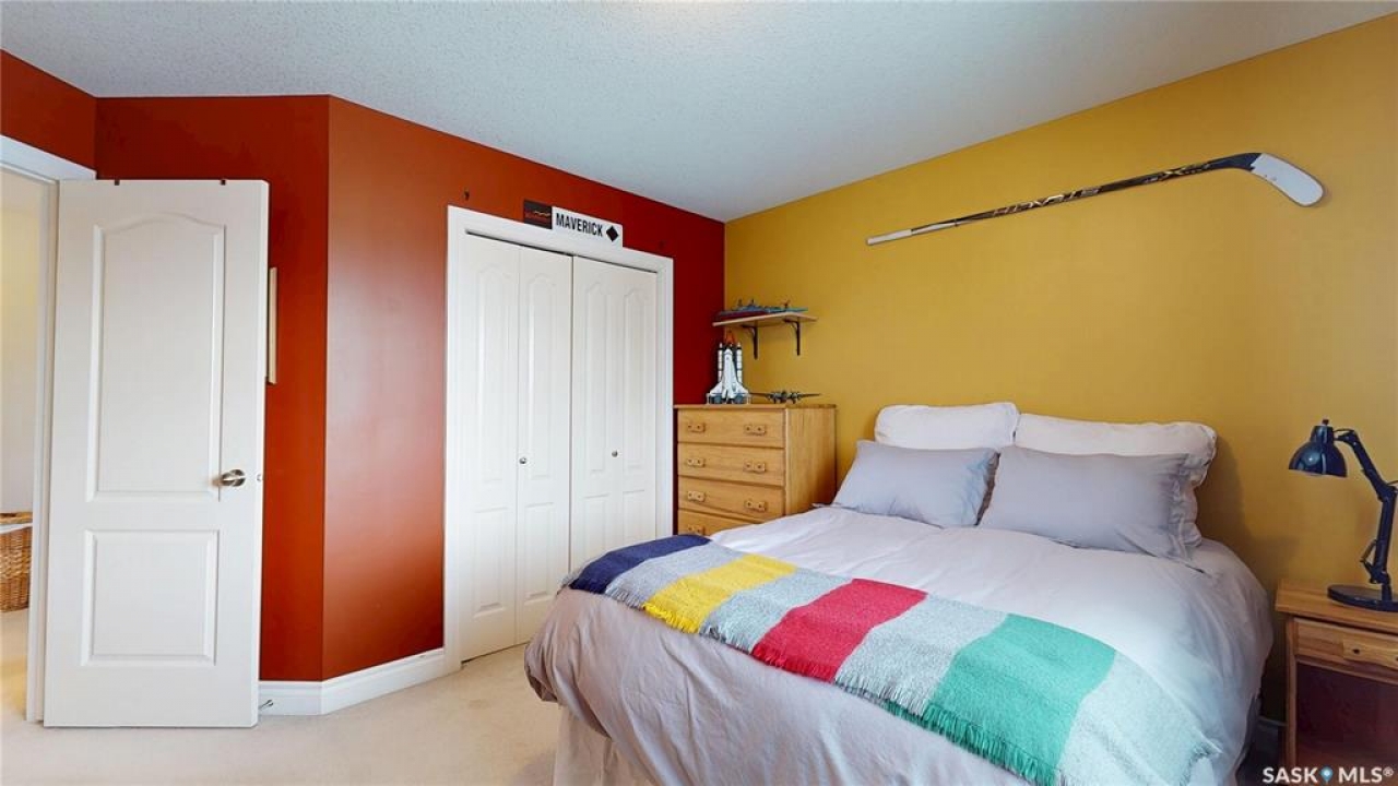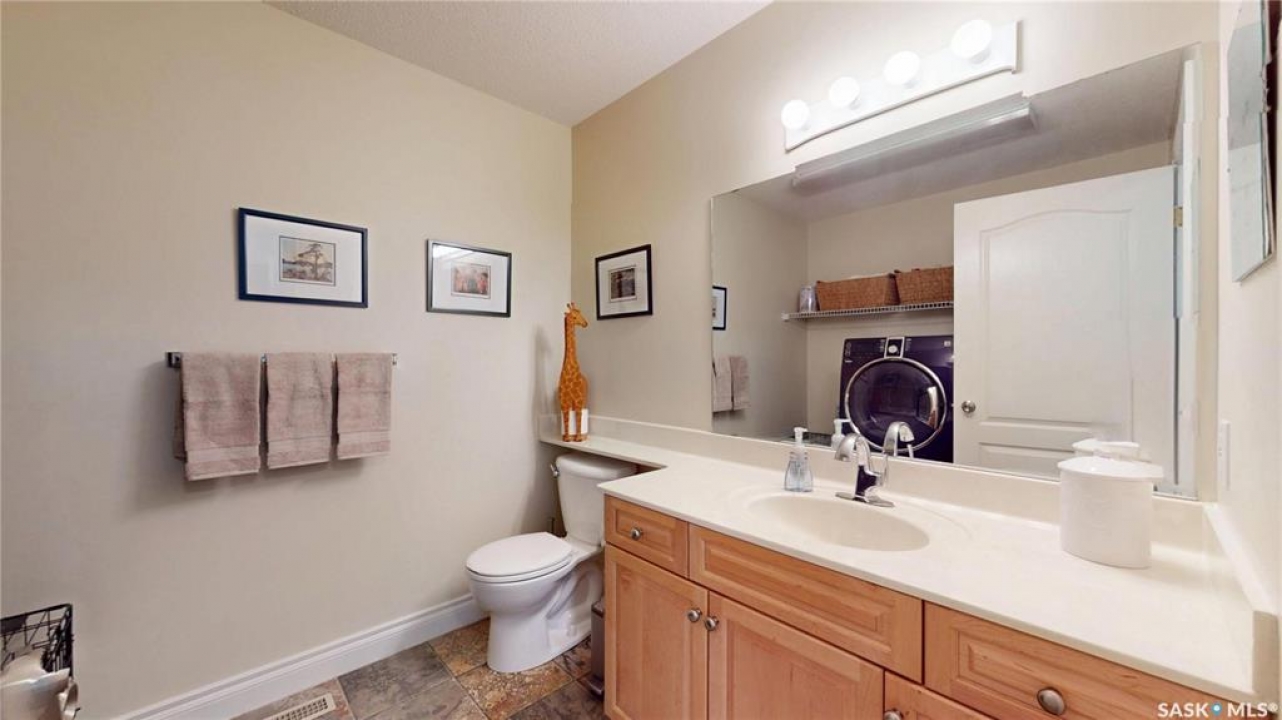 Welcome home to this beautifully maintained 1,739 sq. ft. two-storey split in the highly sought-after neighbourhood of Wascana View. Ideally located and thoughtfully designed, this home offers spacious living areas and a stunning backyard retreat. Step inside to a grand living room highlighted by soaring two-storey vaulted ceilings, large windows overlooking the yard, and a cozy gas fireplace creating a bright, inviting space perfect for both relaxing and entertaining. The kitchen features warm maple cabinetry, an island, ample counter space, and updated appliances. It flows seamlessly into the dining area, where a charming bay window and direct access to the backyard make everyday meals and gatherings effortless. The half bath and laundry complete the main floor. Upstairs, you'll find three generously sized bedrooms and two full bathrooms. The spacious primary suite features a walk-in closet and a private en-suite with a separate shower and jetted tub. The lower level adds valuable living space with a large family room, the fourth bedroom, abundant storage, and a room already roughed in for a future full bathroom, providing flexibility for growing families or guests. Outside, the beautifully landscaped backyard is truly a standout feature. Mature trees, shrubs, flowers, a garden area, a fire pit, and a deck combine to create a private outdoor oasis perfect for relaxing or entertaining. Completing the home is an oversized 24x24 double attached garage, fully insulated for year-round comfort. Lovingly cared for over the years, including a new roof installed in 2018. This is a wonderful home, ready for its next proud owners!