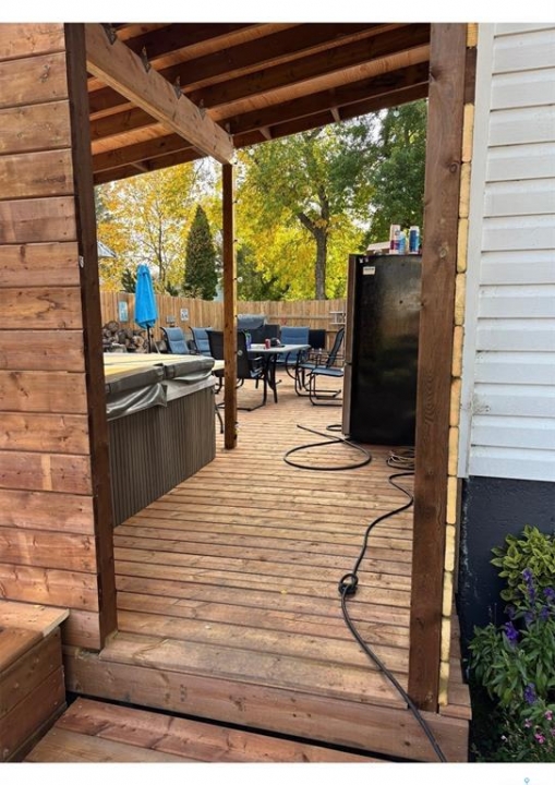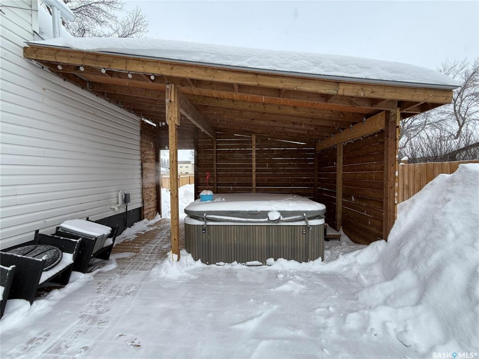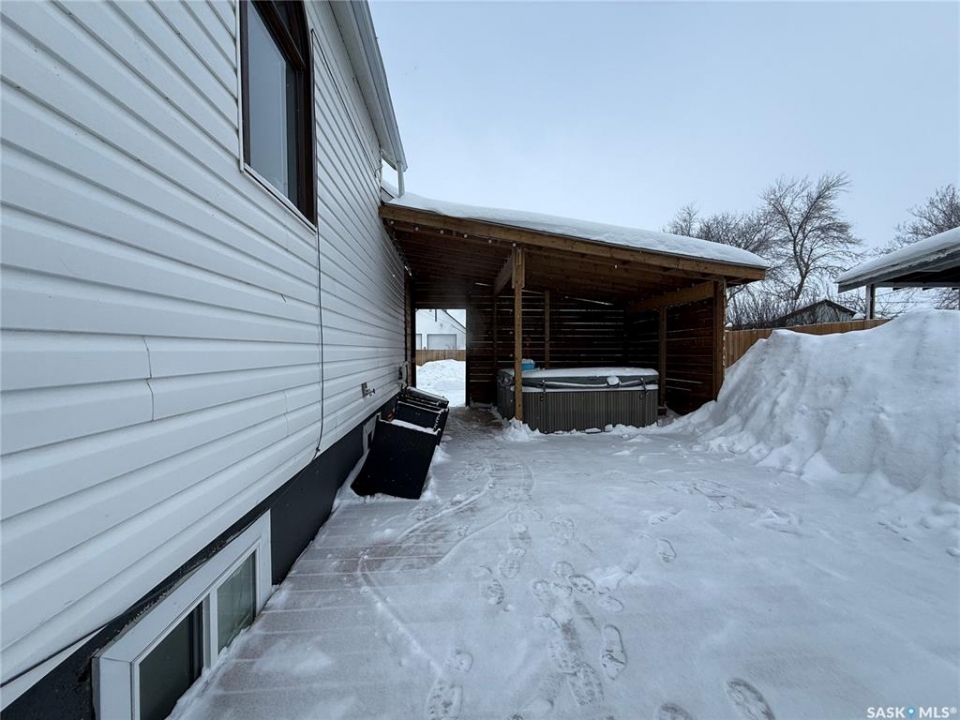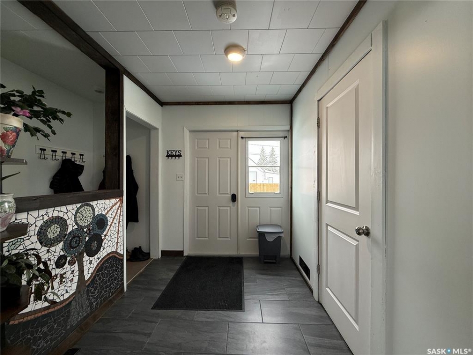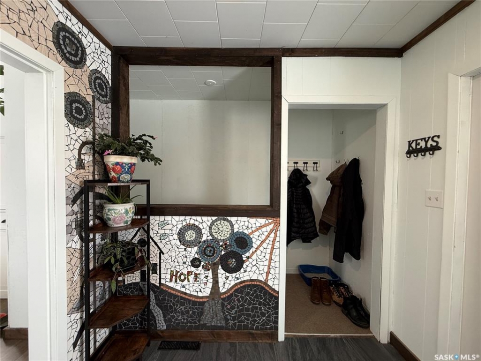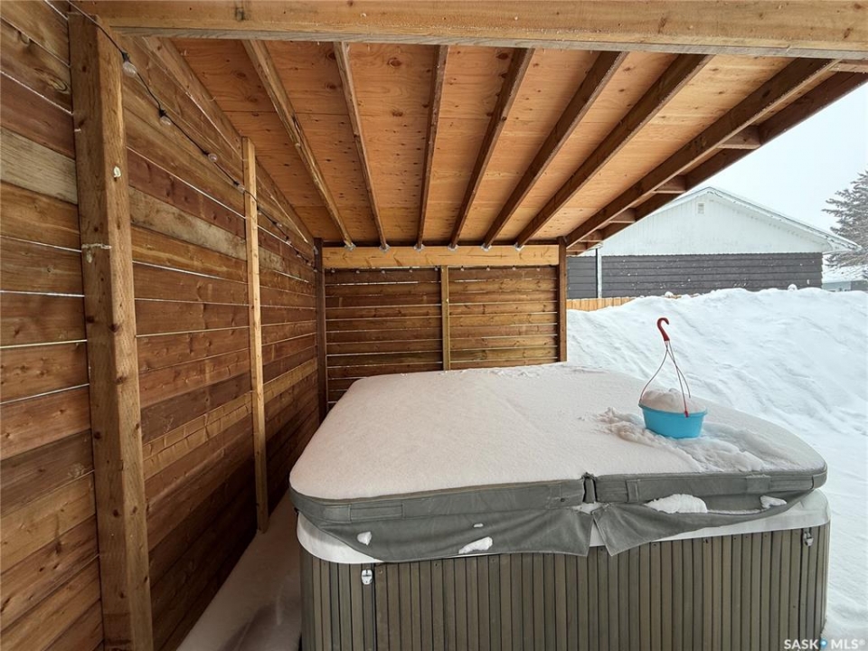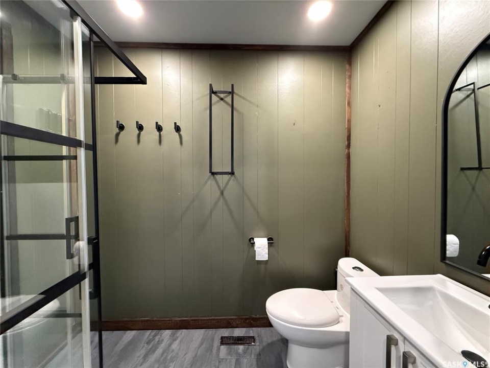 Welcome to this truly unique, one-of-a-kind home in the charming town of Watson—formerly a church and now beautifully transformed into a distinctive residential property full of character and warmth. From the moment you step inside, you'll be impressed by the stunning architectural details, including soaring ceilings and breathtaking stained-glass windows that fill the space with natural light. The welcoming foyer opens into a spacious, open-concept main floor, creating an airy, inviting atmosphere. Just off the foyer is a beautifully finished 3-piece bathroom. The gorgeous kitchen features a central island, ample cabinetry, and stylish vinyl plank flooring that flows seamlessly throughout the main living areas. The kitchen opens to the bright living room, where the impressive stained-glass windows continue to showcase the home's historic charm. Up a step, you'll find the private primary bedroom, highlighted by a beautiful barn door that adds both character and functionality. The lower level offers additional living space with a large open family room, a 3-piece bathroom combined with a laundry area, and a separate storage/utility room. There is also a convenient exterior porch entrance providing direct access to the basement. Outside, the property continues to impress with a fully fenced yard offering privacy and space to enjoy. Relax or entertain on the large deck featuring a built-in hot tub area. There is also a designated garden space along with plenty of green space for outdoor activities. This exceptional property blends historic charm with modern updates—an incredible opportunity to own a truly special home in Watson. All appliances included and immediate possession available. Move right in and enjoy!