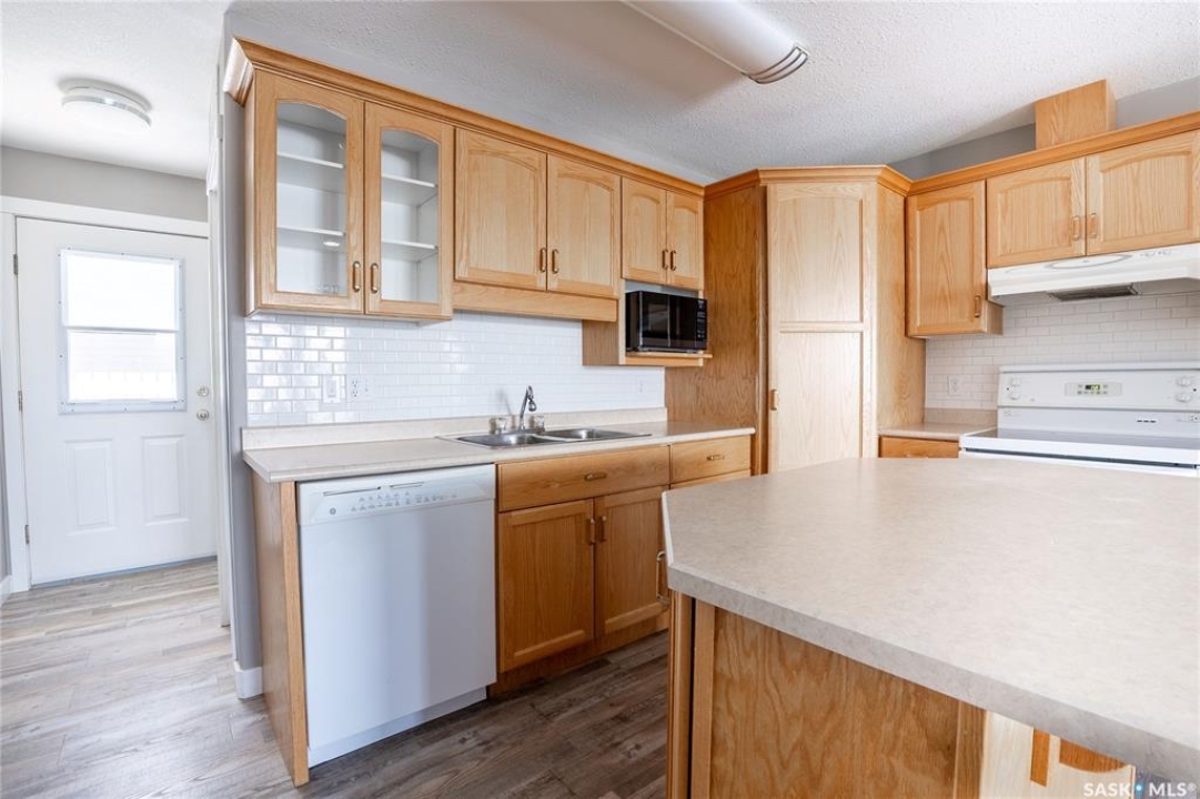 A rare and desirable opportunity, 210 4th Street offers exceptional convenience, independence, and accessibility in a quiet Hague location. Built on a solid concrete slab, this thoughtfully designed home features in-floor heating throughout both the house and attached garage, ensuring year-round comfort. Accessibility is seamless, with zero steps, a wheelchair ramp inside the garage, and direct access to your private backyard patio. Constructed in 2002, the contemporary open-concept floor plan provides a spacious and welcoming environment, perfect for both everyday living and entertaining. The custom kitchen is well-appointed with custom oak cabinetry and a built-in dishwasher. Both bedrooms feature large west-facing windows that fill the rooms with natural light, along with excellent storage options. Step outside to enjoy the fully fenced, west-facing backyard—your own private green space complete with a storage shed and patio area. Low monthly condo fees simplify your lifestyle by covering snow removal, lawn care, exterior maintenance, and common insurance. This is a unique, low-maintenance property rarely available in the welcoming community of Hague. Call today to arrange your private viewing.