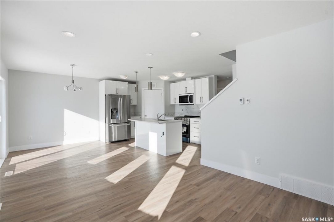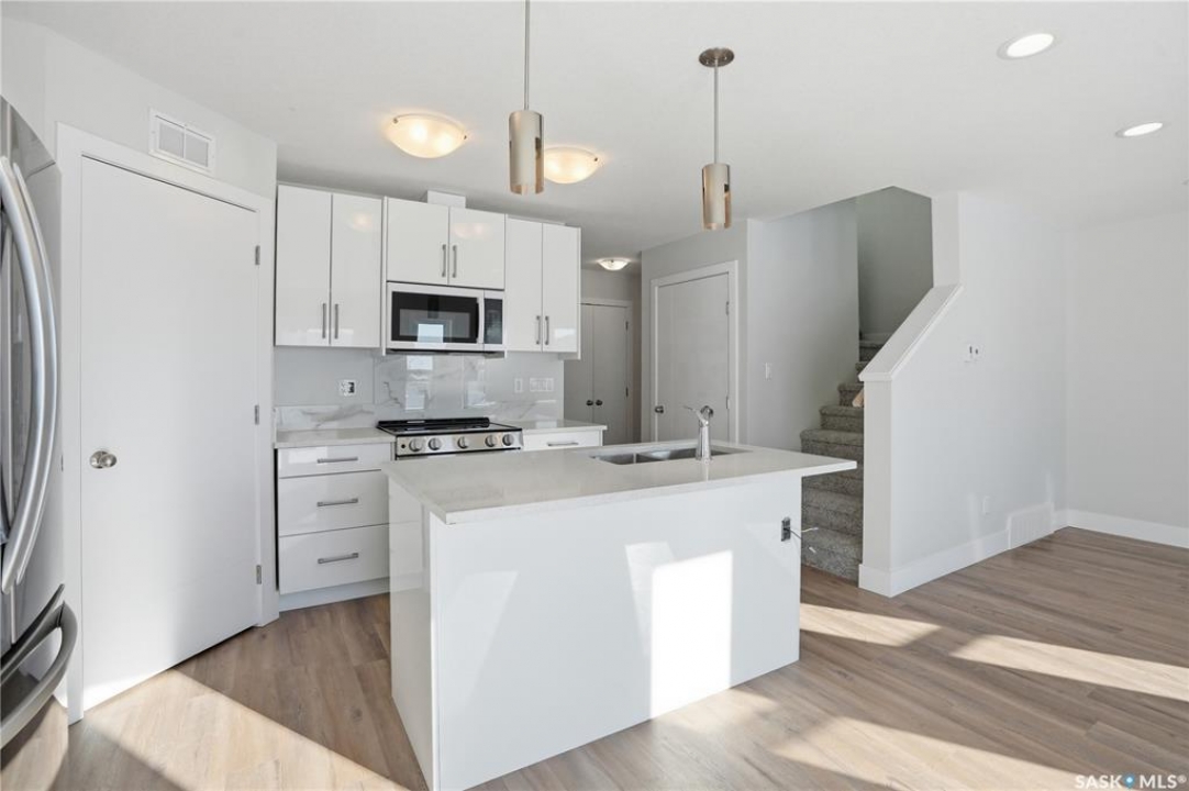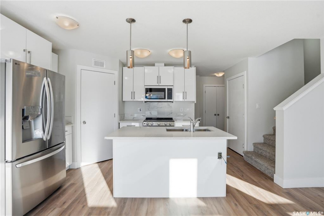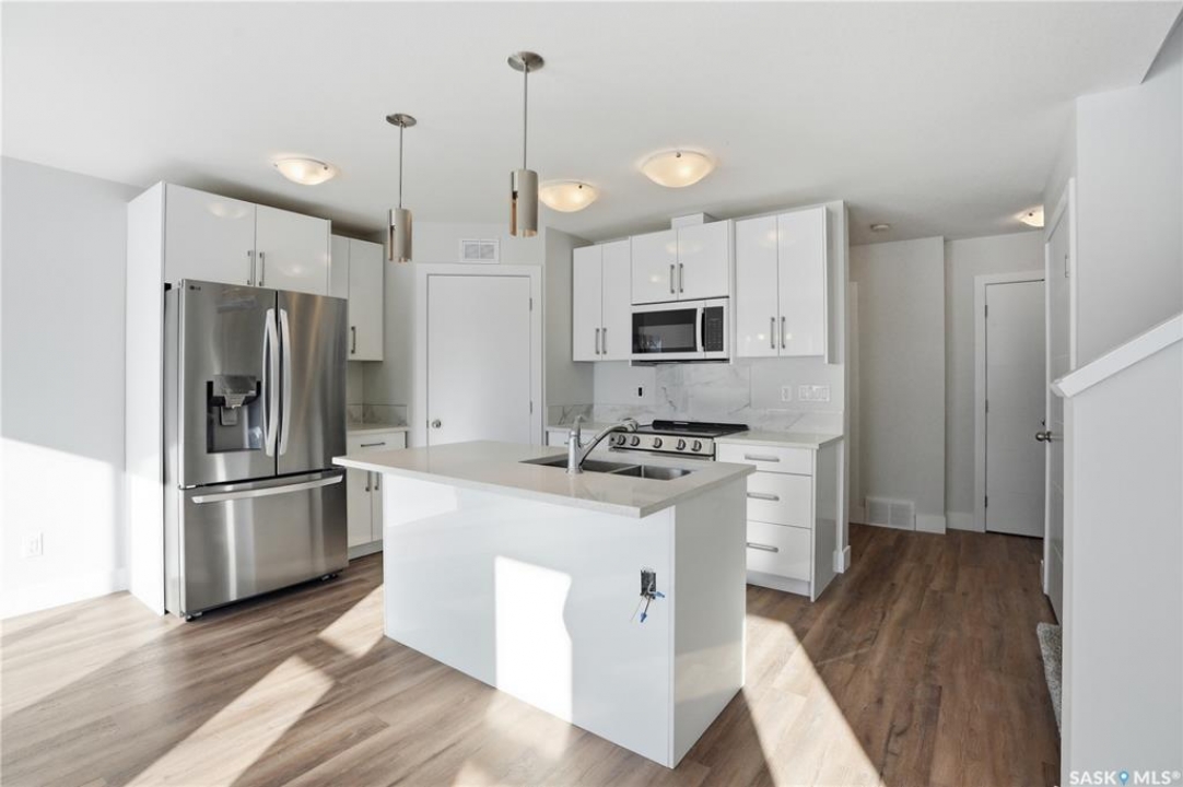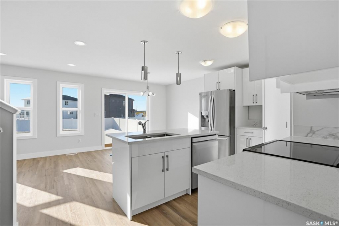 111 Stromberg Crescent – Kensington, Saskatoon Opportunity is knocking. Price is based on Buyer's approval of SSI Rebate Program assigned back to the Seller. Fully Developed with One Bedroom Legal Basement Suite, 1500 sq. ft. 2-storey with a double attached 22x22 insulated heated garage (9 ft high 16 wide garage door in Saskatoon's thriving Kensington community. The main floor is bright, open, and perfect for both family life and entertaining. The kitchen connects to a walk-through pantry and mudroom — which basically means you'll never have to juggle groceries through the front door again. Upstairs bonus room, three bedrooms, and to 4pc bathrooms, including a spacious primary suite where you can finally escape from the chaos of everyday life (or at least try). Other perks? A finished concrete driveway, modern curb appeal, and a separate entry into a fully developed 1BDR suite. Great mortgage helper, Tucked into one of Saskatoon's fastest-growing neighborhood's, you'll be close to schools, parks, and amenities.Nice layout, Great location. Fully Vinyl Fenced back yard. To View come by OPEN HOUSE SUN 1-3pm