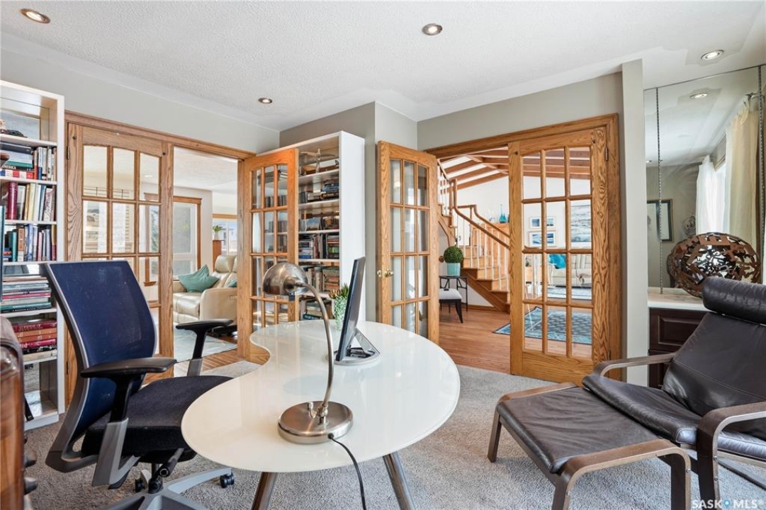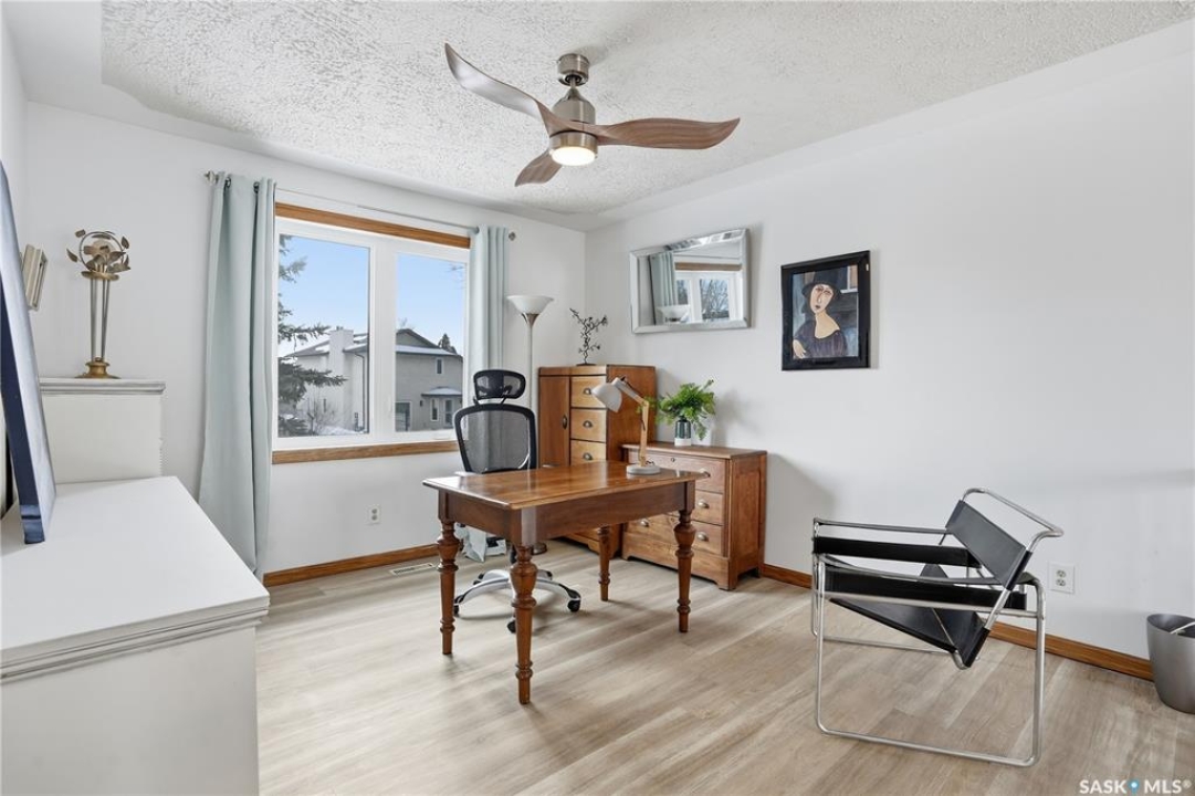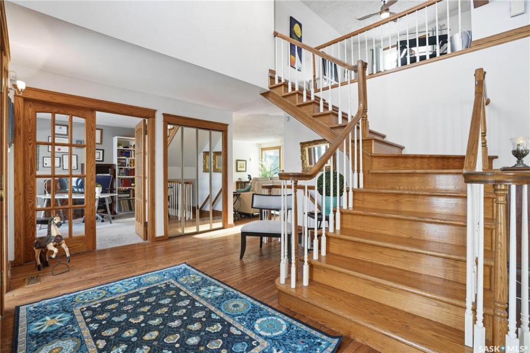Welcome to this extensively remodeled 3-bedroom, 2-office, 3-bath home on almost a � acre lot in University Park East. Located on a quiet cul-de-sac, this home combines modern luxury and functionality, offering plenty of space for the whole family. Upon entry, a grand foyer and hardwood floors welcome you. Natural light fills the formal dining room, kitchen, and family areas. The living room features vaulted beam ceilings, seamlessly connecting to the dining area—ideal for large gatherings. The remodeled kitchen boasts pull-out cabinetry, large island, gas cooktop, appliance garage, and more. Enjoy your morning coffee in the nook while taking in the views of the beautiful backyard. Patio doors lead to a deck, perfect for relaxing. The backyard oasis is fully landscaped with perennials, a rock garden, and a gazebo area—ideal for entertaining or unwinding. The second living room, with a gas fireplace, is perfect for cozy winter nights, while the private home office has front yard views, great for remote work. The main floor also includes a laundry room with sink, a 2-piece bath, and direct access to the double garage. Upstairs, the grand staircase leads to an open loftt area that could be converted into a 4th bedroom. Two generously-sized bedrooms and an updated 4-piece bath complete the upper floor. The primary suite features a private deck, custom closets, and a 4-piece ensuite with dual sinks and heated floors. The basement is ready for development, and potential for additional living space or bedrooms. Numerous updates include: Triple-pane windows (2022), Shingles & garage door (2021), a/c on 2nd floor (2026), and more! Don't miss out—contact your agent today for a private showing.