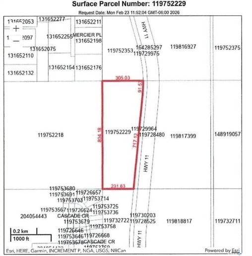 Just 21 km South of Saskatoon on #11 divided highway. 2 parcels including 53.8 acres on west side with restricted access and 82.5 ares with road allowance access off North Grid. West property has some bush. The larger parcel on the East is open and full usable. Good exposure to hight traffic highway. GST payable at Buyer's expense.