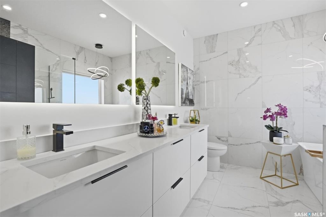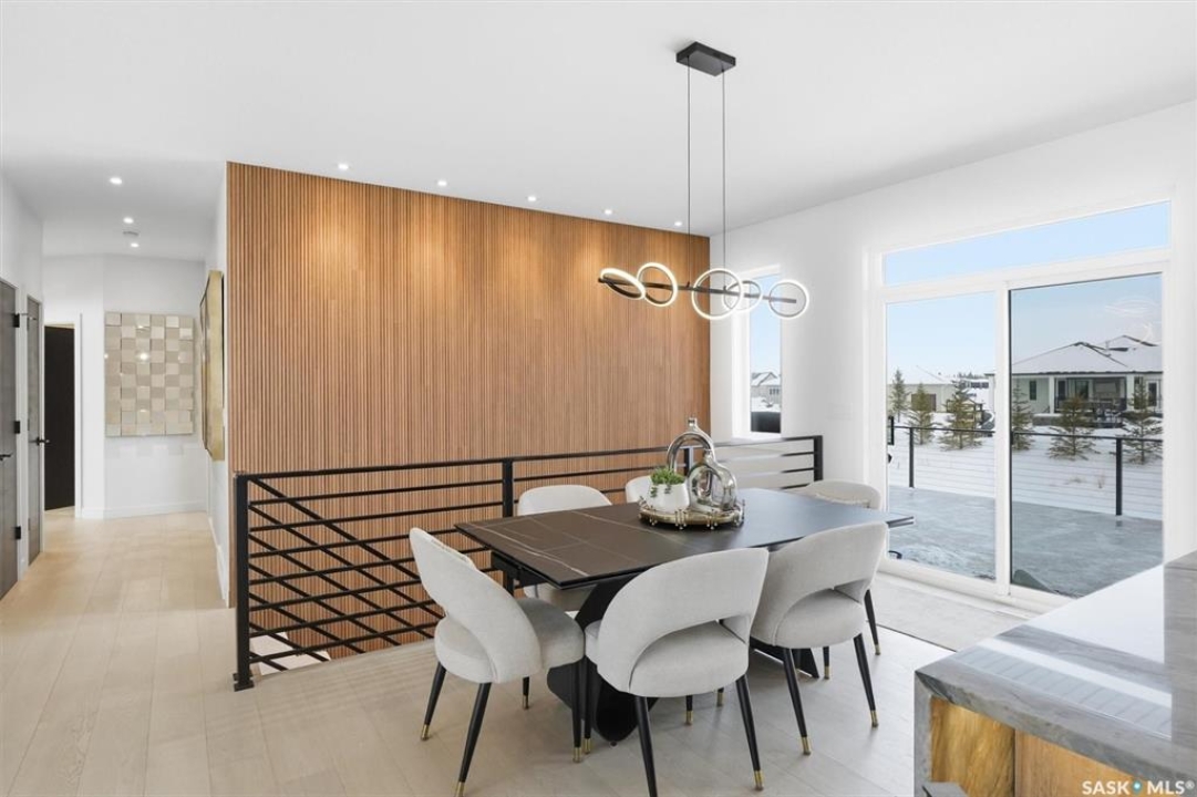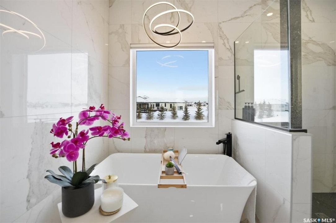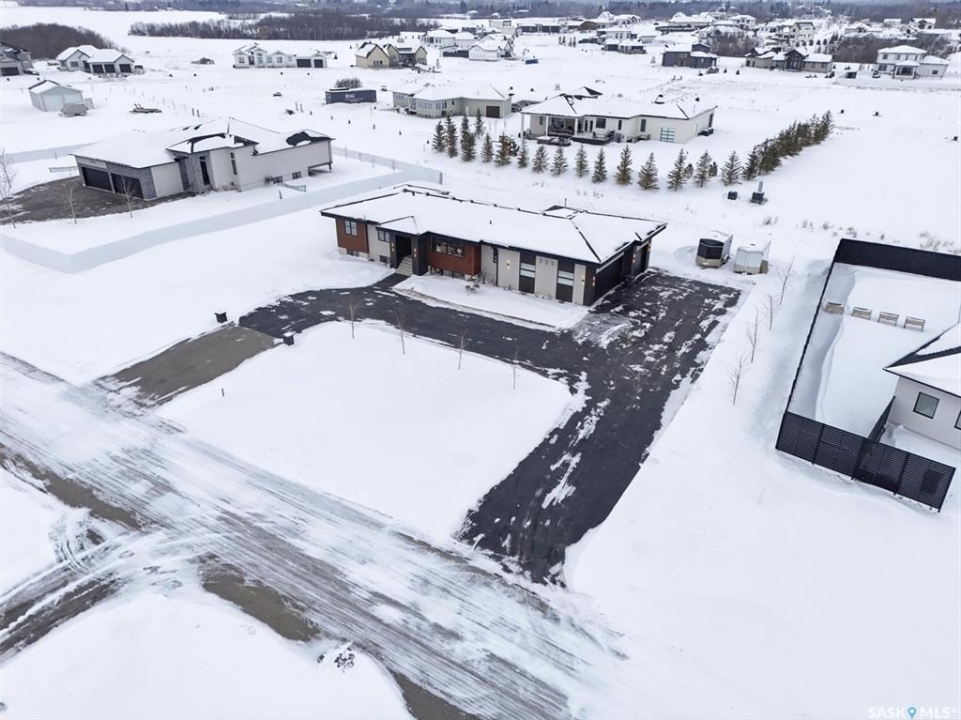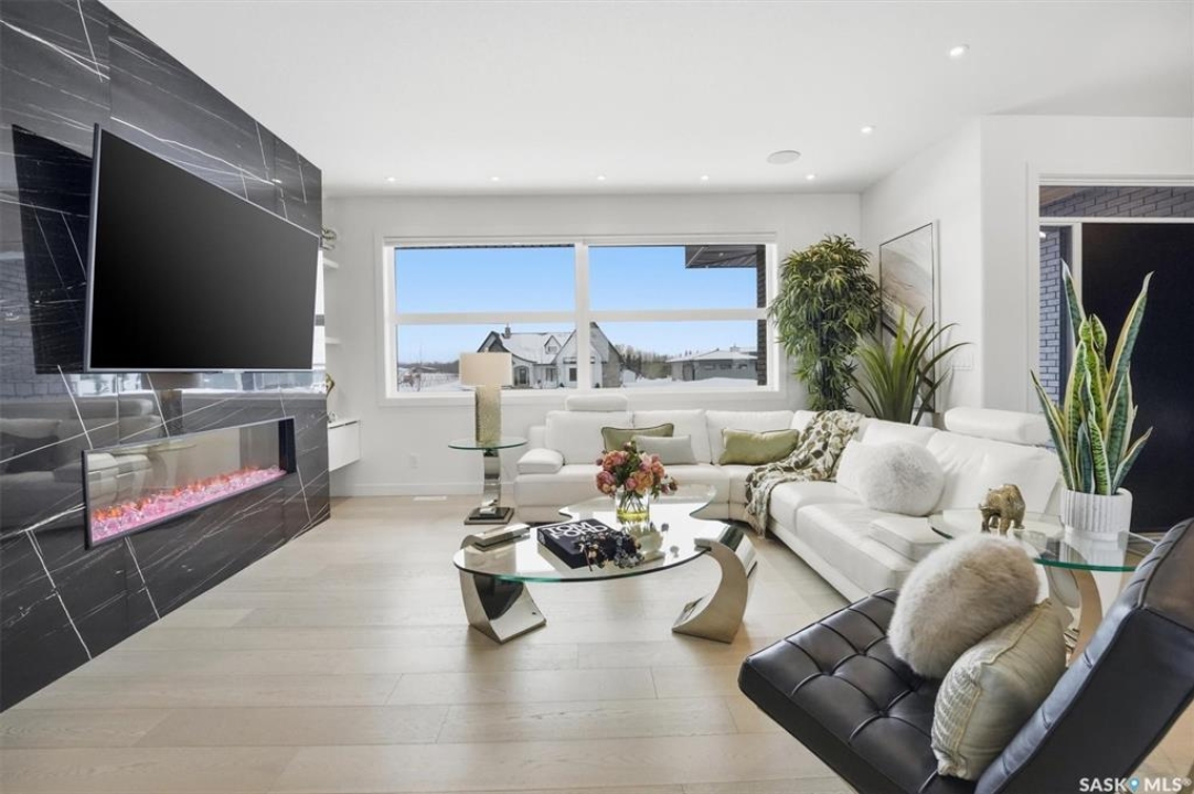 An extraordinary custom-built estate set on a 30,056 sq. ft. lot in prestigious Edgemont Park Estates, this residence showcases exceptional craftsmanship, thoughtful design, and refined modern luxury. Striking curb appeal and meticulously landscaped grounds create an unforgettable first impression. Inside, engineered hardwood floors flow through the main living areas, complemented by premium high-pile carpeting and a professionally curated colour palette that brings warmth and cohesion throughout. Designed for both elevated everyday living and seamless entertaining, the expansive entertainment deck captures sweeping prairie views and stunning Saskatchewan sunrises and sunsets. The chef-inspired kitchen features high-end granite countertops, quality cabinetry, and generous prep space, opening naturally to the dining and living areas. Large windows throughout the home invite natural light and frame the surrounding landscape, enhancing the sense of space and connection to the outdoors. Spa-inspired bathrooms with heated floors provide comfort and relaxation, while five spacious bedrooms offer flexibility for family, guests, or home office needs. Smart-home integration includes a Control4 automation system, multi-camera security, Siemens whole-home surge protection, and radon mitigation for added peace of mind. An auxiliary laundry service in the mechanical room, Rainbird irrigation controller, and high-performance HVAC system enhance efficiency and convenience. The impressive 36' x 28' triple heated garage with 13'6” ceilings accommodates vehicle lifts, hobby space, or premium storage. Offering privacy, scale, and enduring quality in one of the area's most sought-after communities, this is a rare opportunity in Edgemont Park Estates.
