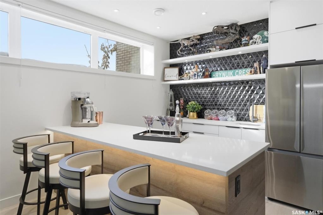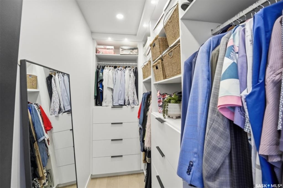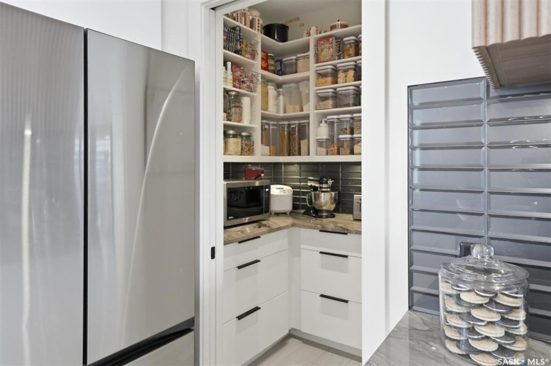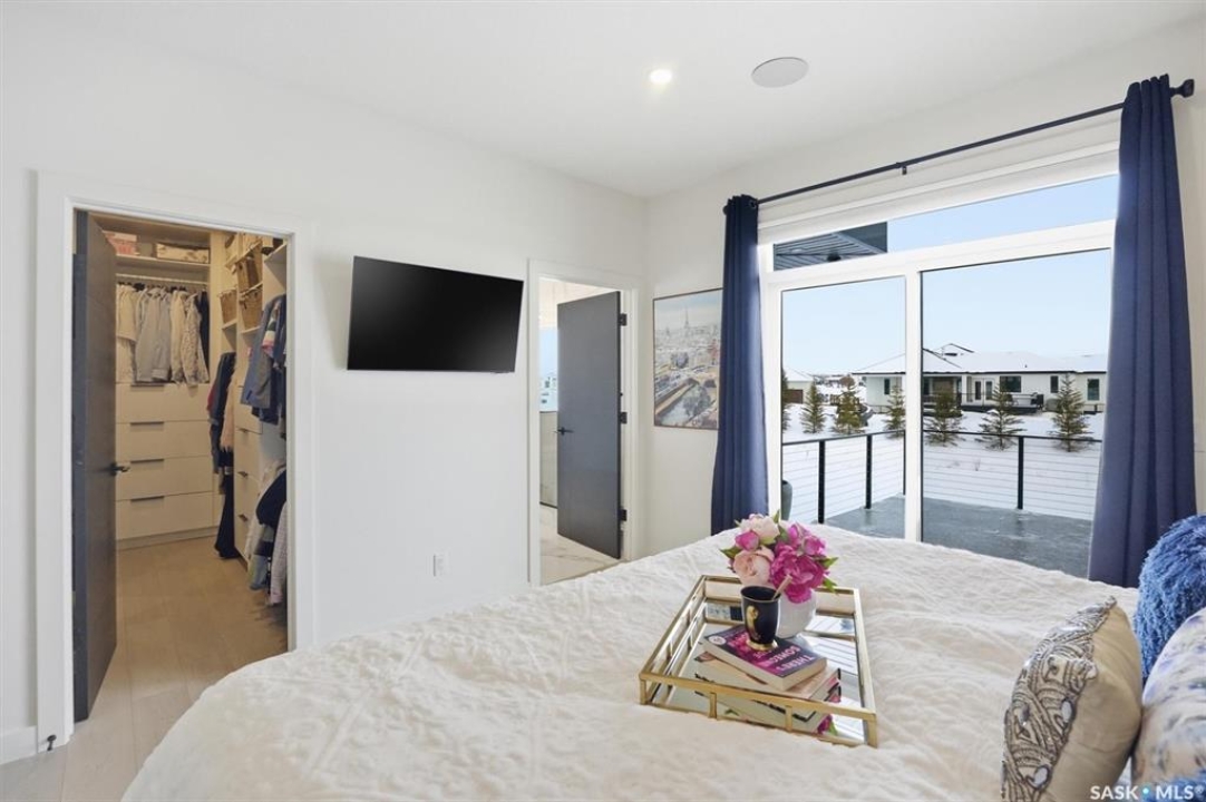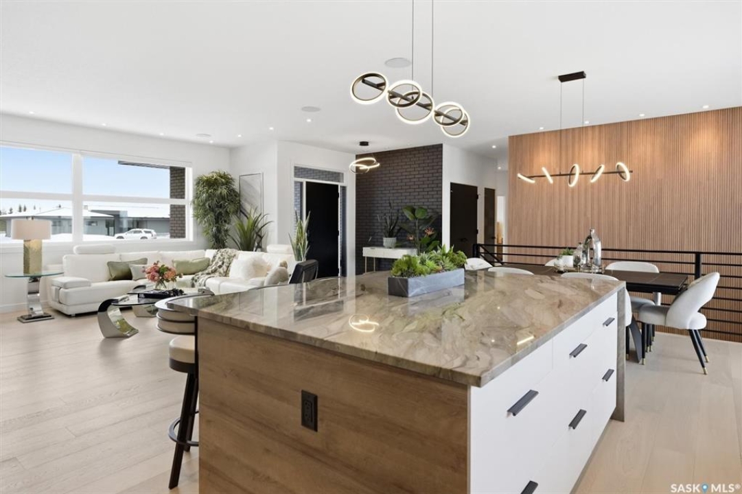 An extraordinary custom-built estate set on a 30,056 sq. ft. lot in prestigious Edgemont Park Estates, this residence showcases exceptional craftsmanship, thoughtful design, and refined modern luxury. Striking curb appeal and meticulously landscaped grounds create an unforgettable first impression. Inside, engineered hardwood floors flow through the main living areas, complemented by premium high-pile carpeting and a professionally curated colour palette that brings warmth and cohesion throughout. Designed for both elevated everyday living and seamless entertaining, the expansive entertainment deck captures sweeping prairie views and stunning Saskatchewan sunrises and sunsets. The chef-inspired kitchen features high-end granite countertops, quality cabinetry, and generous prep space, opening naturally to the dining and living areas. Large windows throughout the home invite natural light and frame the surrounding landscape, enhancing the sense of space and connection to the outdoors. Spa-inspired bathrooms with heated floors provide comfort and relaxation, while five spacious bedrooms offer flexibility for family, guests, or home office needs. Smart-home integration includes a Control4 automation system, multi-camera security, Siemens whole-home surge protection, and radon mitigation for added peace of mind. An auxiliary laundry service in the mechanical room, Rainbird irrigation controller, and high-performance HVAC system enhance efficiency and convenience. The impressive 36' x 28' triple heated garage with 13'6” ceilings accommodates vehicle lifts, hobby space, or premium storage. Offering privacy, scale, and enduring quality in one of the area's most sought-after communities, this is a rare opportunity in Edgemont Park Estates.