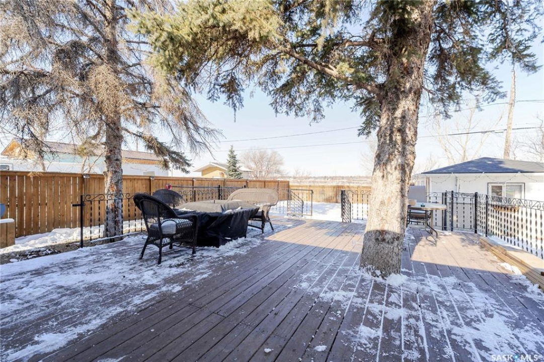Welcome to easy main-floor living in this charming 1961 bungalow. Ideally located just a few blocks from coffee shops, gas, groceries, a pharmacy, Alliance Medical Clinic, and the beautiful walking path, this home offers everyday convenience in a peaceful setting. Whether you enjoy morning walks, evening strolls with the dogs, or simply being close to amenities, this location truly delivers. Offering two bedrooms, an eat-in kitchen, and an updated 4-piece bathroom, this home is the perfect blend of comfort and simplicity. This family has grown and it's time to move on and let you begin your journey here. Perfect for first time homeowners or someone who is looking for minimal stairs. Step outside to an impressive backyard retreat. Fully fenced with new sod laid last year, the space is ideal for relaxing or entertaining. A spacious deck features two natural gas hookups—one for your BBQ and one for a firepit—making outdoor gatherings effortless. The yard backs onto green space and sits beside the well-known South Hill walking path, offering both privacy and beautiful surroundings. A single detached garage and concrete driveway provide added convenience, while the landscaped front yard features a curved driveway with space for two vehicles. A wonderful opportunity to enjoy comfort, charm, and a fantastic location all in one.