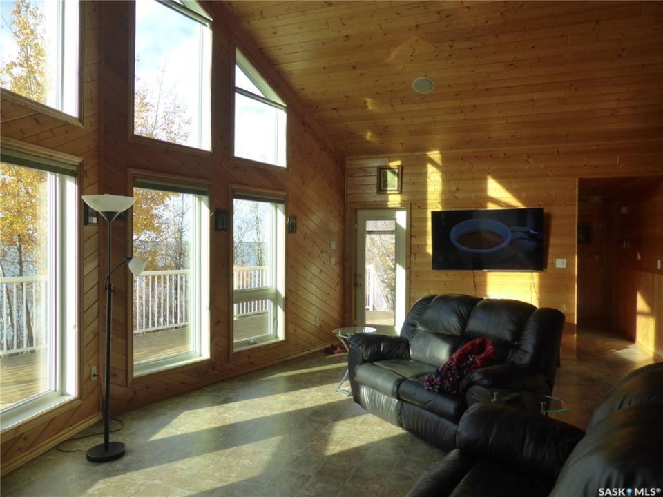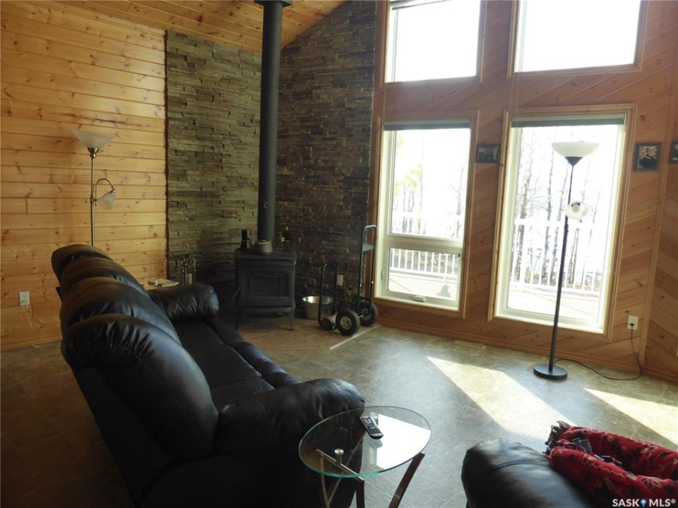 Welcome to the prestigious community of Grandview Estates on beautiful Brightsand Lake, well known for its crystal-clear water and exceptional sandy beaches. This immaculate lakefront property at 112 Grandview Lane N offers 1.37 acres of privacy and approximately 100 feet of natural shoreline with sandy, gradual entry, ideal for swimming and family enjoyment. Built in 2010, this impressive 1 �-storey home offers 1,965 sq. ft. above grade plus a fully finished basement. The main level features a spacious primary bedroom with walk-in closet and adjoining 4-piece bath, convenient laundry, and a 2-piece guest bath. The open-concept kitchen, dining and living area showcases soaring ceilings over 15 feet and a stunning wall of windows overlooking the lake. Warm pine finishes throughout create the perfect lake atmosphere. The upper level offers three generously sized bedrooms and a large 4-piece bathroom, ideal for family or guests. The fully finished basement includes a large recreation and games room, additional bedroom, 4-piece bath, sauna, and utility room with efficient geothermal heating and cooling providing central air conditioning. Outside features a 30' x 40' insulated and heated triple garage used as both garage space and a comfortable gathering area, complete with bathroom and wood stove. Enjoy evenings around the lakeside firepit while taking in the peaceful waterfront setting. Shared Dock could be negotiated. Furnishings negotiable. Property includes bored well with treatment system, 1,500-gallon concrete septic, storage sheds and wood shed. Year-round road access with services less than 30 minutes away.