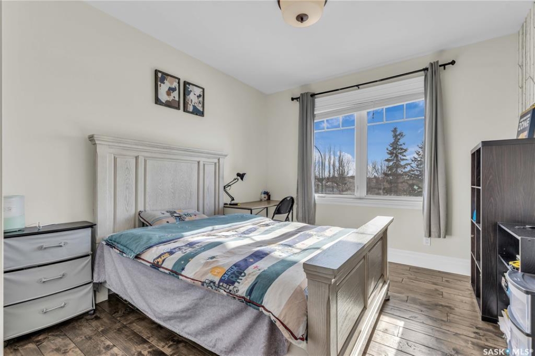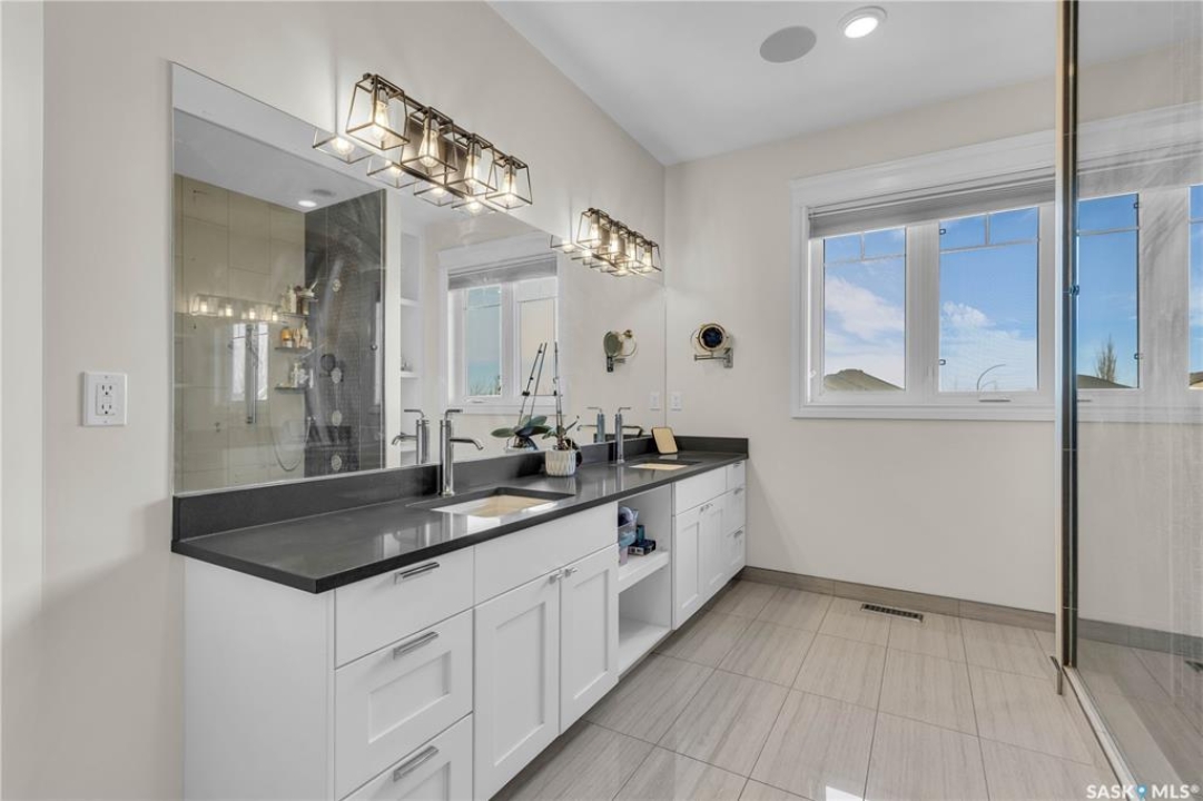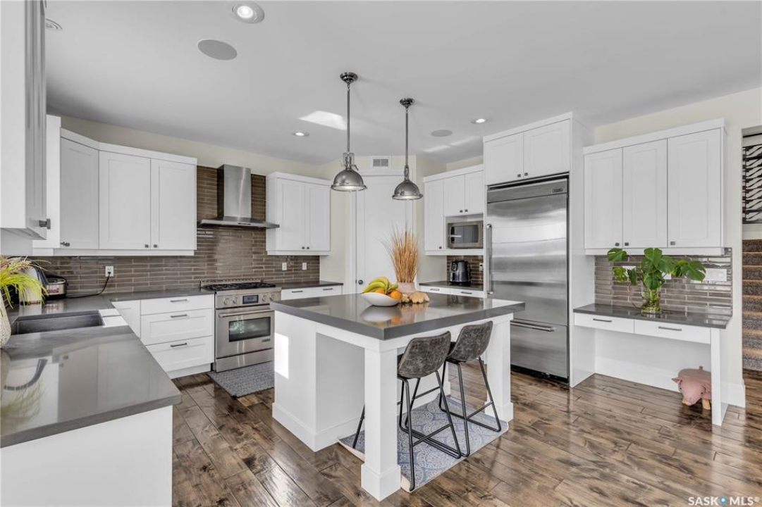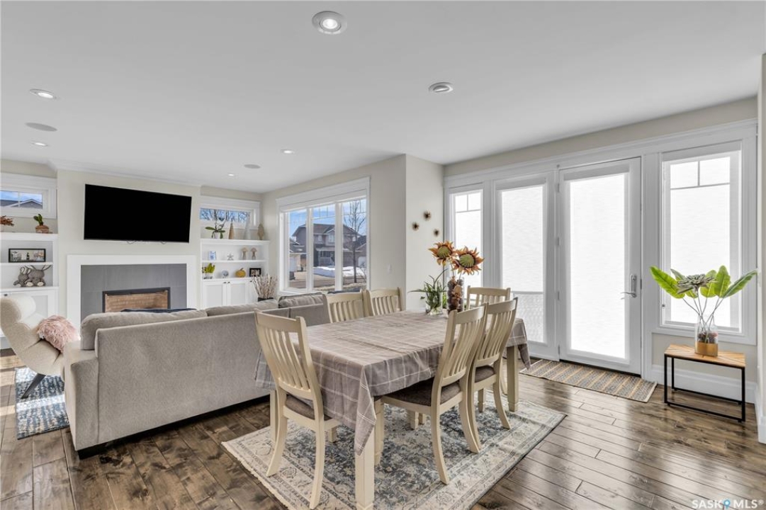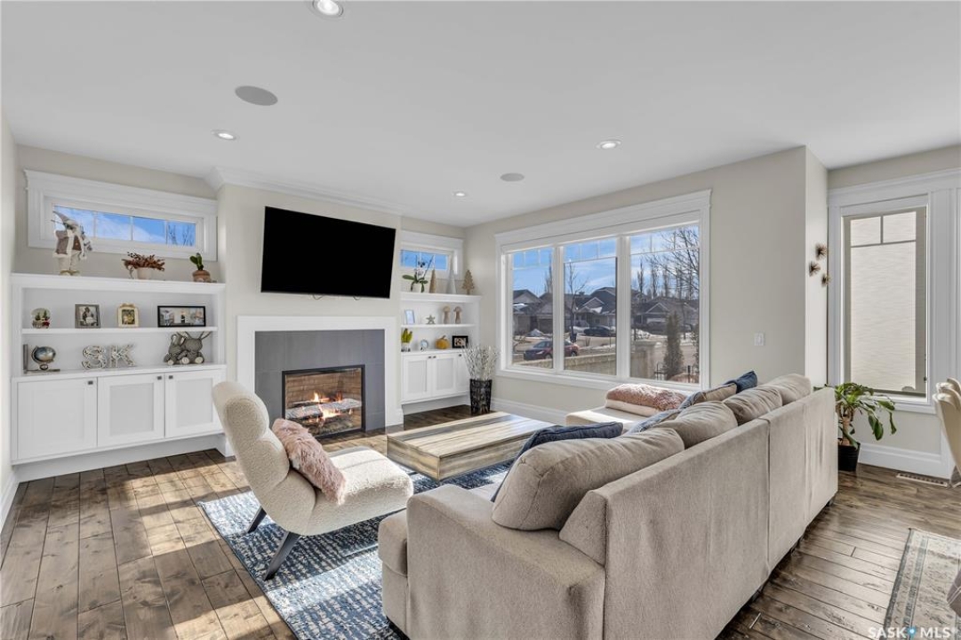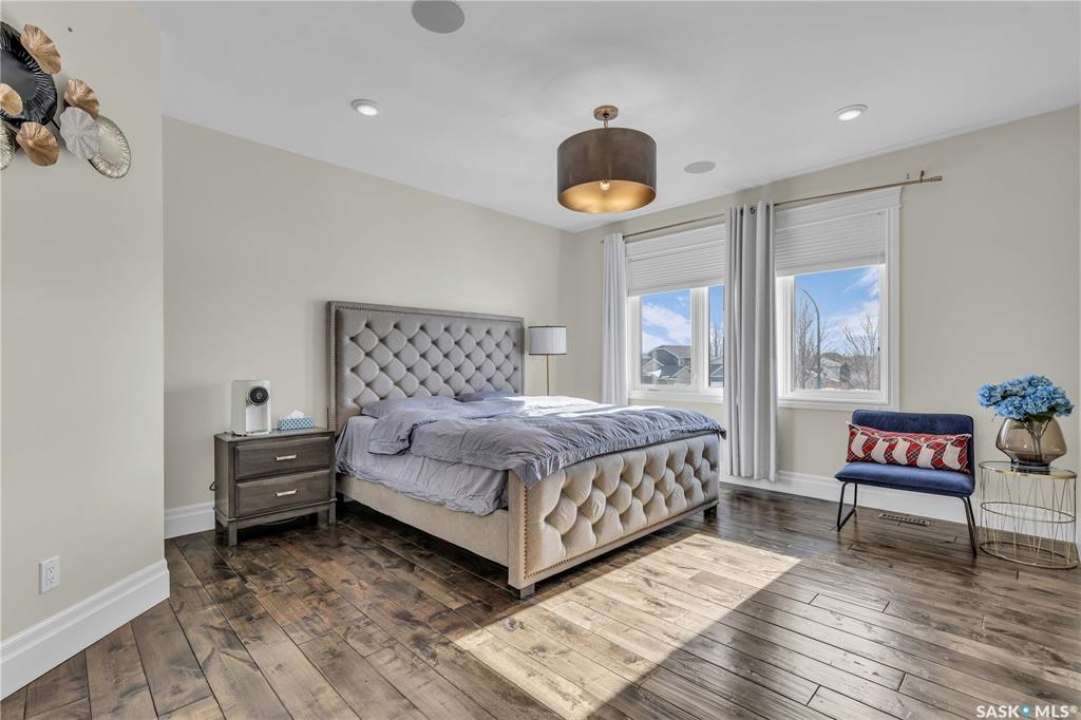 This beautifully designed 2434 sq.ft two-storey home, custom built by Valentino Homes, offers high-end finishes and timeless elegance, all backing directly onto the stunning Arbor Creek Park. Upon entry, you're welcomed by warm, refined décor that immediately feels like home. The main floor features solid 8-foot core interior doors, wide windows throughout, and an abundance of natural light that enhances the open concept living space. The bright living room boasts a natural gas fireplace surrounded by custom cabinetry, seamlessly connected to the dining area and a fresh white kitchen complete with quartz countertops, island, corner pantry, and premium JennAir appliances—perfect for both daily living and entertaining. A spacious office with French doors and large windows makes working from home a delight. The main floor also includes a powder room and a functional mudroom with access to the heated double garage (24x25 ft, 10' ceiling). Upstairs, the luxurious primary suite features a walk-in closet the size of a room and an oversized ensuite with double vanities, heated floors, a double walk-in shower, and a private water closet. Two additional large bedrooms, each with park views and hardwood floors, a full 4-piece bathroom, and a bright laundry room with a window complete the second level. The fully finished basement offers a massive family room with a projection screen and custom bar, a fourth bedroom, another full bathroom, and ample storage space. Additional highlights include 9-foot ceilings on all three floors, Restoration Hardware lighting, custom blinds, built-in audio with Control4 system, and hand-scraped hardwood floors. The south/west-facing backyard is low-maintenance and opens directly to Arbor Creek Park through a private gate—ideal for enjoying peaceful walks and stunning views. This is a truly exceptional home built with quality, comfort, and attention to detail at every turn.