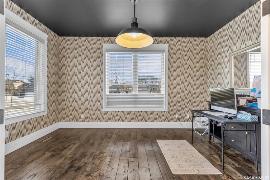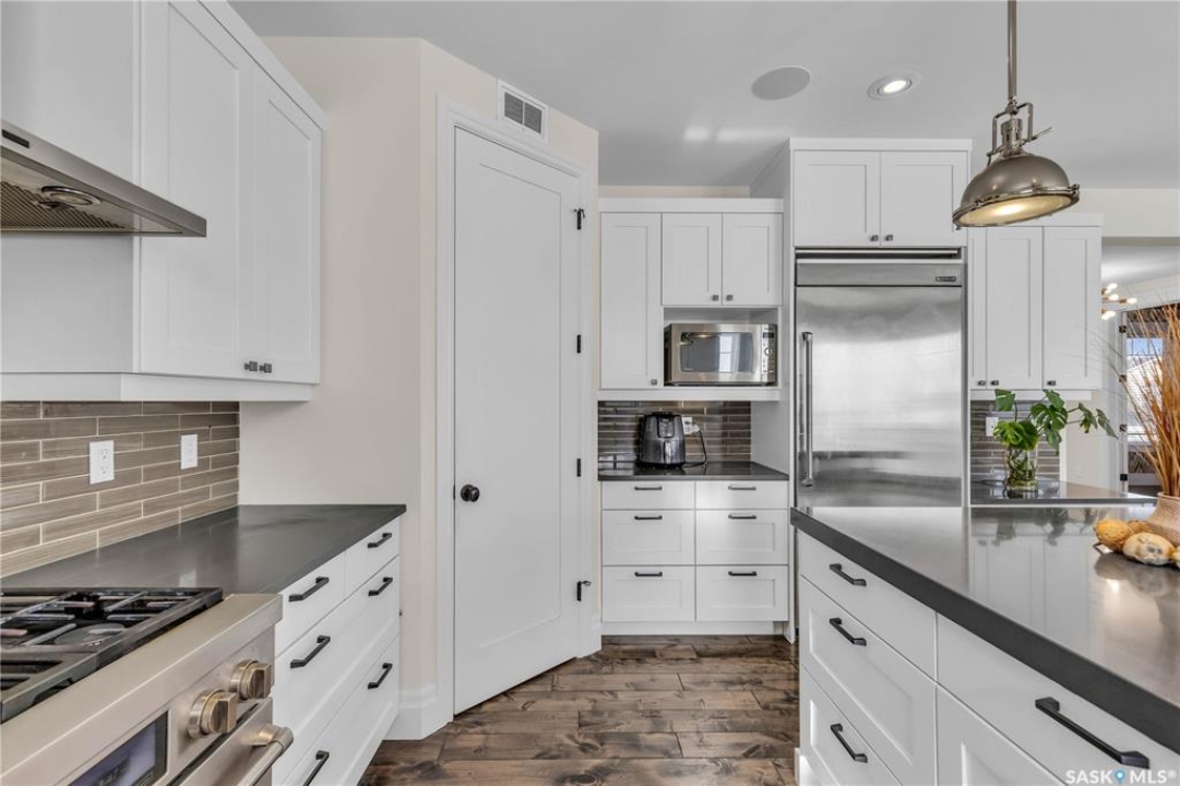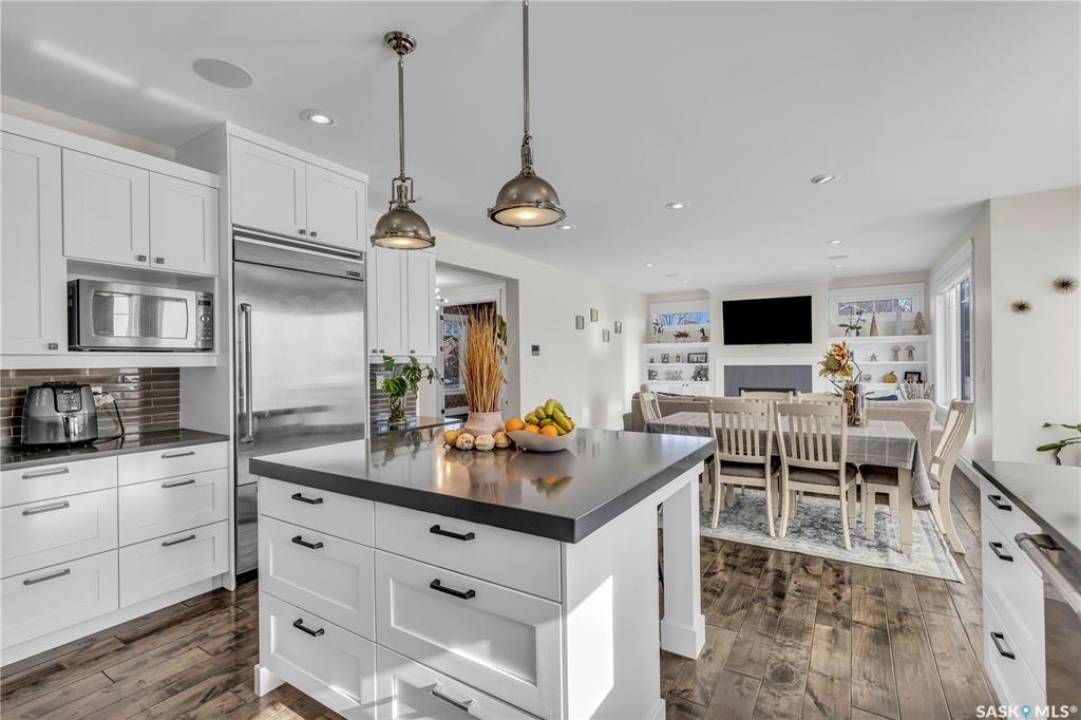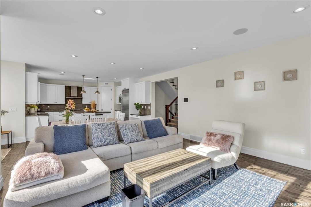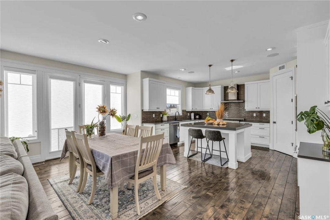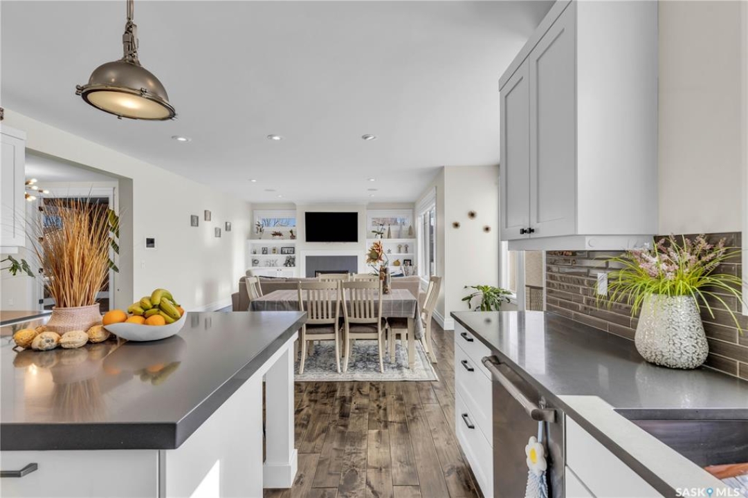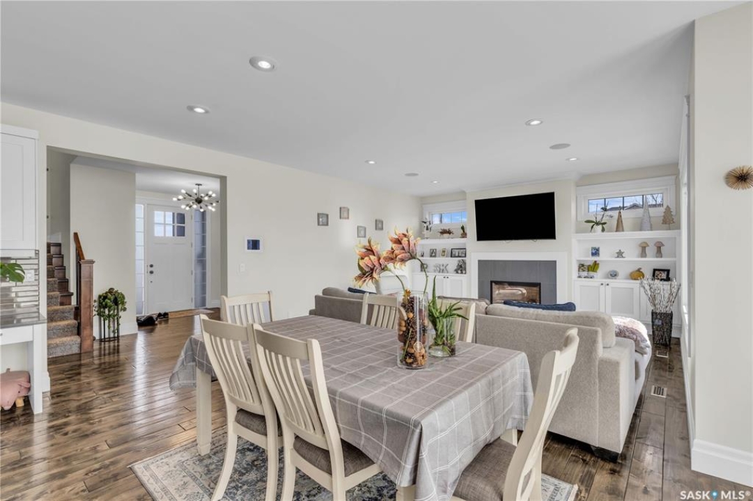 This beautifully designed 2434 sq.ft two-storey home, custom built by Valentino Homes, offers high-end finishes and timeless elegance, all backing directly onto the stunning Arbor Creek Park. Upon entry, you're welcomed by warm, refined décor that immediately feels like home. The main floor features solid 8-foot core interior doors, wide windows throughout, and an abundance of natural light that enhances the open concept living space. The bright living room boasts a natural gas fireplace surrounded by custom cabinetry, seamlessly connected to the dining area and a fresh white kitchen complete with quartz countertops, island, corner pantry, and premium JennAir appliances—perfect for both daily living and entertaining. A spacious office with French doors and large windows makes working from home a delight. The main floor also includes a powder room and a functional mudroom with access to the heated double garage (24x25 ft, 10' ceiling). Upstairs, the luxurious primary suite features a walk-in closet the size of a room and an oversized ensuite with double vanities, heated floors, a double walk-in shower, and a private water closet. Two additional large bedrooms, each with park views and hardwood floors, a full 4-piece bathroom, and a bright laundry room with a window complete the second level. The fully finished basement offers a massive family room with a projection screen and custom bar, a fourth bedroom, another full bathroom, and ample storage space. Additional highlights include 9-foot ceilings on all three floors, Restoration Hardware lighting, custom blinds, built-in audio with Control4 system, and hand-scraped hardwood floors. The south/west-facing backyard is low-maintenance and opens directly to Arbor Creek Park through a private gate—ideal for enjoying peaceful walks and stunning views. This is a truly exceptional home built with quality, comfort, and attention to detail at every turn.