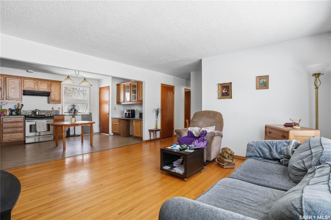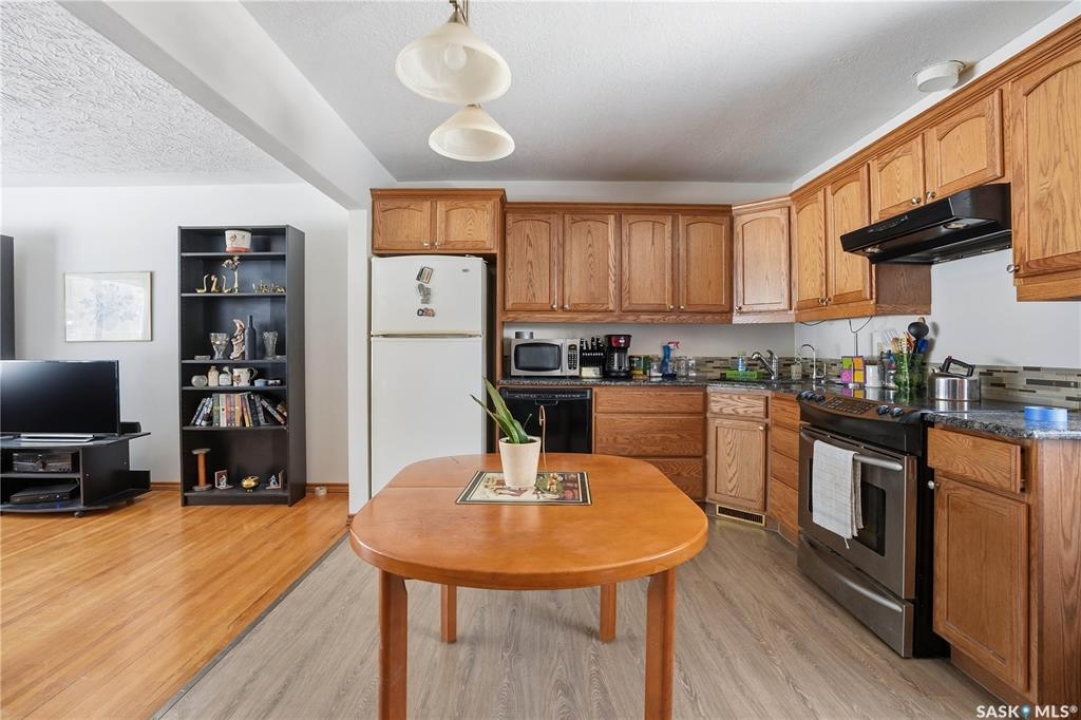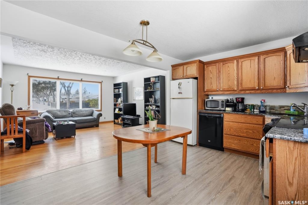 LOCATION! This amazing location on a quiet crescent looks out on green space in the sought after Douglas Park neighbourhood. Just two blocks from Douglas Park Elementary school and a short walk to Candy Cane Park, you couldn't ask for a better location to raise a young family. Offering over a 1000 sq ft this bungalow is ready for a family to come in and back it their own with their preferred colours palette. The 1960 build has original hardwood flooring, and an open concept feel in the main living room – kitchen area. The kitchen offers oak cabinetry and granite counters. There is also a matching built in china cupboard in the dining room area. The main floor bathroom has a Max tub and is spacious. The basement is ready for your development and has an entrance through the back of the house should you decide to add a rental suite or develop a private space for a University student. The single detached garage and small garden shed give you and your family plenty of storage. Call your real estate agent and see if this home is the right fit for you.