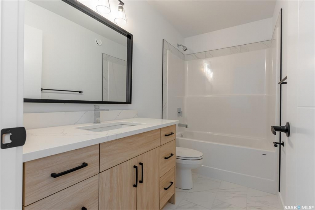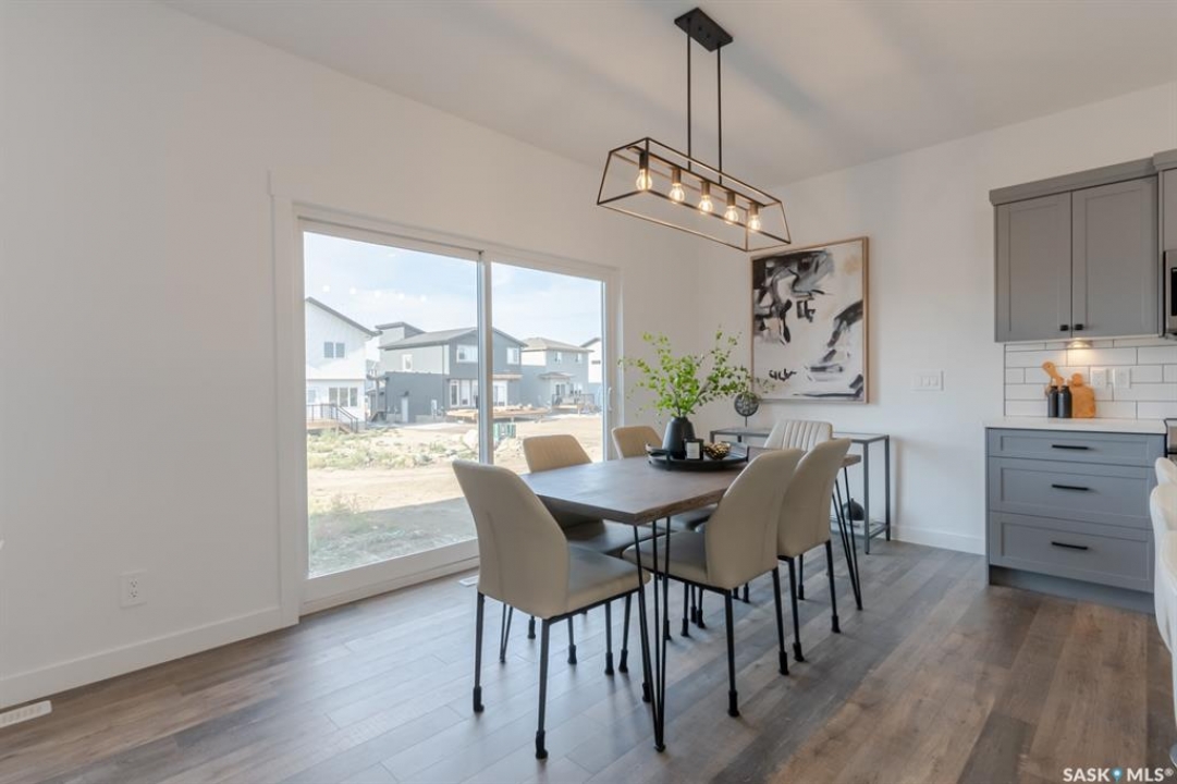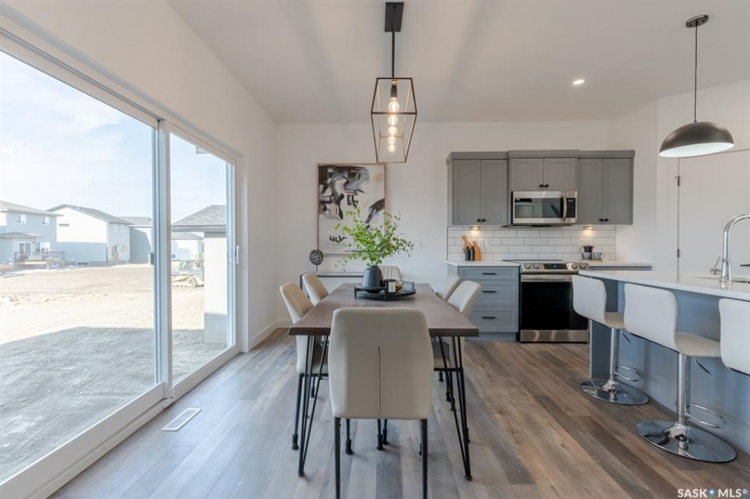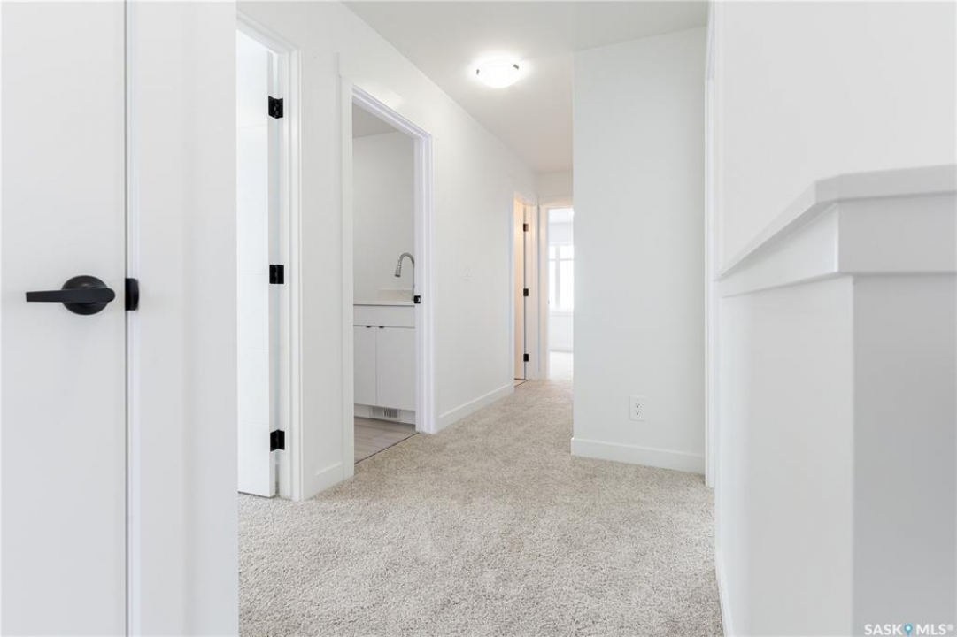 Welcome to The Escada! This beautifully designed 1,848 sq. ft. two-story home. Step inside from the fully insulated garage into a convenient mudroom that leads directly to the walk-through pantry. The modern kitchen features custom cabinetry, quartz countertops, a stylish backsplash, and a spacious island. An oversized patio door in the dining area and large living room windows fill the space with natural light, while the fireplace creates a cozy atmosphere for winter evenings. Upstairs, a bonus room at the front of the home offers additional living space. The primary bedroom, located at the back, boasts a spacious walk-in closet and a 5' custom tiled shower in the ensuite, complete with dual sinks and extra vanity storage. Two additional bedrooms, a laundry area with a cabinet and sink, and a well-appointed main bath complete the second floor. Outside, the home includes a concrete driveway and front landscaping. Built by Edgewater Homes, this property is covered under the Sask New Home Warranty for peace of mind. Please note: Photos may not be exact representations of the home and are for reference only. Errors and omissions excluded. Prices, plans, and specifications are subject to change without notice. PST & GST included with rebate to builder.