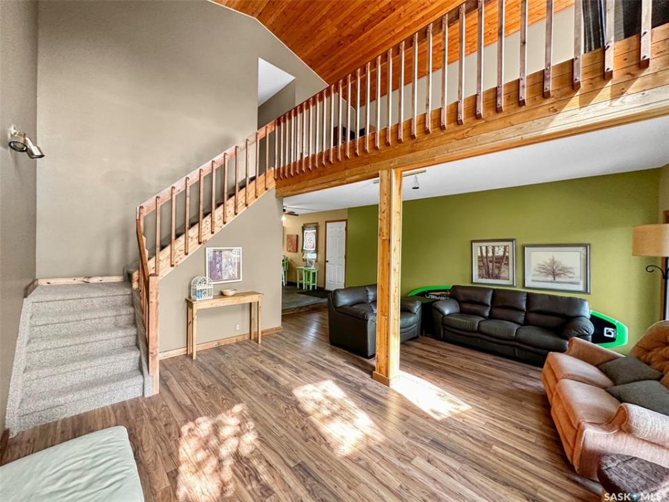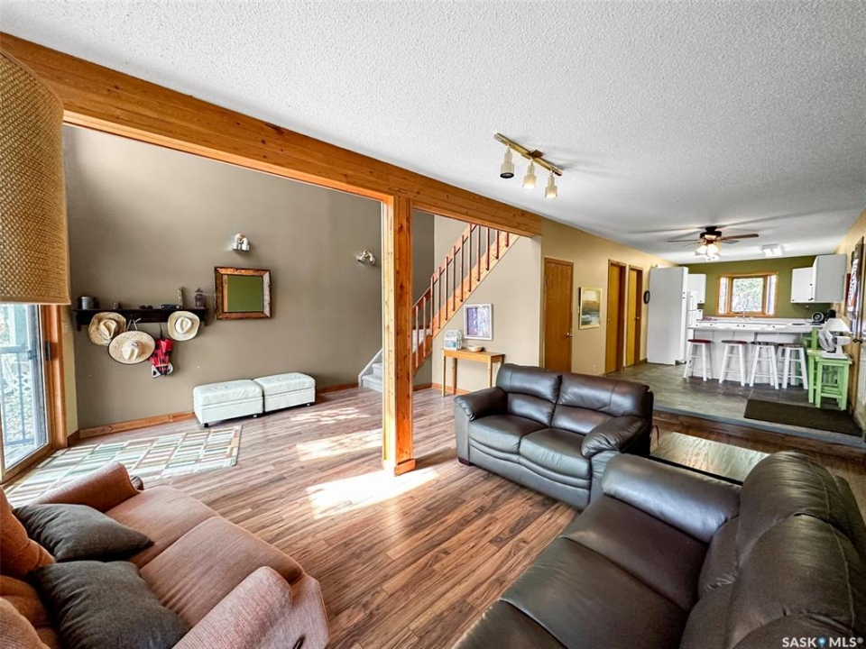 Life is Better at the Lake at 204 Wall Ridge Trail. This spacious and inviting 3-season retreat is located on the second row of Ailsby Beach on the northwest end of Lac Pelletier, offering partial lake views and backing onto the peaceful hillside for added privacy. The bright open-concept main floor features a modern white kitchen with sit-up peninsula and a generous great room surrounded by wall-to-wall windows, with patio doors leading to the east-facing front deck—perfect for morning coffee with a view. The primary bedroom is conveniently situated on the main level along with a two-piece bath and laundry combination. Upstairs, the loft provides a large family room with access to an upper deck showcasing beautiful lake views, plus two additional bedrooms—one with a walk-in closet—and a four-piece bath, making it ideal for hosting family and guests. Outdoors, enjoy the expansive front deck, mature trees, lawn space, and a private firepit area tucked against the hillside for relaxing summer evenings. Sold fully furnished, including a BBQ, this move-in ready property features a shared well with ample water supply and a 1,000-gallon septic tank. The three-year lease is $1,270 per year. If you've been waiting for your slice of lake life, this is it!