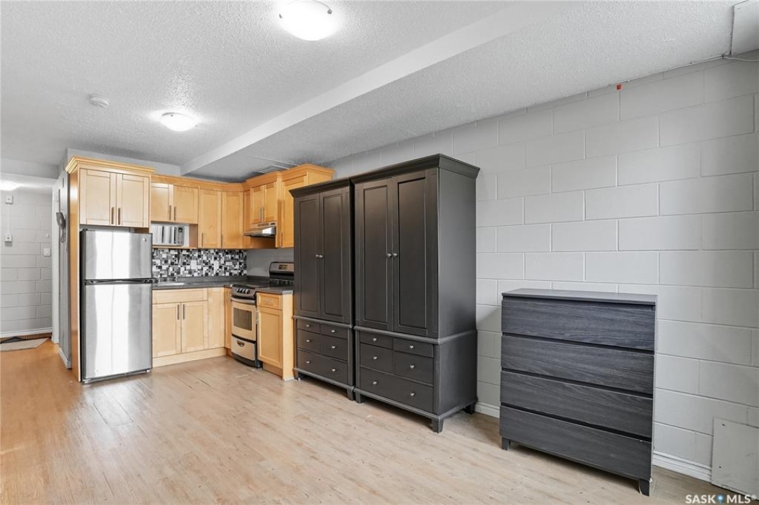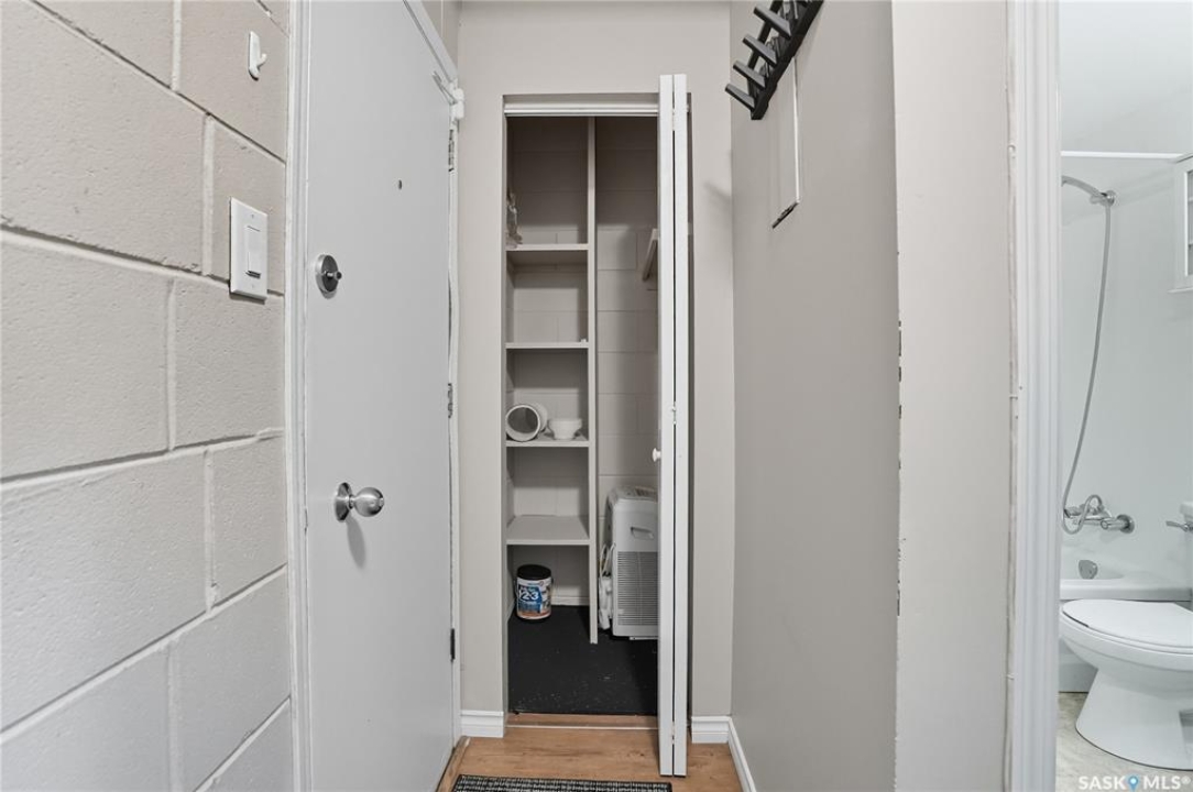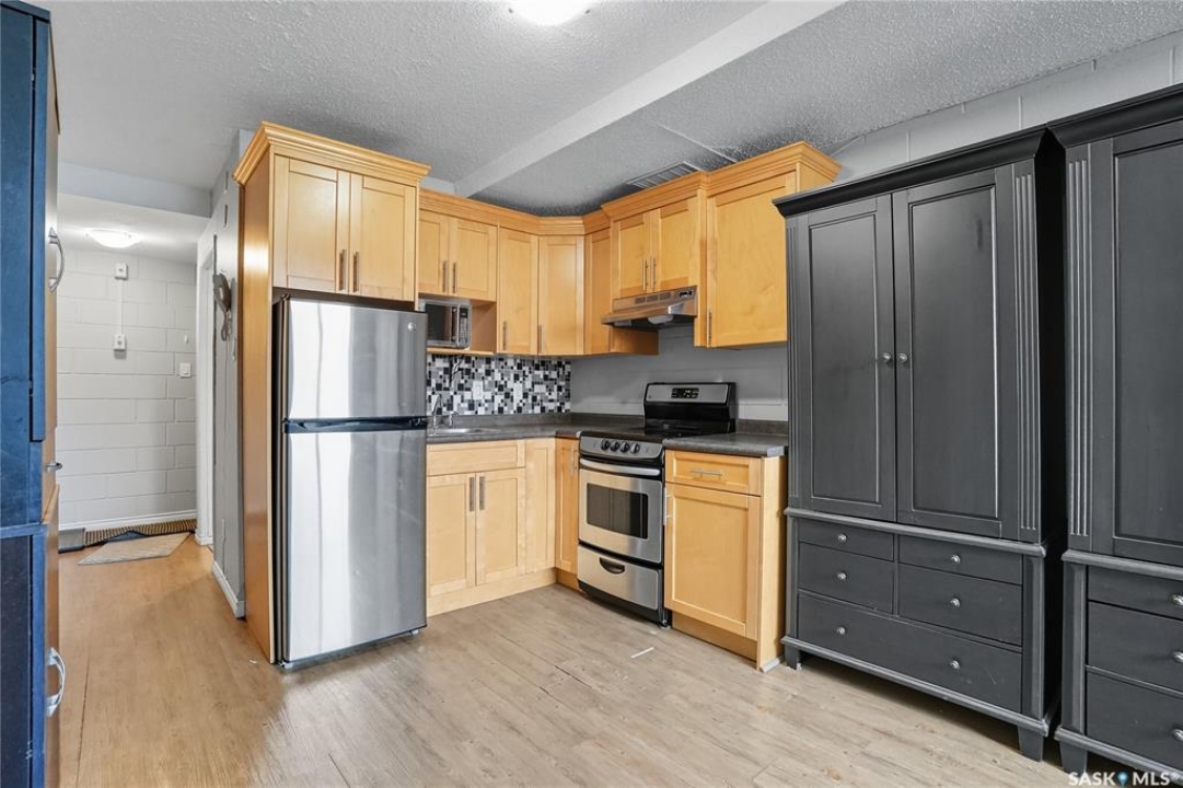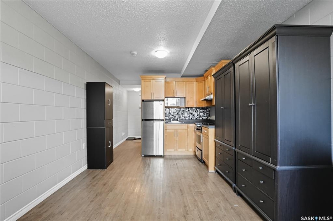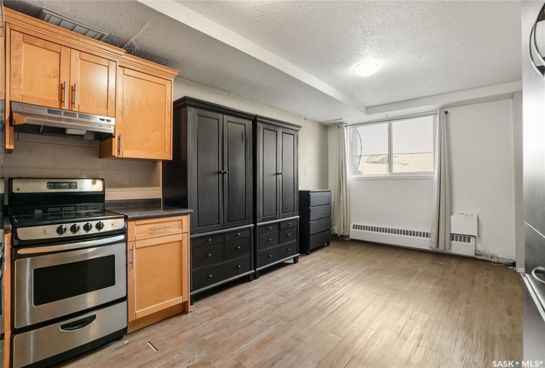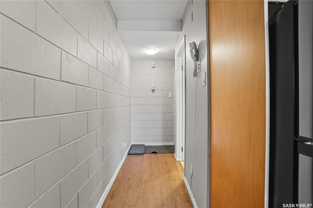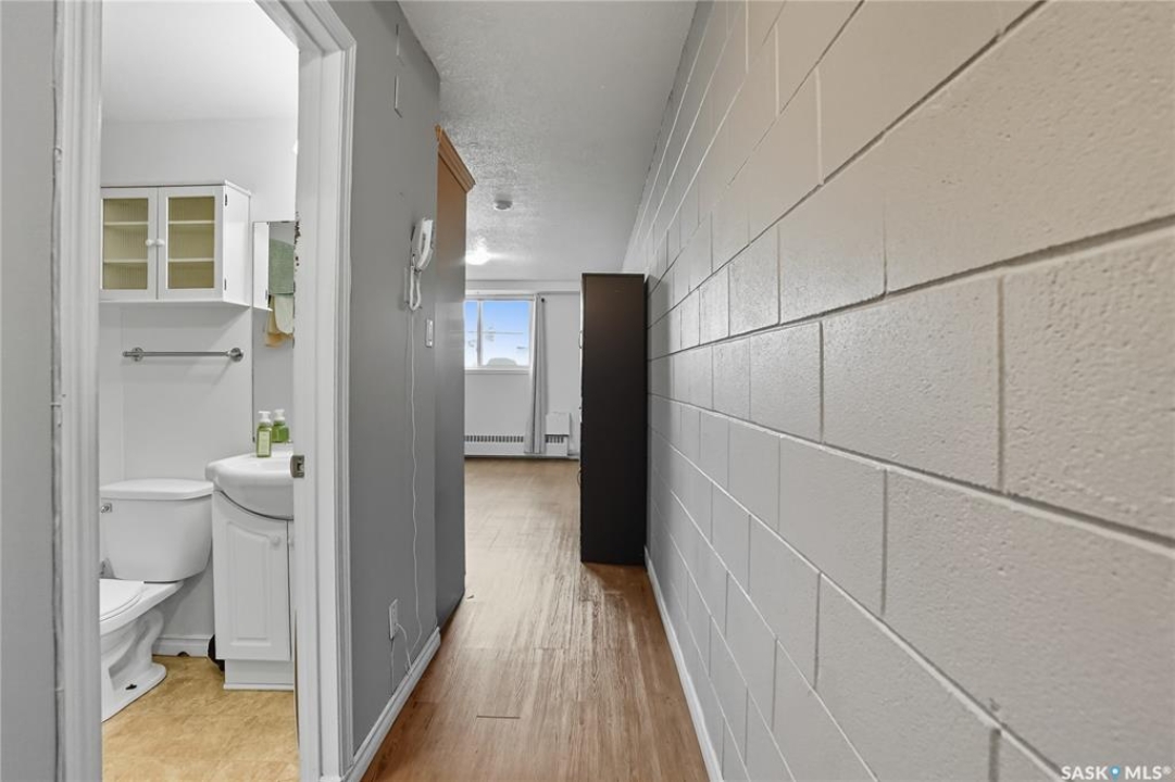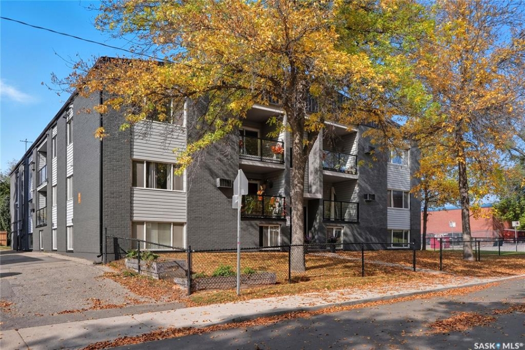 First time buyer or savvy investor - this bachelor suite condo is a rare opportunity with condo fees at $137/mo and yearly taxes at just $313! This main floor unit keeps cool in the summer and cozy in the winter; the block construction is excellent for a quiet space. Updates have included flooring throughout, modern paint and a kitchen with maple cabinetry and newer appliances. There is a storage nook at the front door and there is shared laundry access right across the hall! Located on a quiet street in Caswell Hill - this is a spot to view in person where you are a short walk to Ashworth Holmes park, walking distance to Sask Polytechnic, downtown, or shopping on 33rd street. You will notice from the start that this building is well cared for with a manicured exterior and maintenance throughout; fresh paint, flooring, updated lighting, security doors, cameras, and even a newer boiler unit! Additionally there is an electrified parking stall and storage area for bikes. Don't hesitate to book a showing on this condo. Call today!