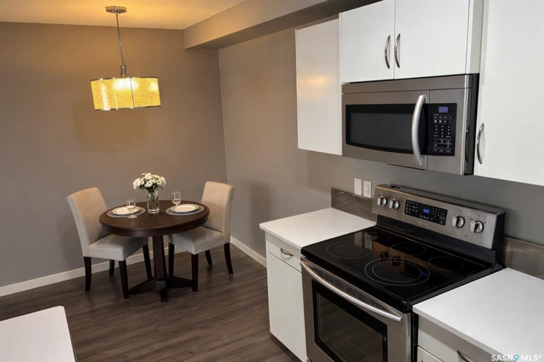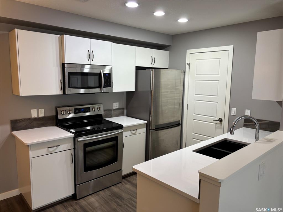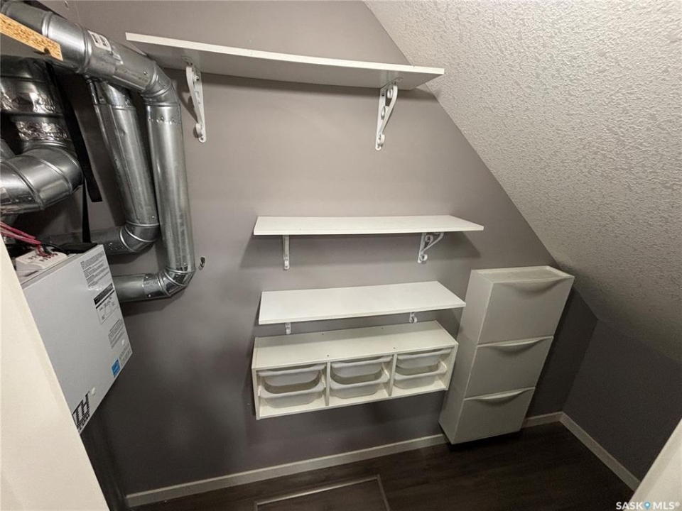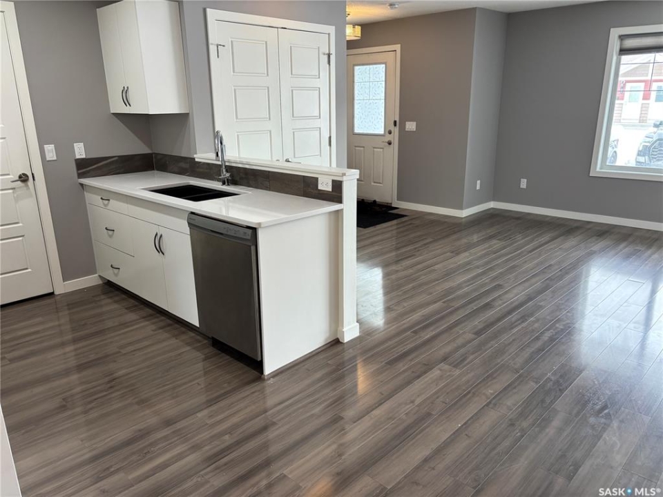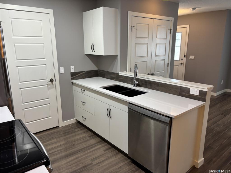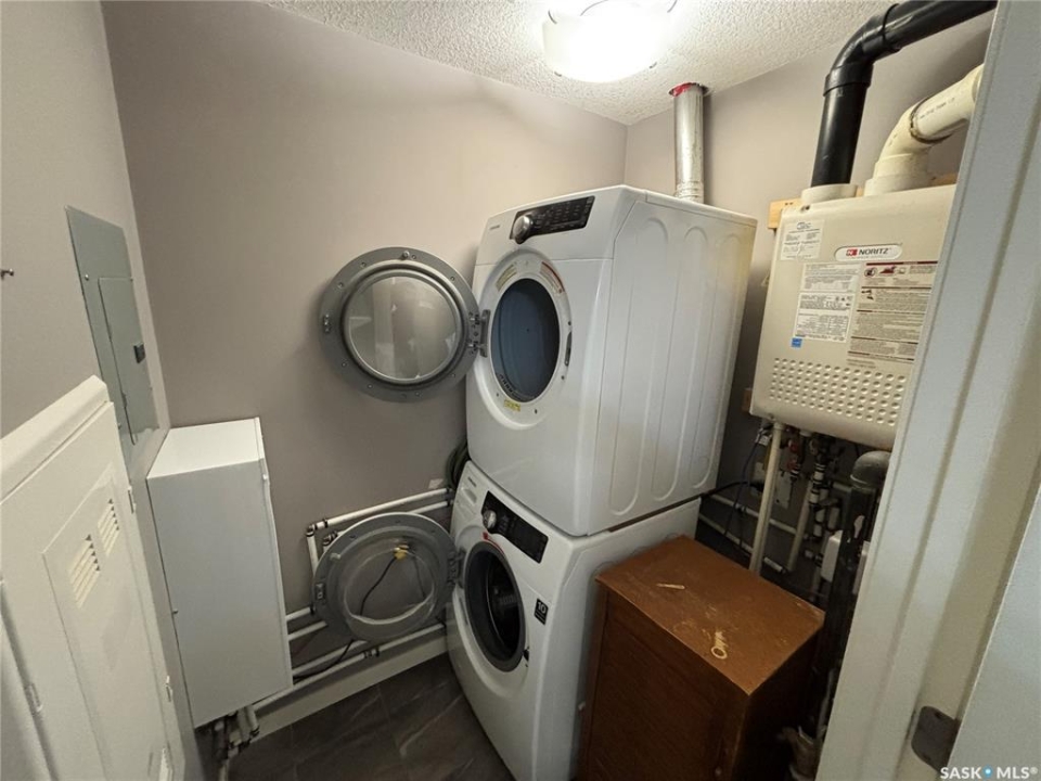 Bright, open concept condo ideally located in Harbour Landing. Steps from green space, walking paths, restaurants, shopping, and much more. Unique features include in floor heat, on demand tankless water heater, and Nest thermostat. Main floor offers a galley style kitchen with quartz countertops, upgraded stainless steel appliances, and extra storage space for your pantry items. Dining area off the kitchen is very functional as it will house a good size table. Living room features a large window allowing for loads of natural light to flow through the main level. Master bedroom is located on the second level and includes a walk-in closet. Additional bedroom, 4 piece bath and laundry area with stackable washer and dryer complete the second level. This unit includes one electrified surface parking stall with additional street parking available. Great location - close to all Harbour Landing amenities. Great opportunity for first time buyer!