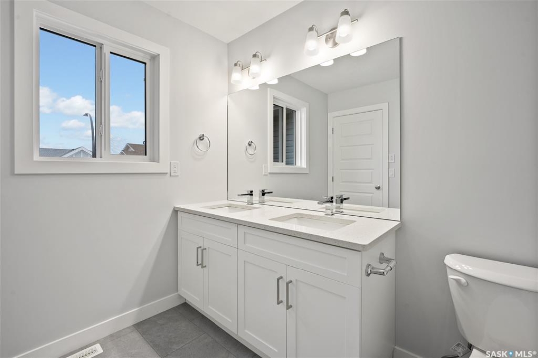 "NEW" Ehrenburg built [RICHMOND model] - 1560 SF 2 Storey. *LEGAL SUITE OPTION* This home features - Durable wide Hydro plank flooring throughout the main floor, high quality shelving in all closets. Open Concept Design giving a fresh and modern feel. Superior Custom Cabinets, Quartz counter tops, Sit up Island, Open eating area. The 2nd level features 3 bedrooms, a 4-piece main bath and laundry area. The master bedroom showcases with a 4-piece ensuite (plus dual sinks) and walk-in closet. BONUS ROOM on the second level. This home also includes a heat recovery ventilation system, triple pane windows, and high efficient furnace, Central vac roughed in. Basement perimeter walls are framed, insulated and polyed. Double attached garage with concrete driveway and front landscaping Included. PST & GST included in purchase price with rebate to builder. Saskatchewan New Home Warranty. Currently Under Construction with a currently scheduled APRIL 2026 POSSESSION -- ***Note*** Pictures are from a previously completed unit. Interior and Exterior specs vary between builds.
