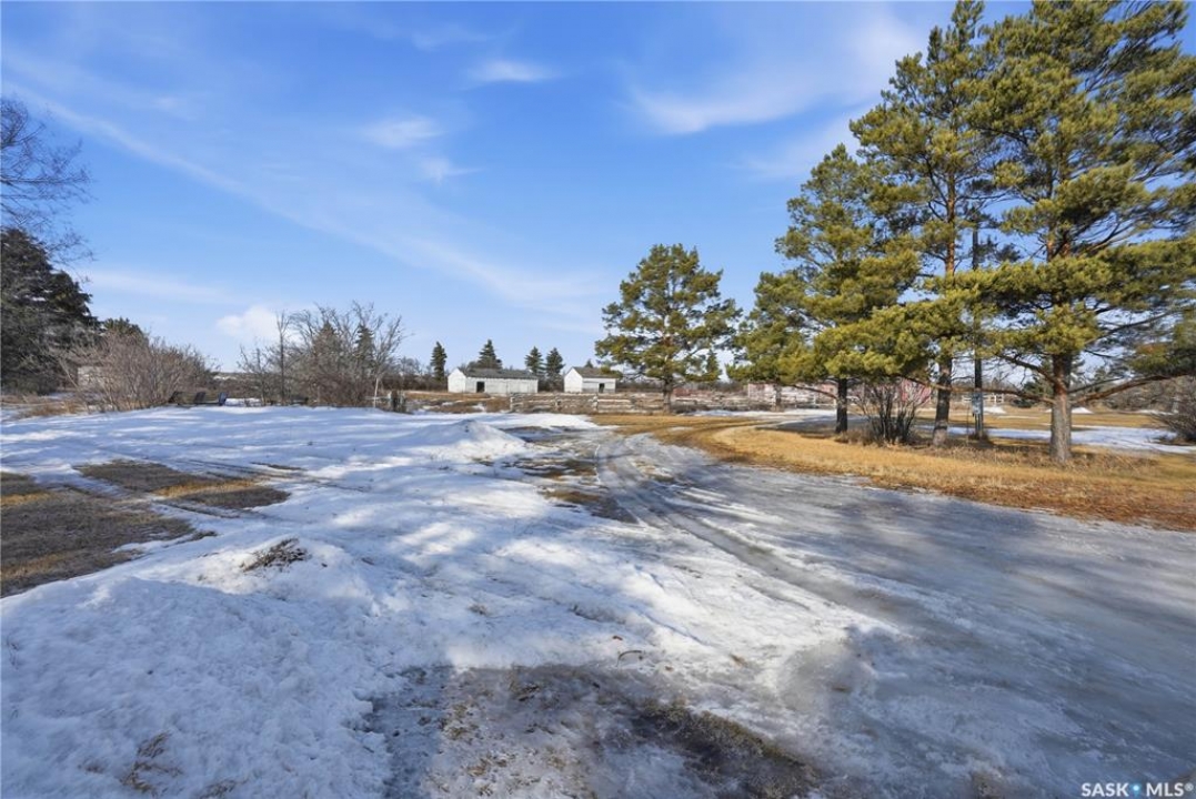 Are you looking for an acreage? This one sits on 7.48 acres right next to the town of Chamberlain where Highways #2 and #11 intersect. The home showcases a large covered deck perfect for your morning coffee. Heading inside we find a spacious kitchen with a dining space and a large living room. Down the hall we have 2 bedrooms and a 4 piece bath, as well as a spacious primary with a 3 piece ensuite. Downstairs is partially developed with a den and laundry space. Outside we find a double detached garage and a barn. Can be purchased with adjacent pasture land. Reach out today to book your showing!