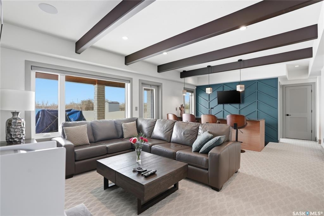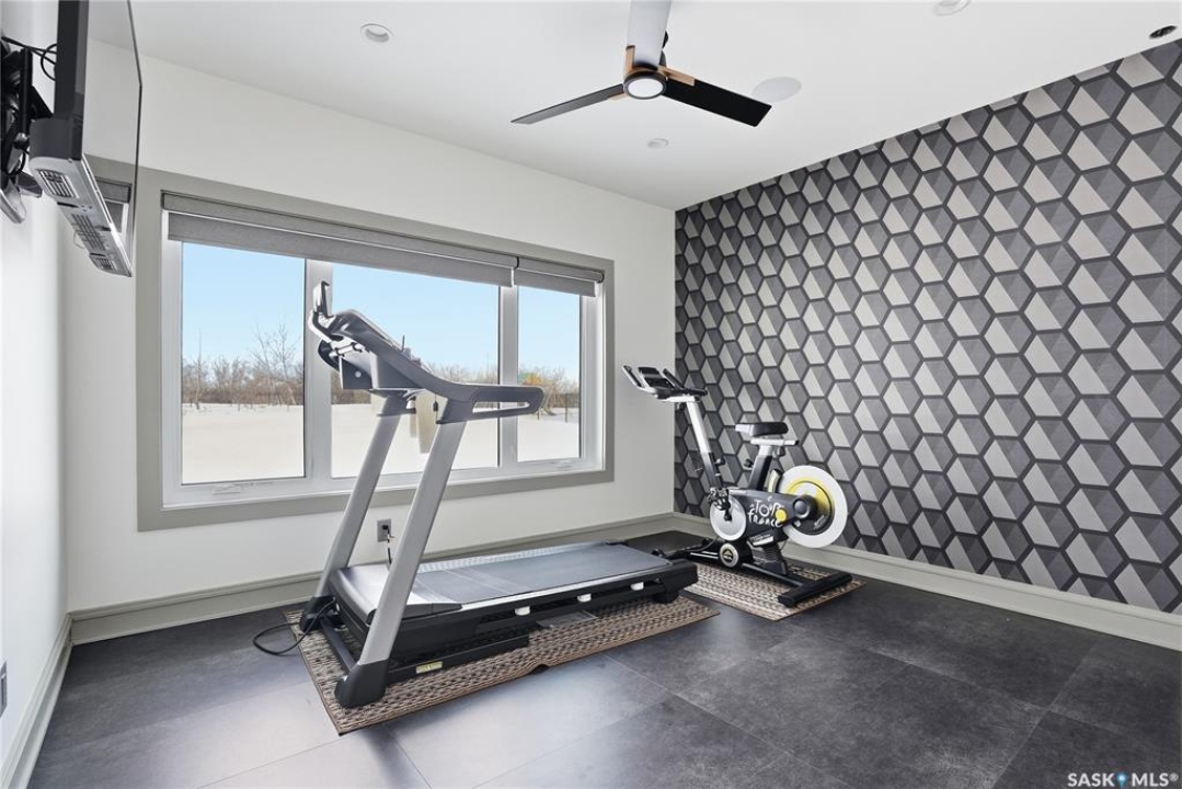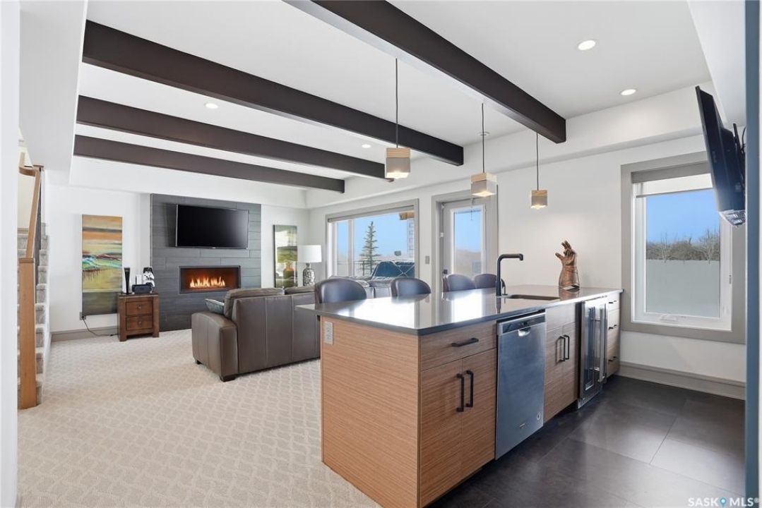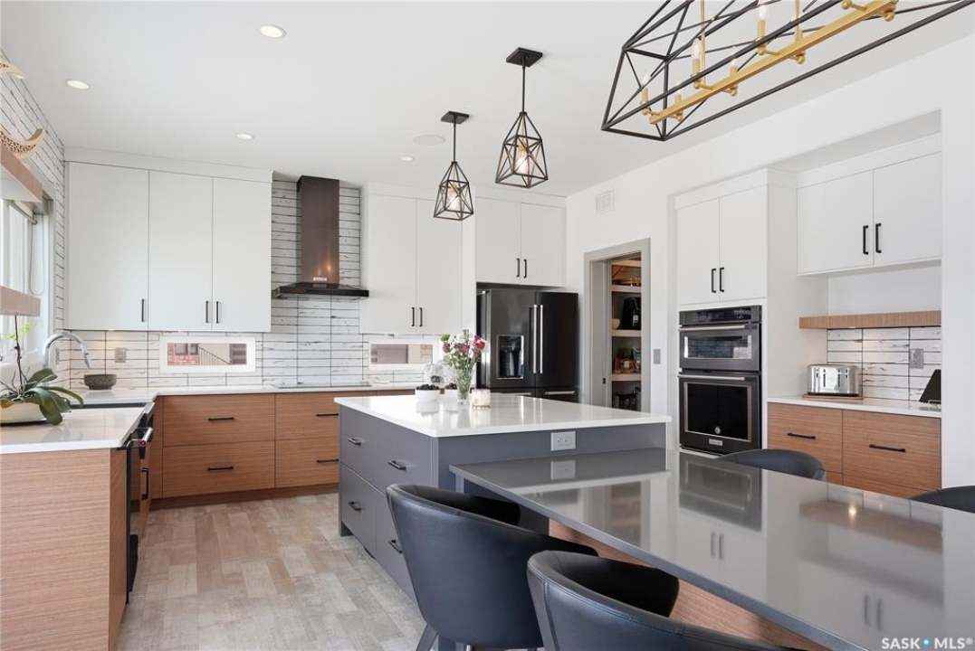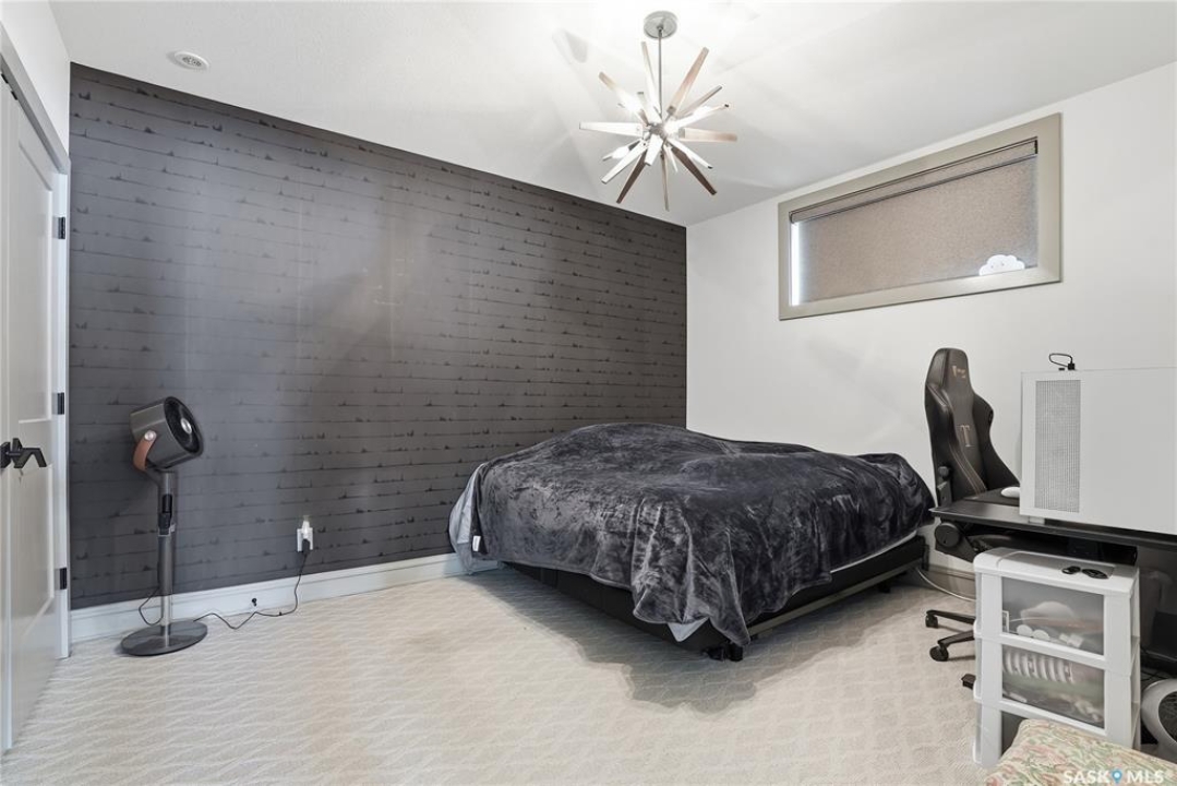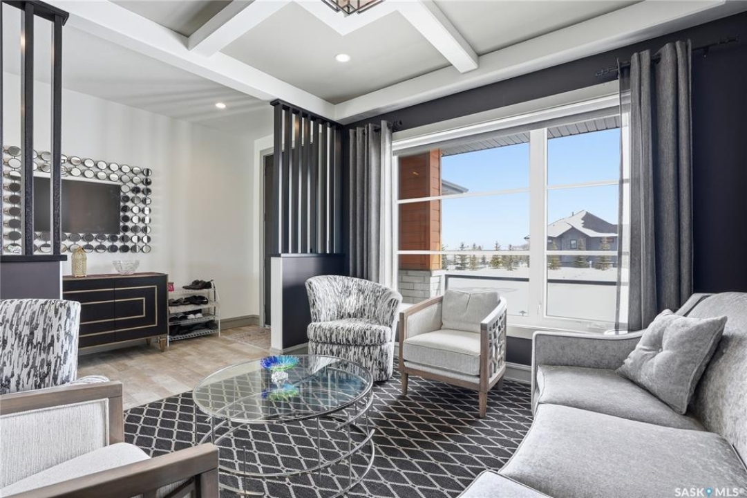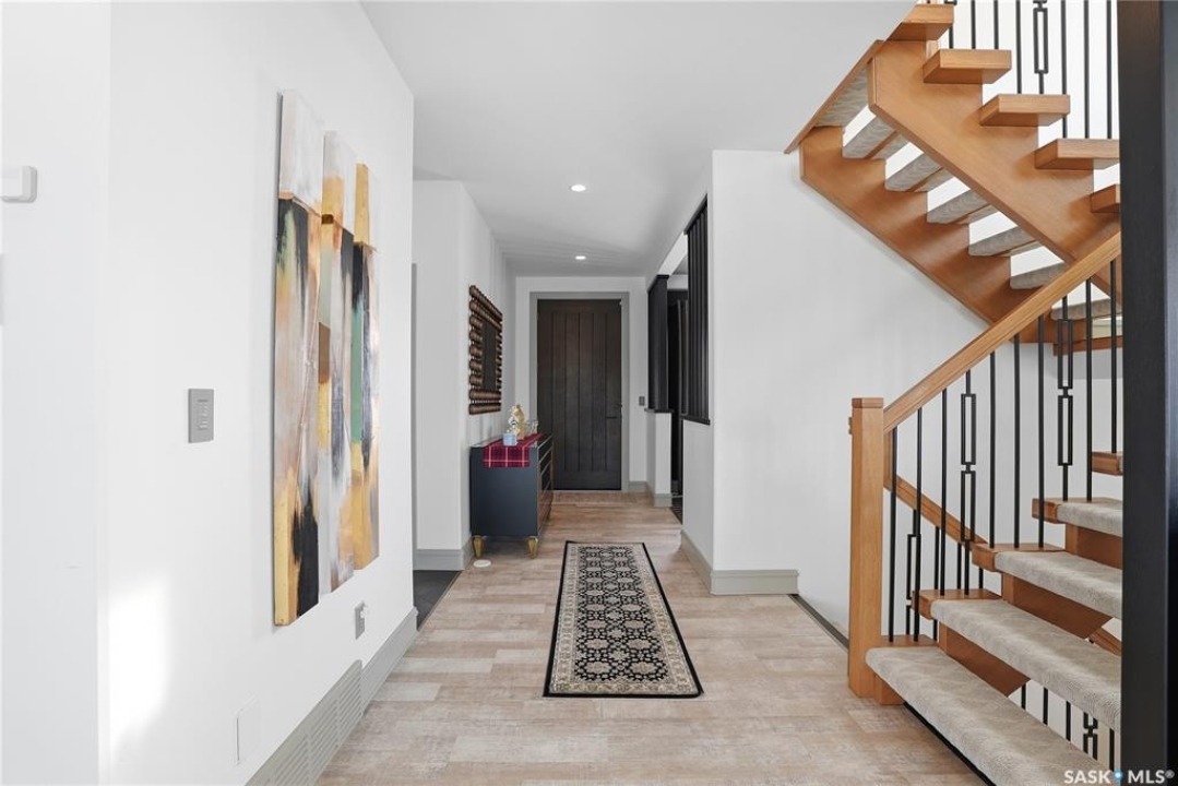 Set on an expansive, beautifully treed lot in Greenbryre Estates, this remarkable two-storey walkout offers 3,352 sq. ft. of thoughtfully finished living space, creating the perfect fusion of luxury and nature. With four bedrooms, four bathrooms, five fireplaces, and a chef-inspired kitchen featuring custom oversized Superior cabinetry, expansive quartz countertops, and a show-stopping island perfect for entertaining, this home is designed for both comfort and style. Step inside from the expansive front veranda to a bright front living room that could also serve as a separate dining room, family room, or home office. Ideally located, the mudroom acts as a functional buffer between the heated triple garage and the walkthrough pantry. The open-concept living room and kitchen are highlighted by a three-sided fireplace, expansive windows, premium vinyl plank flooring, and contemporary lighting. The upper level has a welcoming bonus room, a laundry room with built-in cabinetry, counter space, and sink, three bedrooms, a full bathroom, and a luxurious primary suite featuring a custom shower, deep soaker tub, double-sided fireplace, and a cleverly concealed mirror TV. The fully developed walkout basement offers a spacious recreation room with surround sound and a full wet bar, gym, large bedroom, and three-piece bathroom. Outdoor living is elevated with an upper deck featuring a gas fireplace overlooking the expansive fully fenced backyard and peaceful countryside views. A lower tiled patio showcases a waterfall fountain with colored lights beside a fully electrified covered gazebo, complete with a fan and ample space to accommodate a large group. Complete with state-of-the-art mechanical systems, home automation, and an oversized triple heated garage, this home represents exceptional craftsmanship in one of Saskatoon's most sought-after communities.