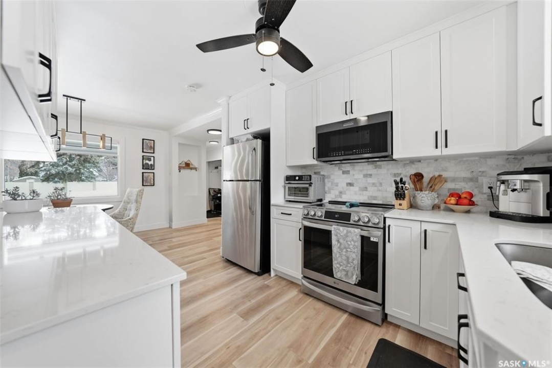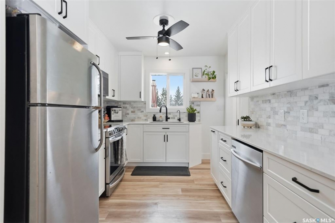 Properties like this in Montgomery almost never change hands — because once you're here, you don't leave. Set on an extraordinary � acre lot (86' wide x 250' deep), this 1,260 sq ft bungalow offers space, privacy, and flexibility that is nearly impossible to replicate within city limits. All party in the front and all business in the back. The home has been completely redone inside and outside, on the main floor and in the basement. It has a double attached heated garage and a heated detached shop in its own compound out back. An established property just a short drive from the river with great access to anywhere in the city via circle drive. Originally built in 1960 by Keith with solid fir framing and an efficient layout with loads of natural light. The home has been completely renovated upstairs and down in 2025. A new kitchen with quartz countertops, updated windows, flooring, paint, doors, lighting, and even new ABS plumbing under the slab. Clean. Bright. Turn-key. The kind of renovation you can feel. Outside improvements were done in 2018 (including shingles, windows and doors, siding soffits, fascia and more) ensure peace of mind for years to come. Certainly worth mentioning the beautiful landscape even features a luxury hot tub. The detached heated garage makes daily life easy. The 36' x 26' shop with 10' ceilings opens the door to hobbies, storage, projects, or serious workspace. New unit heater in 2022. It's also fully gated and even comes with a hoist. Few properties offer this kind of usable infrastructure without sacrificing yard space. Here, you still have room to breathe. All the privacy of an acreage. All the convenience of city living. Quick access to downtown. A skip, hop and a jump from the south Saskatchewan river off valley road. Montgomery remains one of Saskatoon's most sought-after neighbourhoods for those who want space without leaving the city - and � acre parcels like this are exceptionally rare.