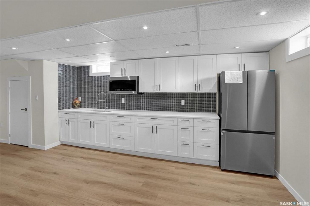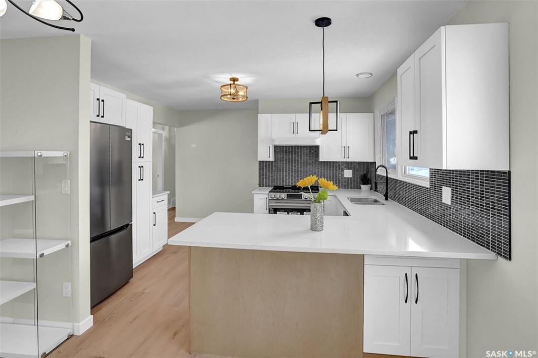 Fully renovated bungalow located in the desirable Whitmore Park neighborhood, close to schools, the University, shopping, and all south-end amenities. This 3-bedroom, 3-bathroom home features extensive upgrades, including renovated bathrooms, updated kitchen flooring, lighting fixtures and fresh paint throughout. The bright, open-concept main floor showcases a spacious living and dining area with attractive vinyl plank flooring. The adjoining kitchen has been tastefully updated with upgraded cabinetry, granite countertops, tiled backsplash, and full stainless steel appliance package and island seating. Down the hall are three well-sized bedrooms and a beautifully updated full bathroom. The fully finished basement offers additional living space, including a large family room, two additional bedrooms, a spacious den, laundry area, and a second renovated kitchen area (wet bar) with custom cabinetry and added storage. The exterior features a detached garage with an oversized workshop area. Recent upgrades include a new sewer line, new sump pump, new backwater valve and newer shingles, and updated furnace and air conditioner. A move-in-ready home with extensive improvements—an excellent opportunity not to be missed.